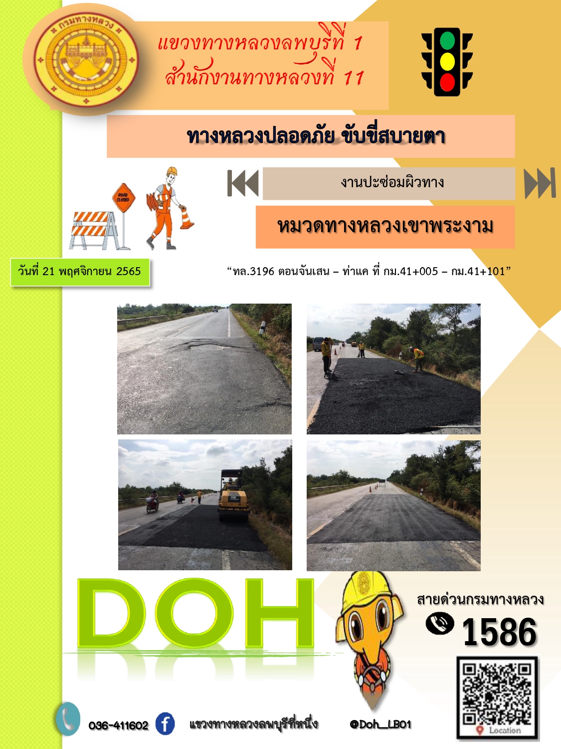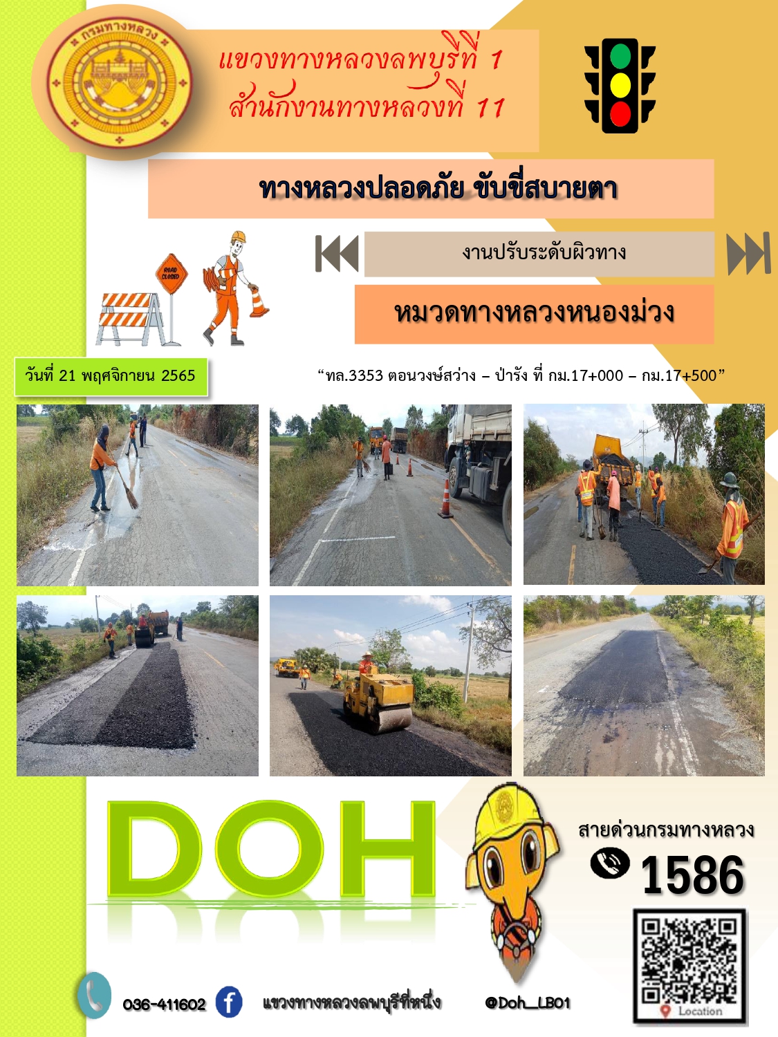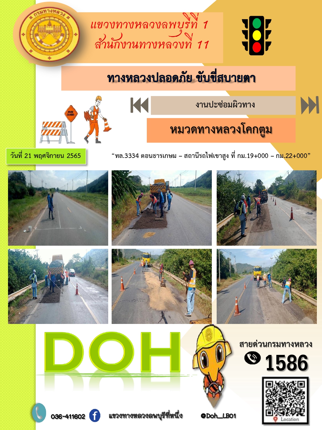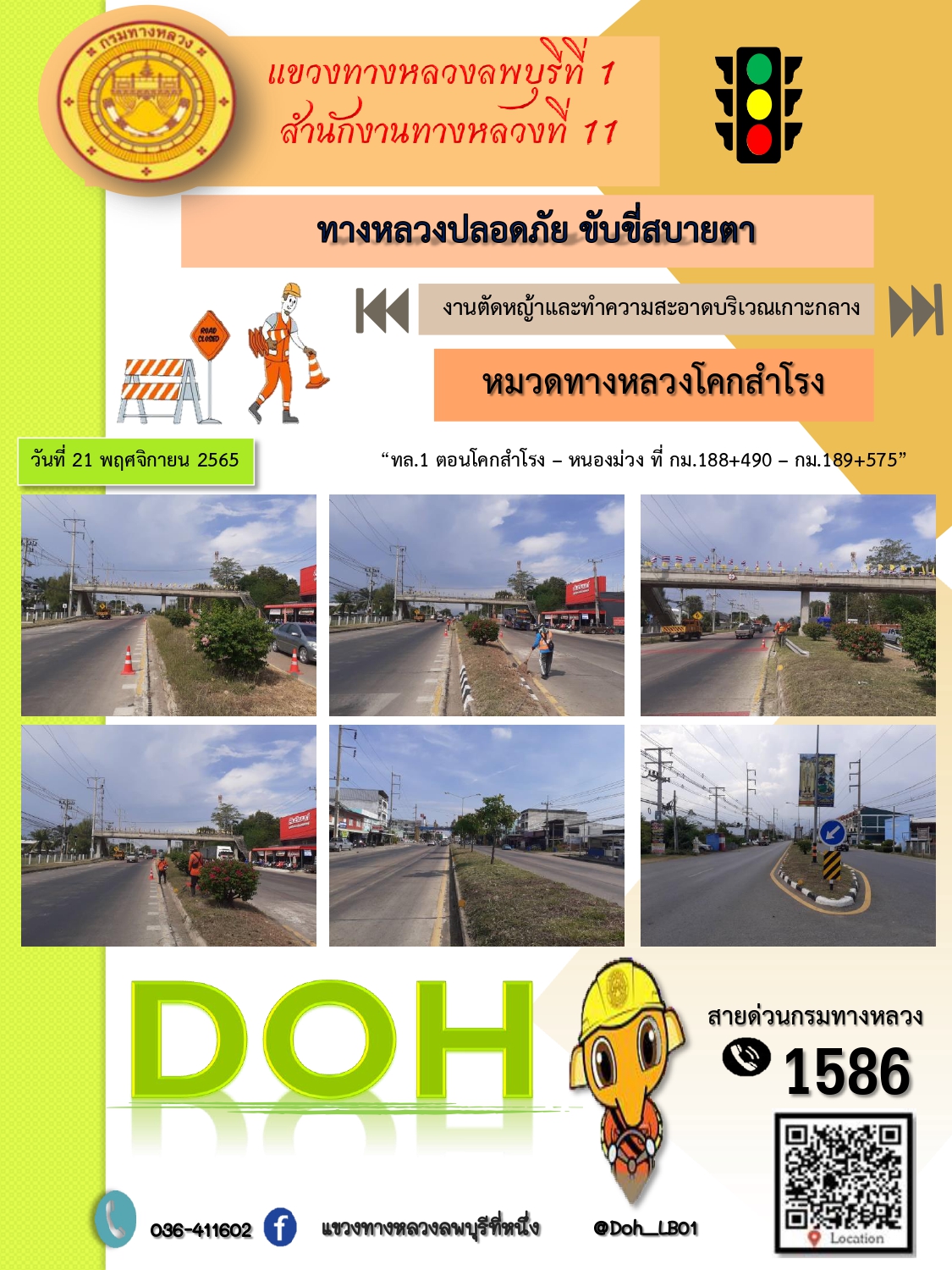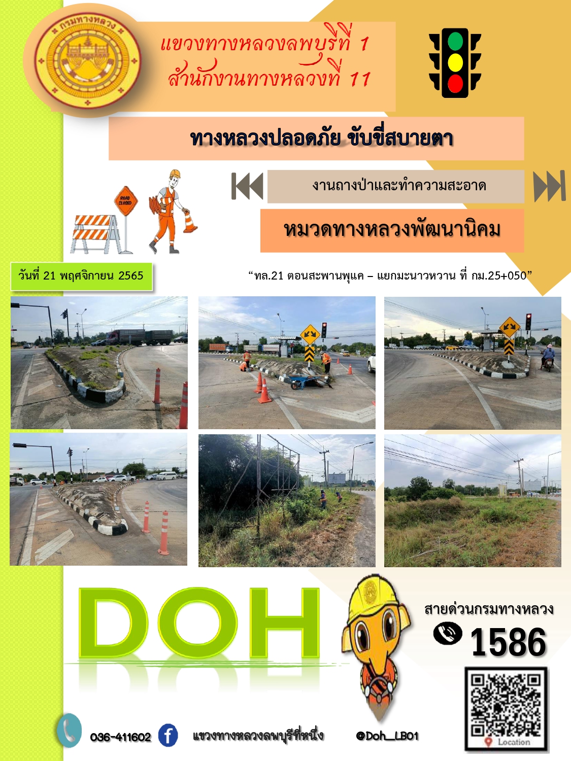 ทางหลวงปลอดภัยขับขี่สบายตา แขวงทางหลวงลพบุรีที่ 1 ประจำวันที่ 21 พฤศจิกายน 2565