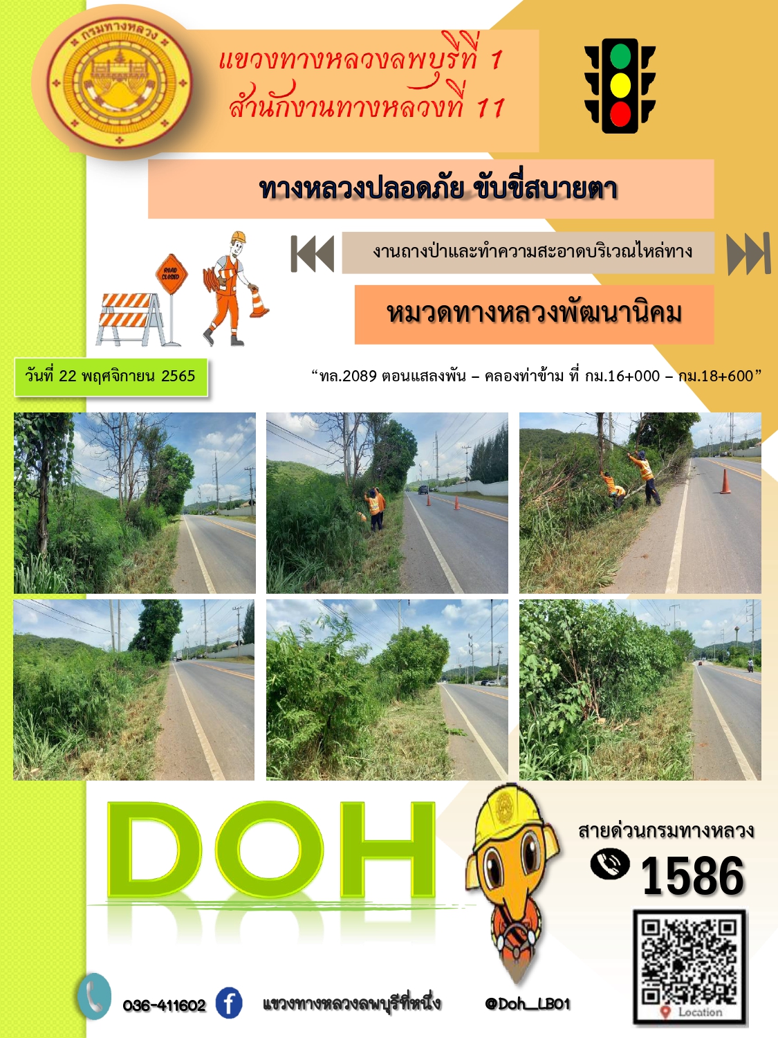 ทางหลวงปลอดภัยขับขี่สบายตา แขวงทางหลวงลพบุรีที่ 1 ประจำวันที่ 22 พฤศจิกายน 2565