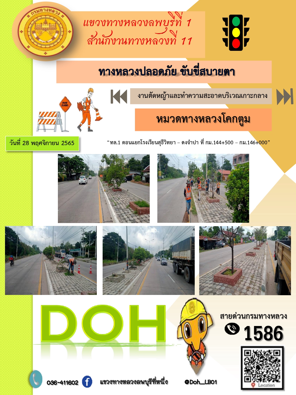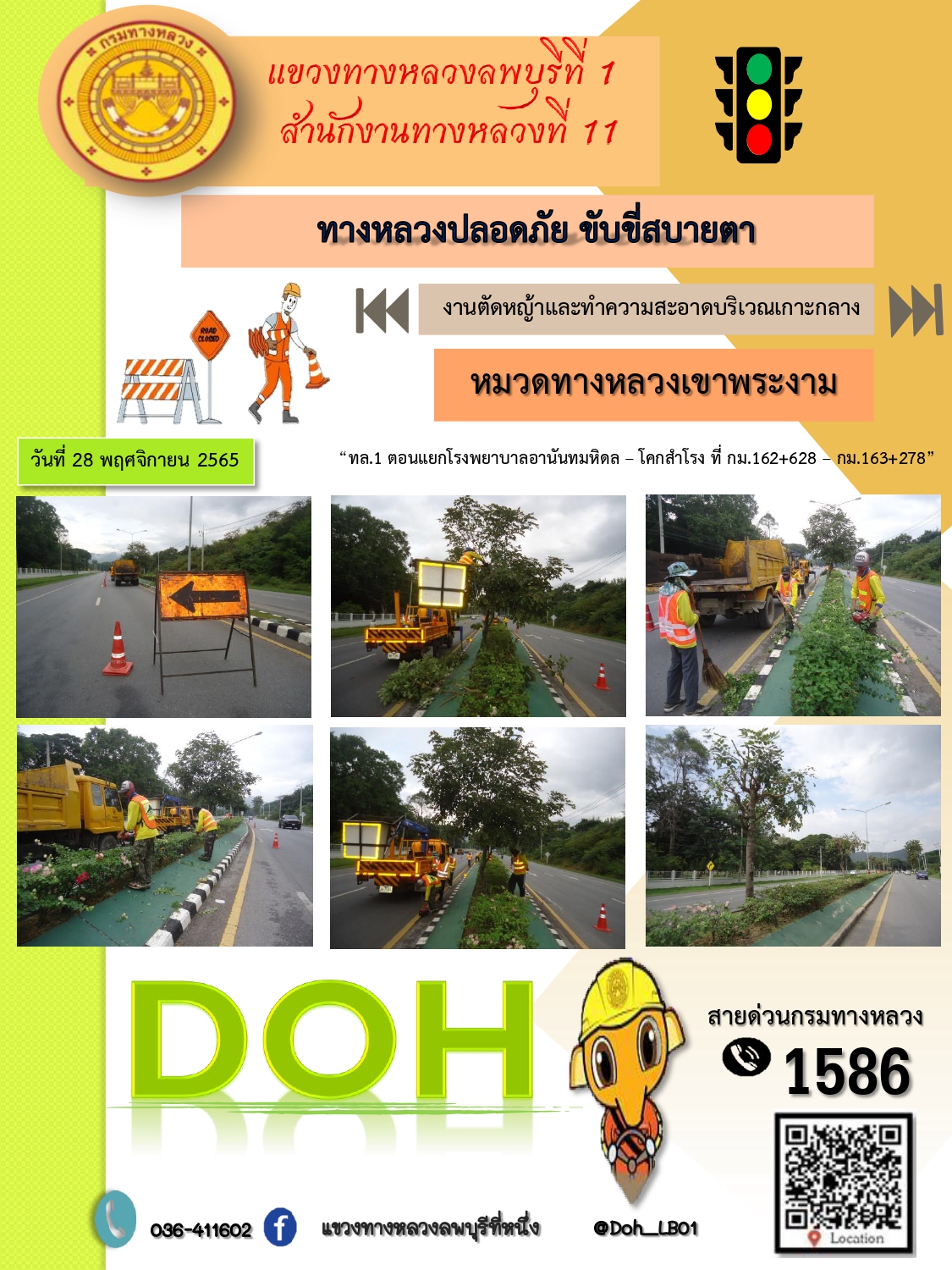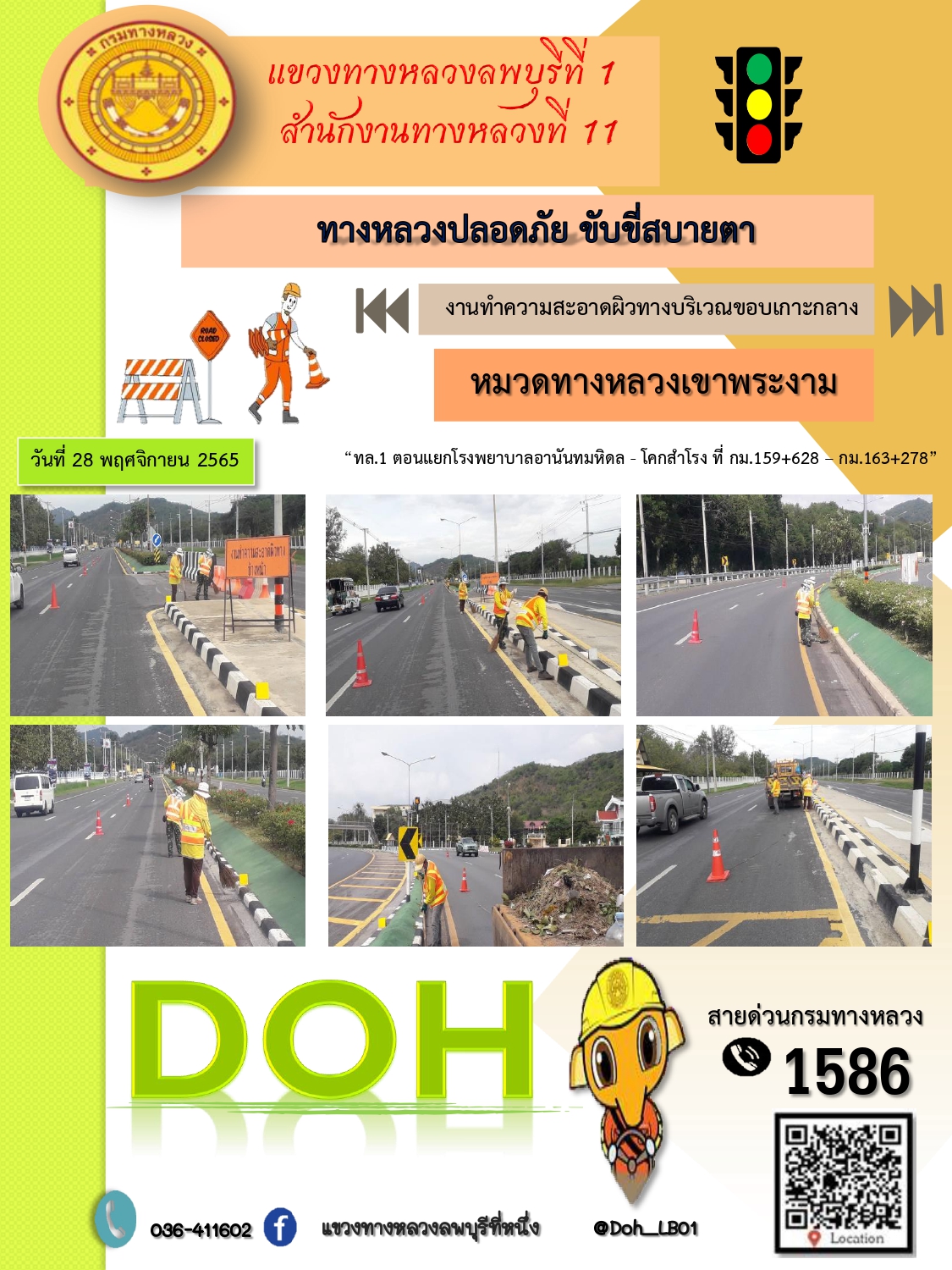 ทางหลวงปลอดภัยขับขี่สบายตา แขวงทางหลวงลพบุรีที่ 1 ประจำวันที่ 28 พฤศจิกายน 2565