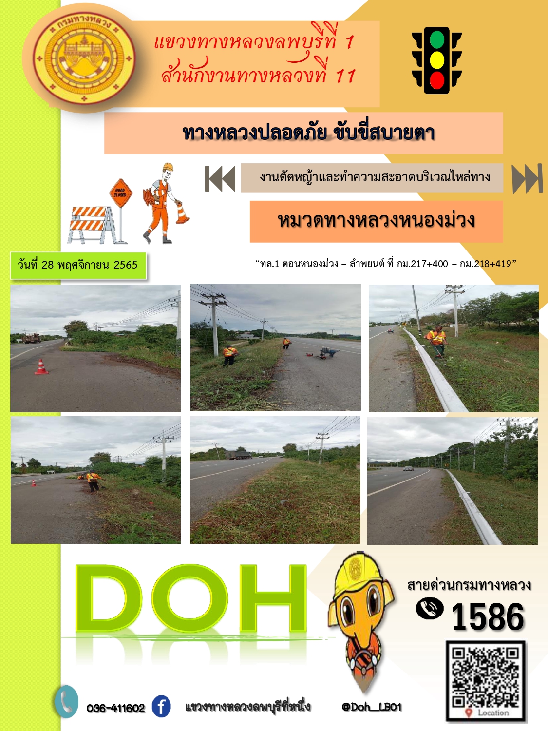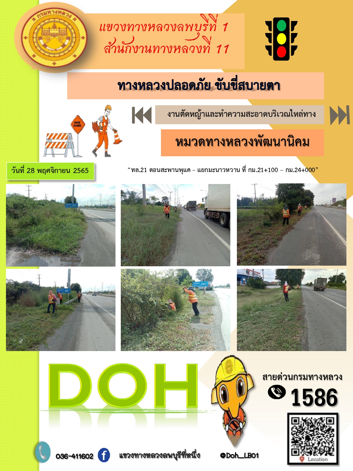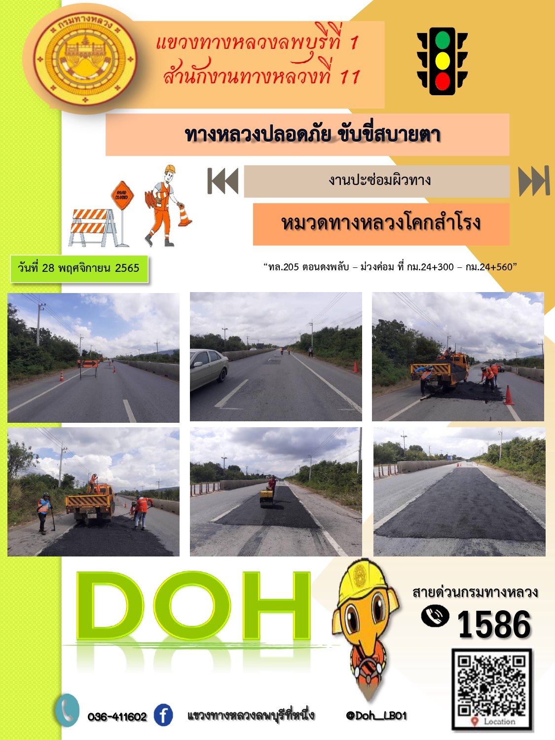 ทางหลวงปลอดภัยขับขี่สบายตา แขวงทางหลวงลพบุรีที่ 1 ประจำวันที่ 28 พฤศจิกายน 2565