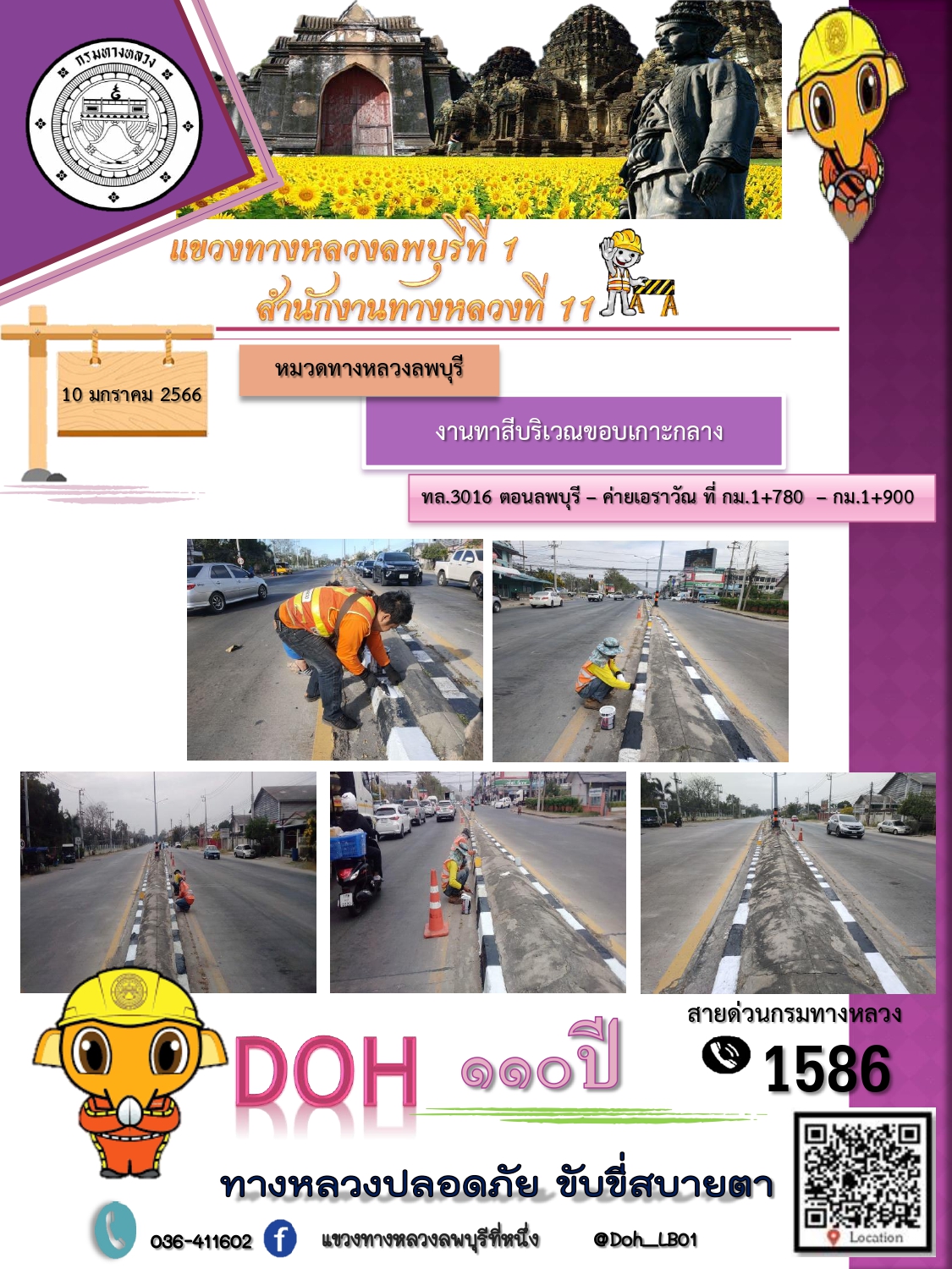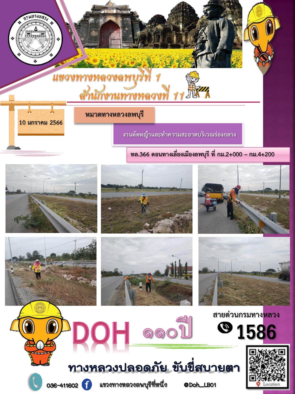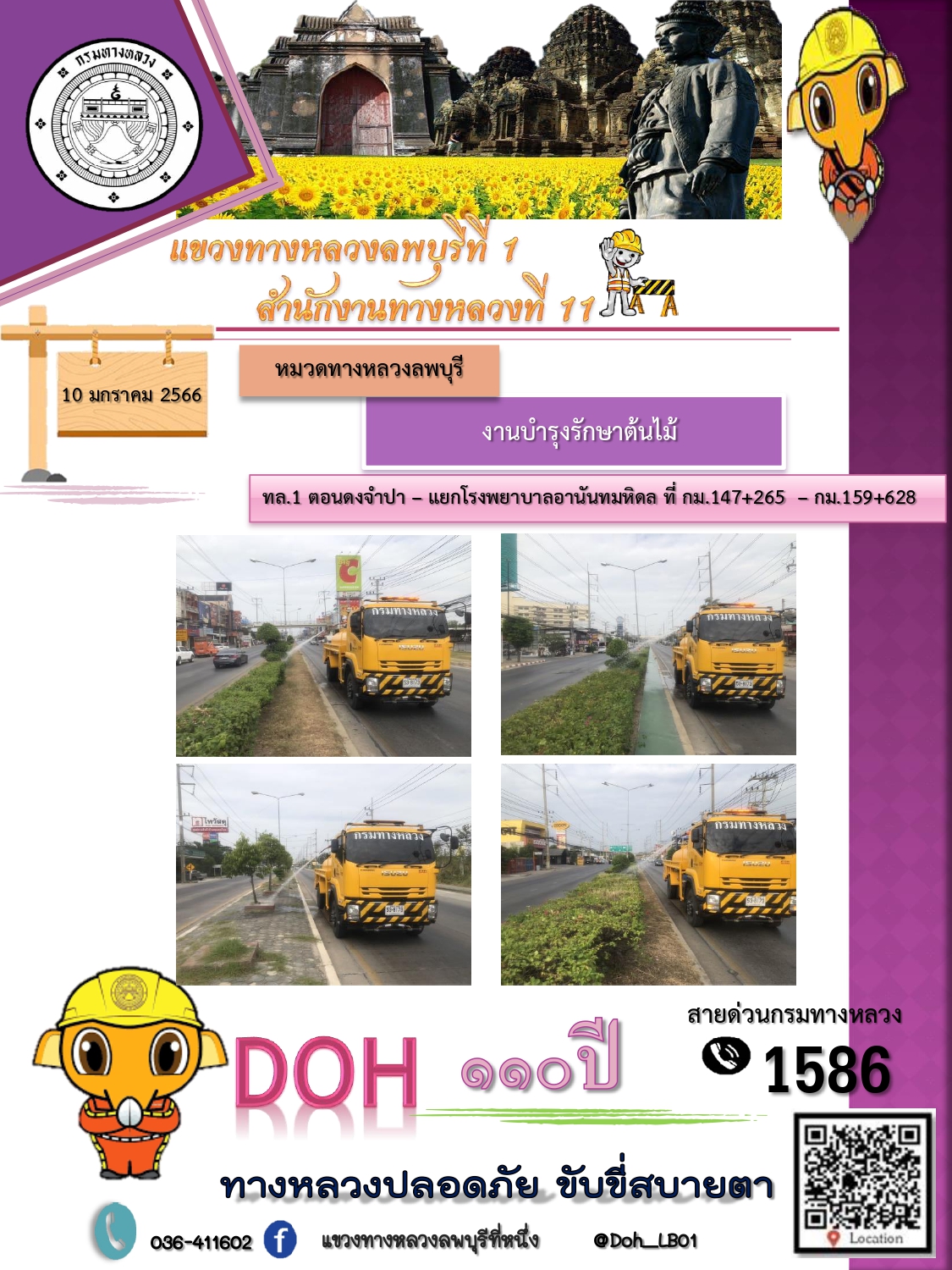 ทางหลวงปลอดภัยขับขี่สบายตา แขวงทางหลวงลพบุรีที่ 1 ประจำวันที่ 10 มกราคม 2566