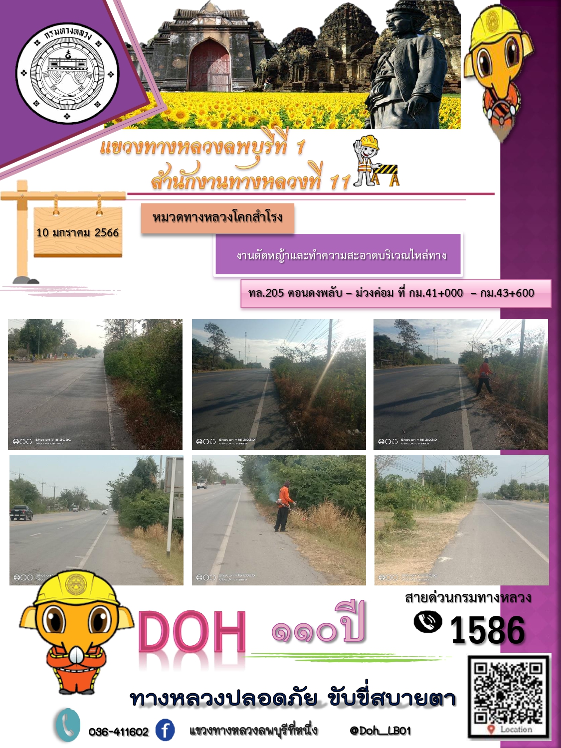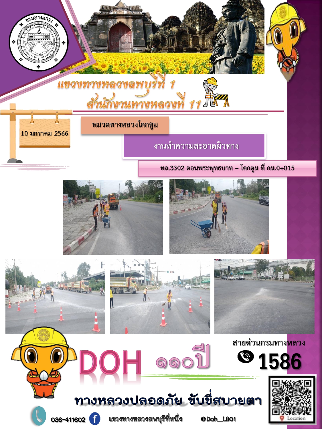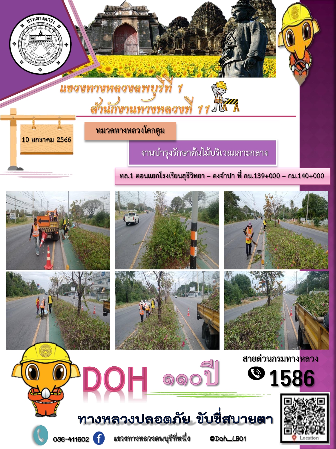 ทางหลวงปลอดภัยขับขี่สบายตา แขวงทางหลวงลพบุรีที่ 1 ประจำวันที่ 10 มกราคม 2566