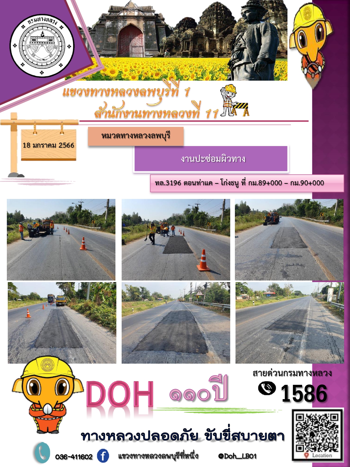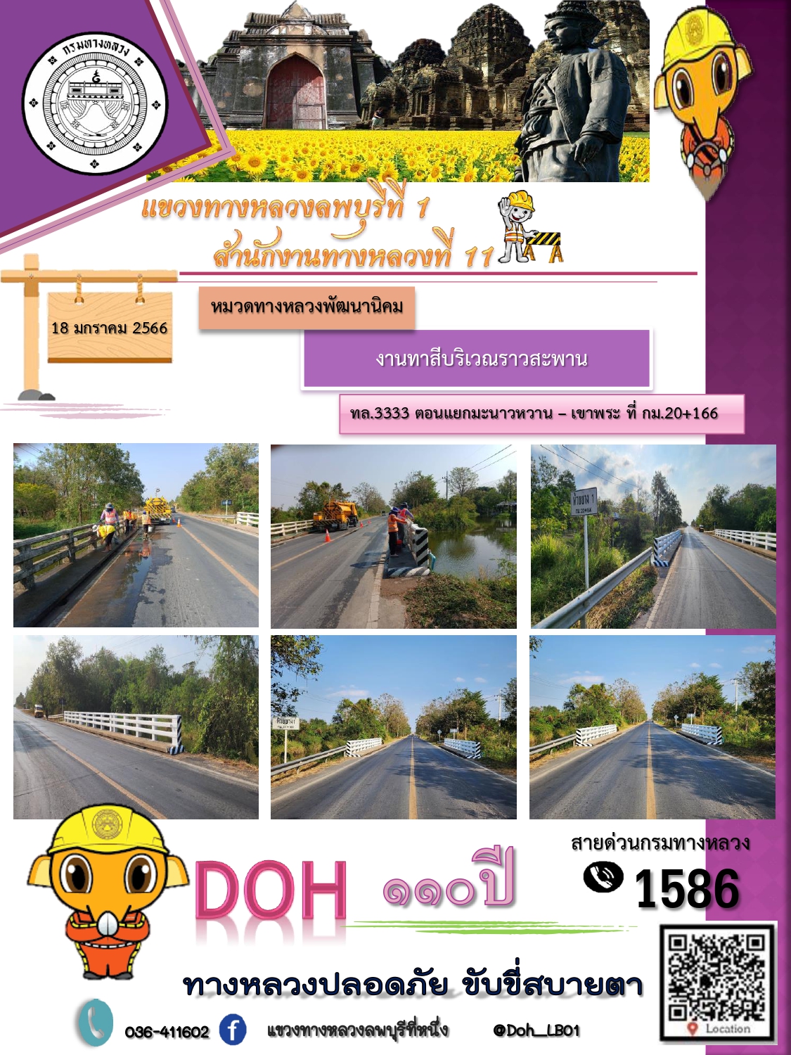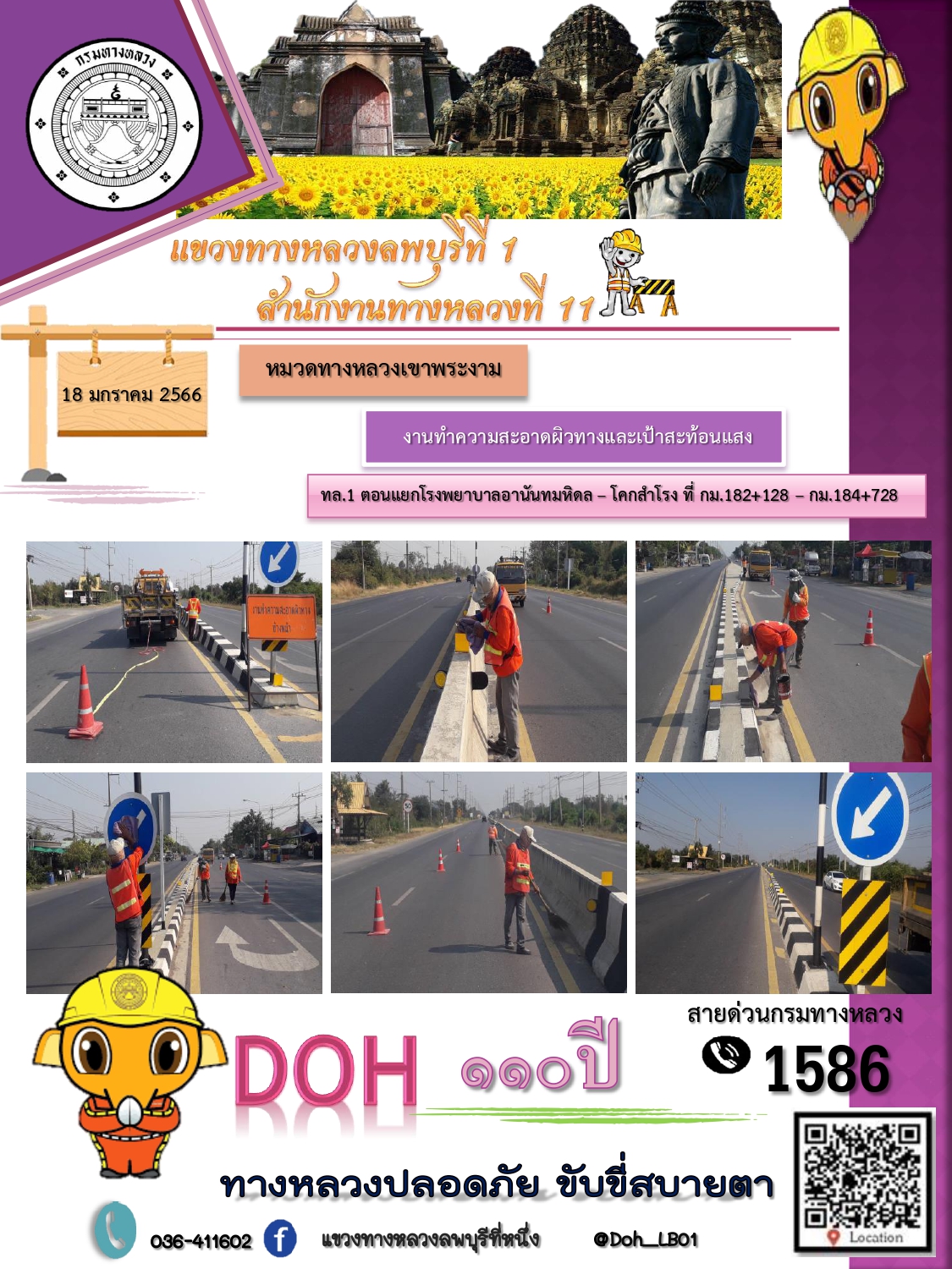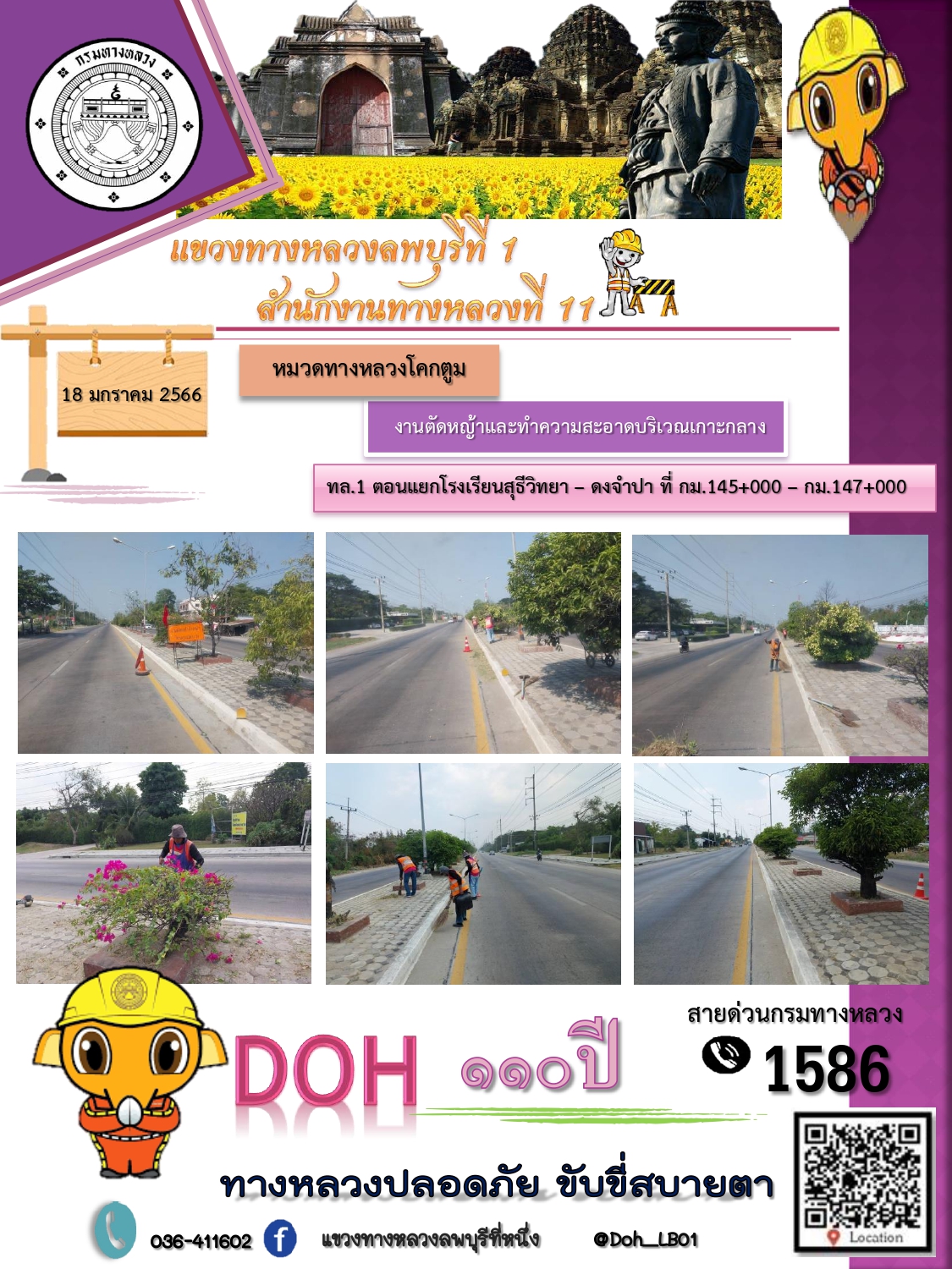 ทางหลวงปลอดภัยขับขี่สบายตา แขวงทางหลวงลพบุรีที่ 1 ประจำวันที่ 18 มกราคม 2566