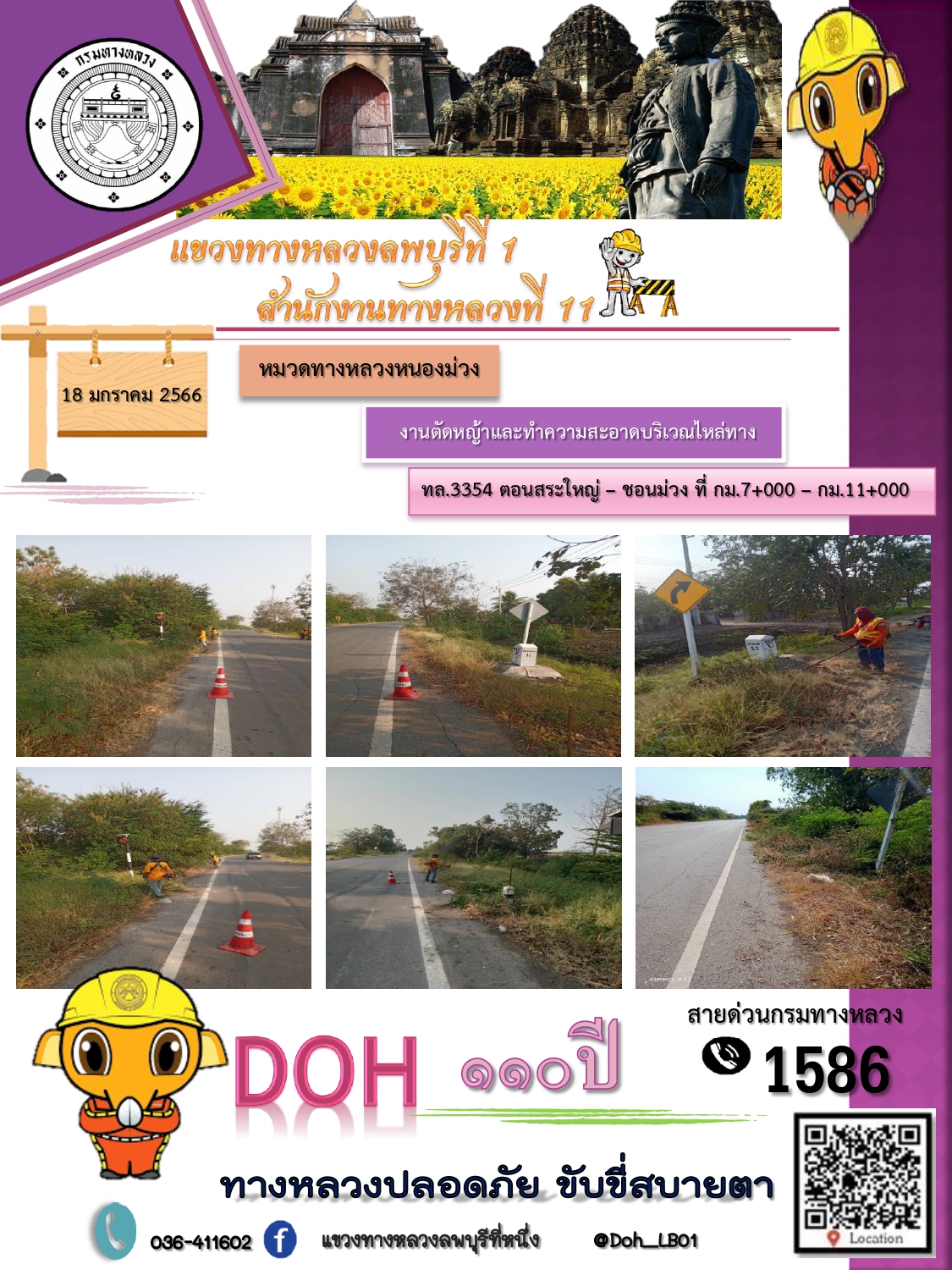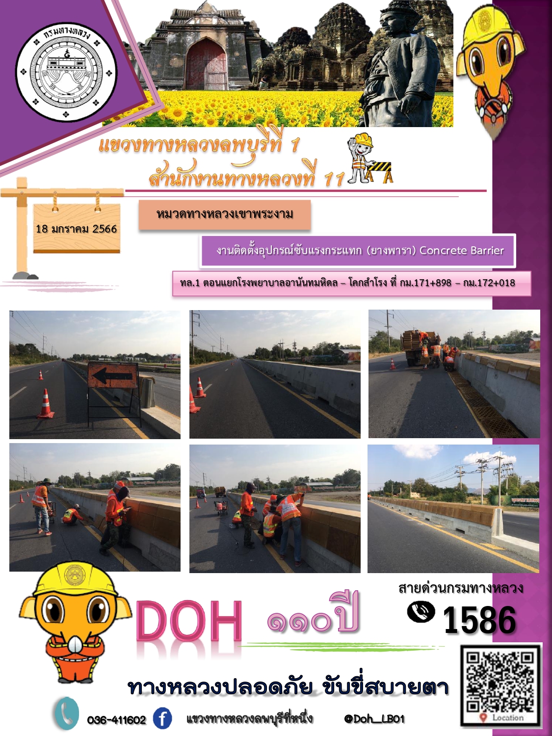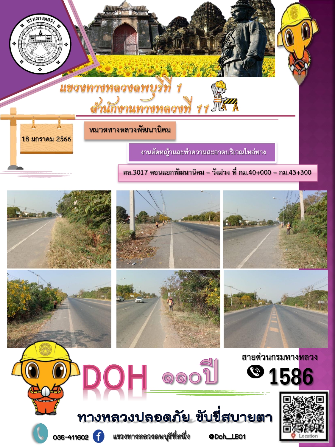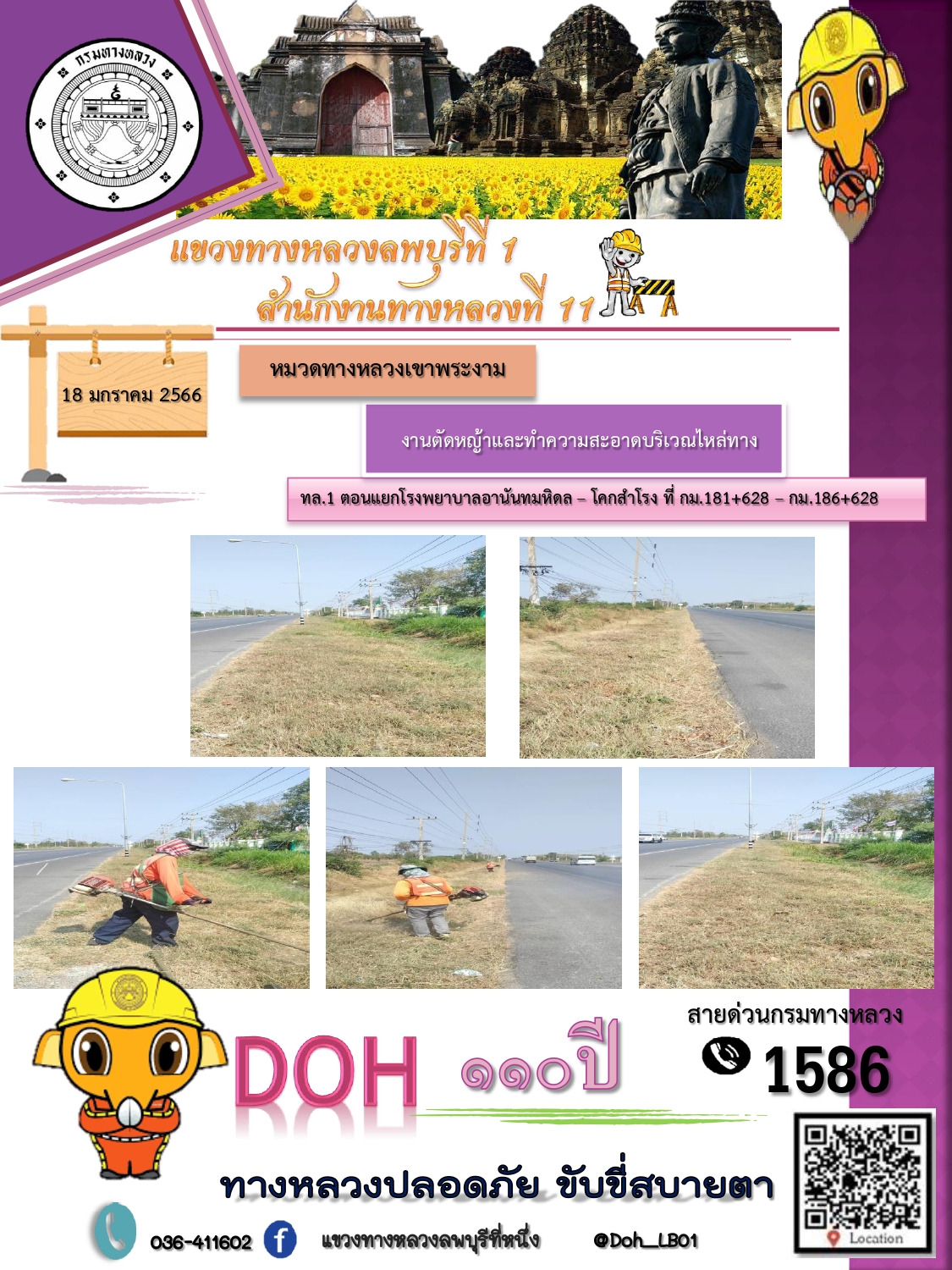 ทางหลวงปลอดภัยขับขี่สบายตา แขวงทางหลวงลพบุรีที่ 1 ประจำวันที่ 18 มกราคม 2566