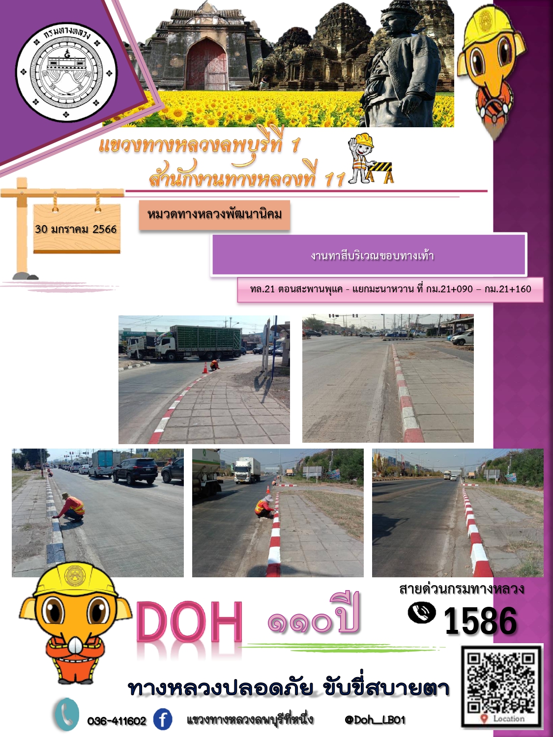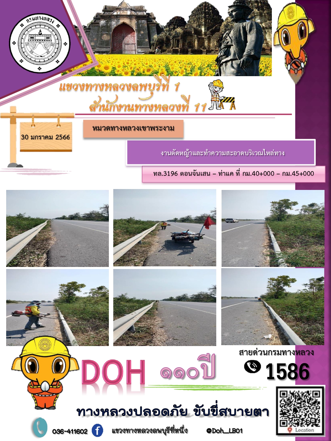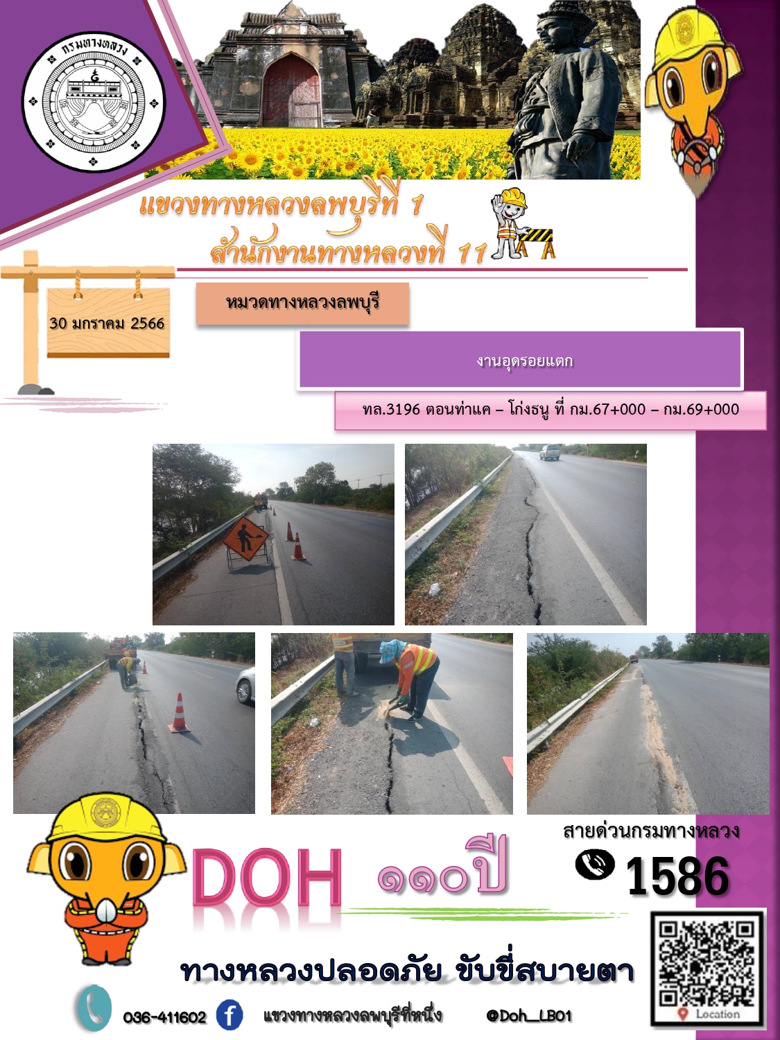 ทางหลวงปลอดภัยขับขี่สบายตา แขวงทางหลวงลพบุรีที่ 1 ประจำวันที่ 30 มกราคม 2566