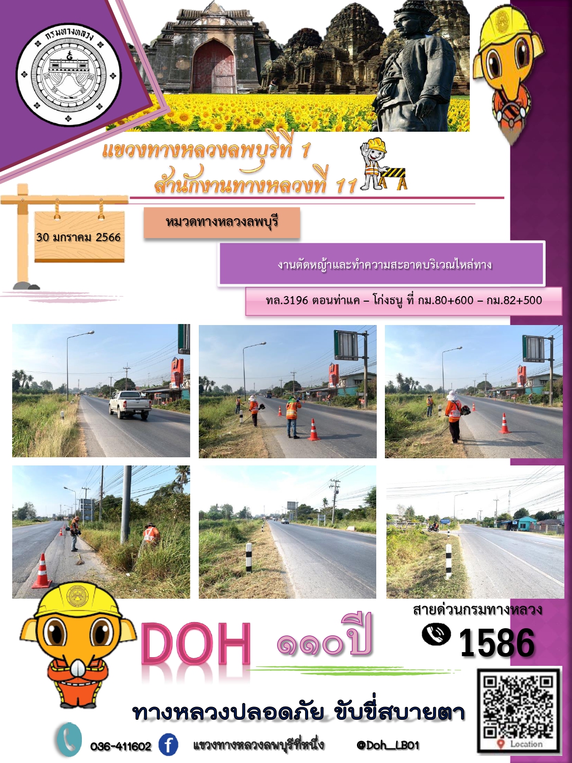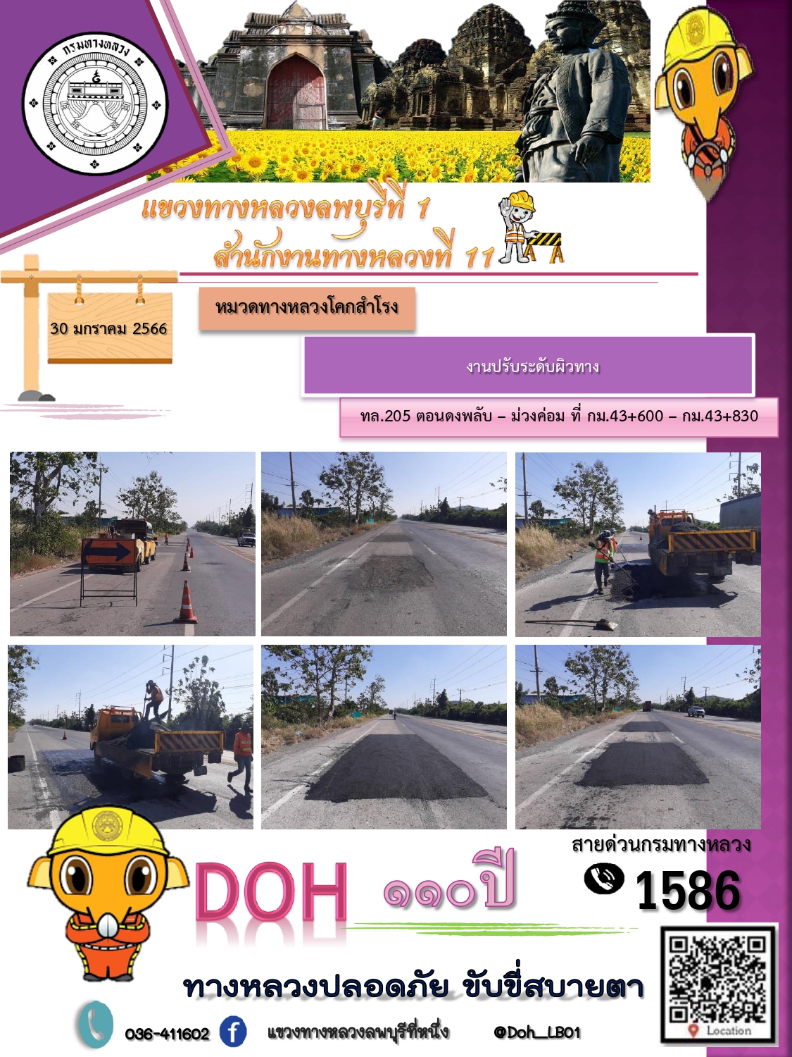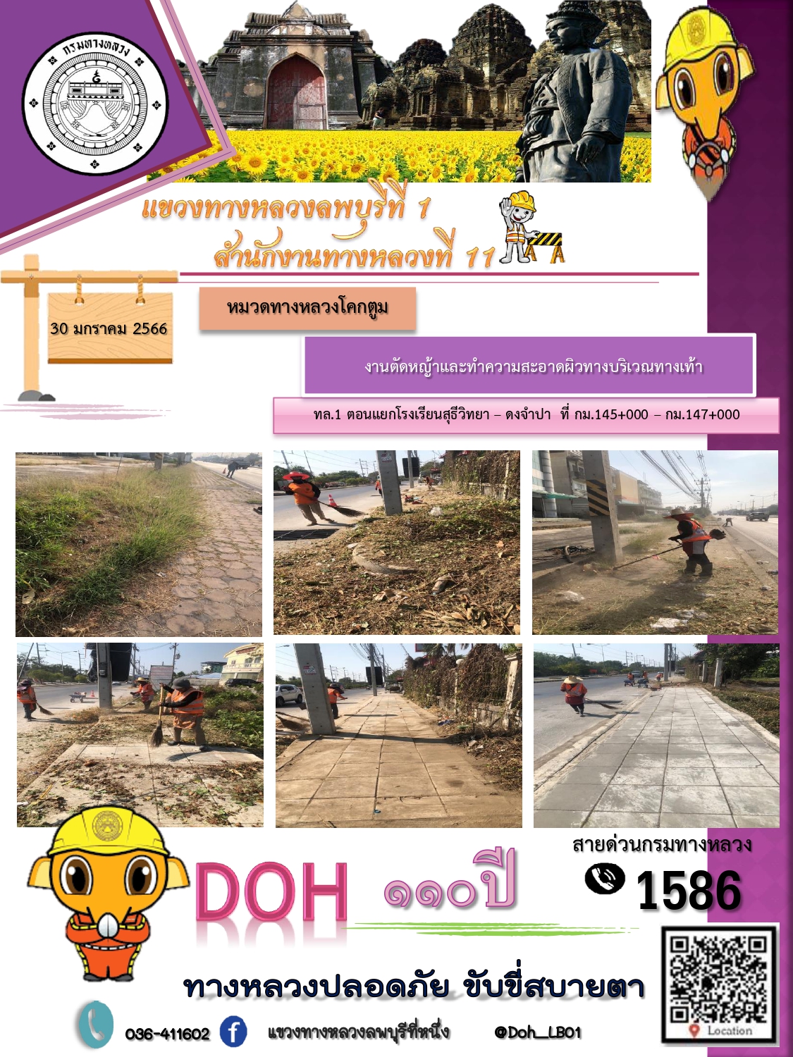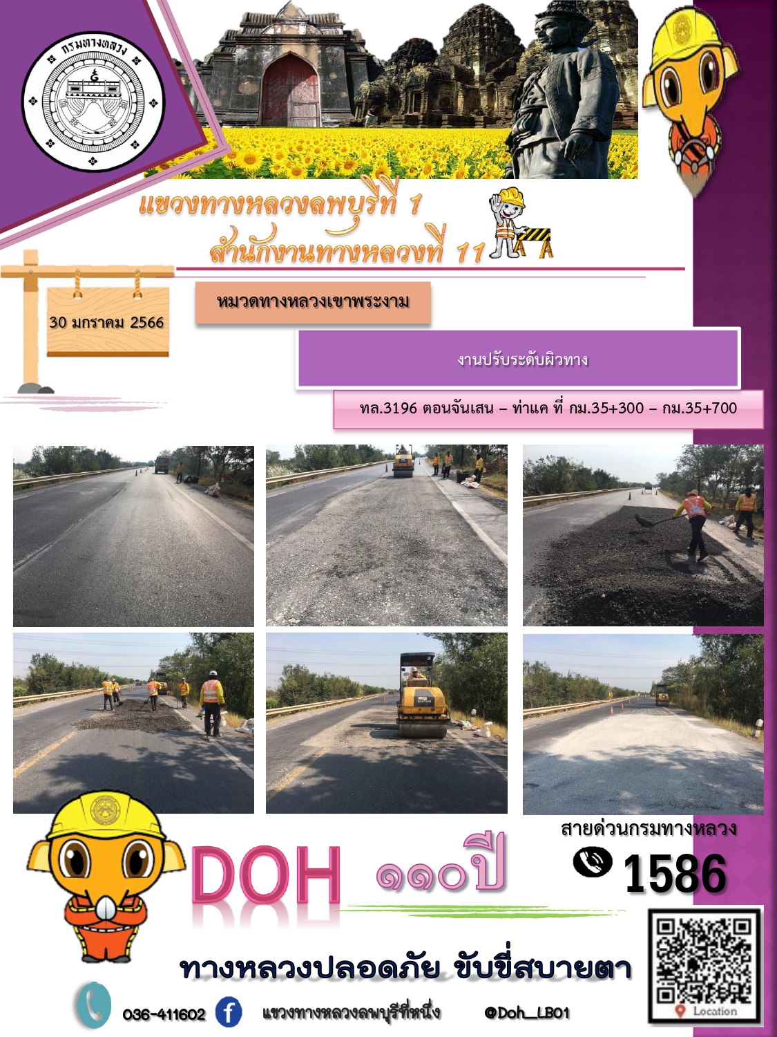 ทางหลวงปลอดภัยขับขี่สบายตา แขวงทางหลวงลพบุรีที่ 1 ประจำวันที่ 30 มกราคม 2566