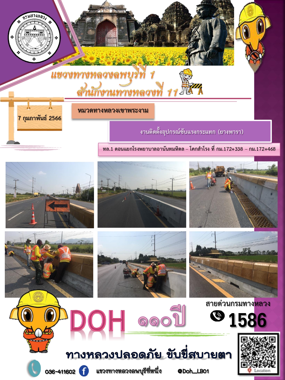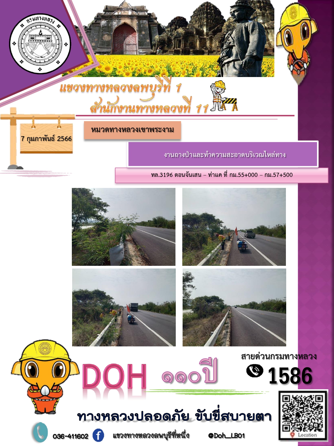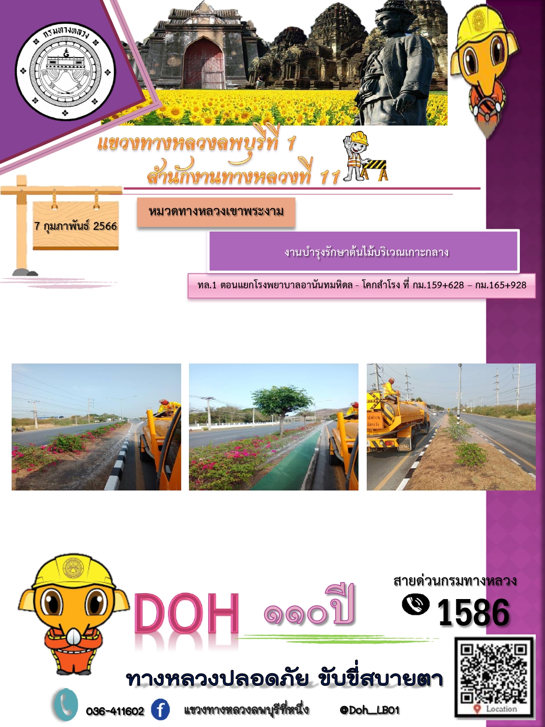 ทางหลวงปลอดภัยขับขี่สบายตา แขวงทางหลวงลพบุรีที่ 1 ประจำวันที่ 7 กุมภาพันธ์ 2566