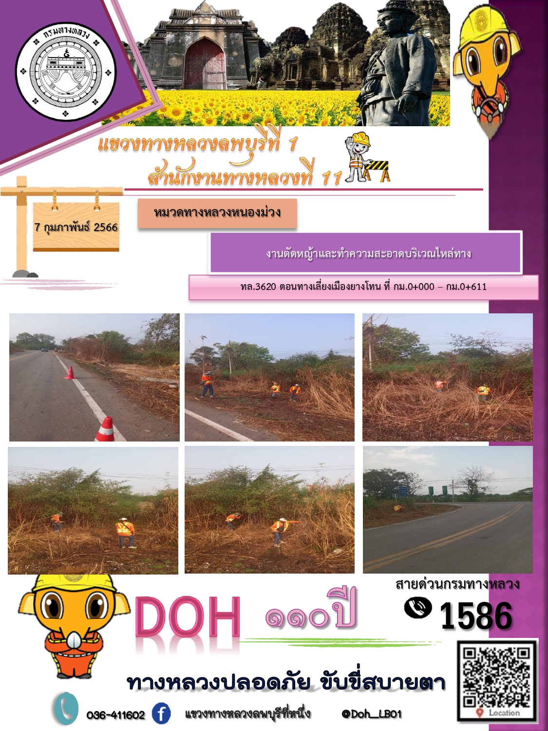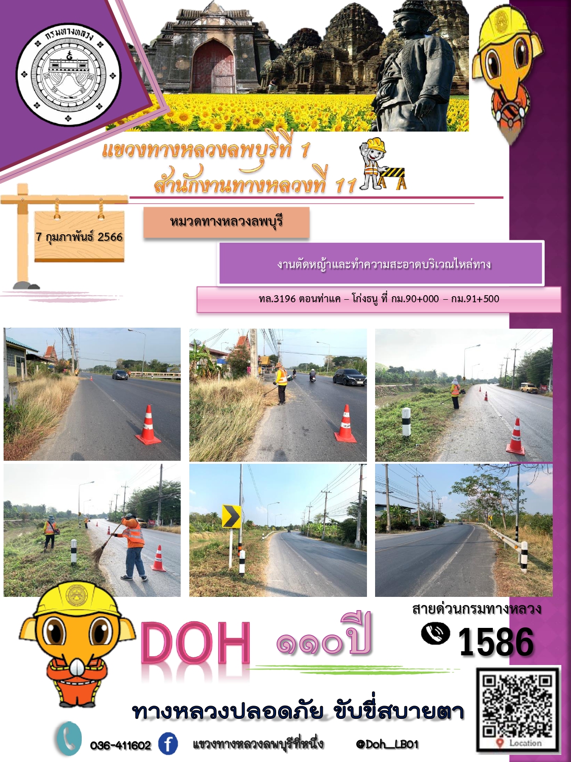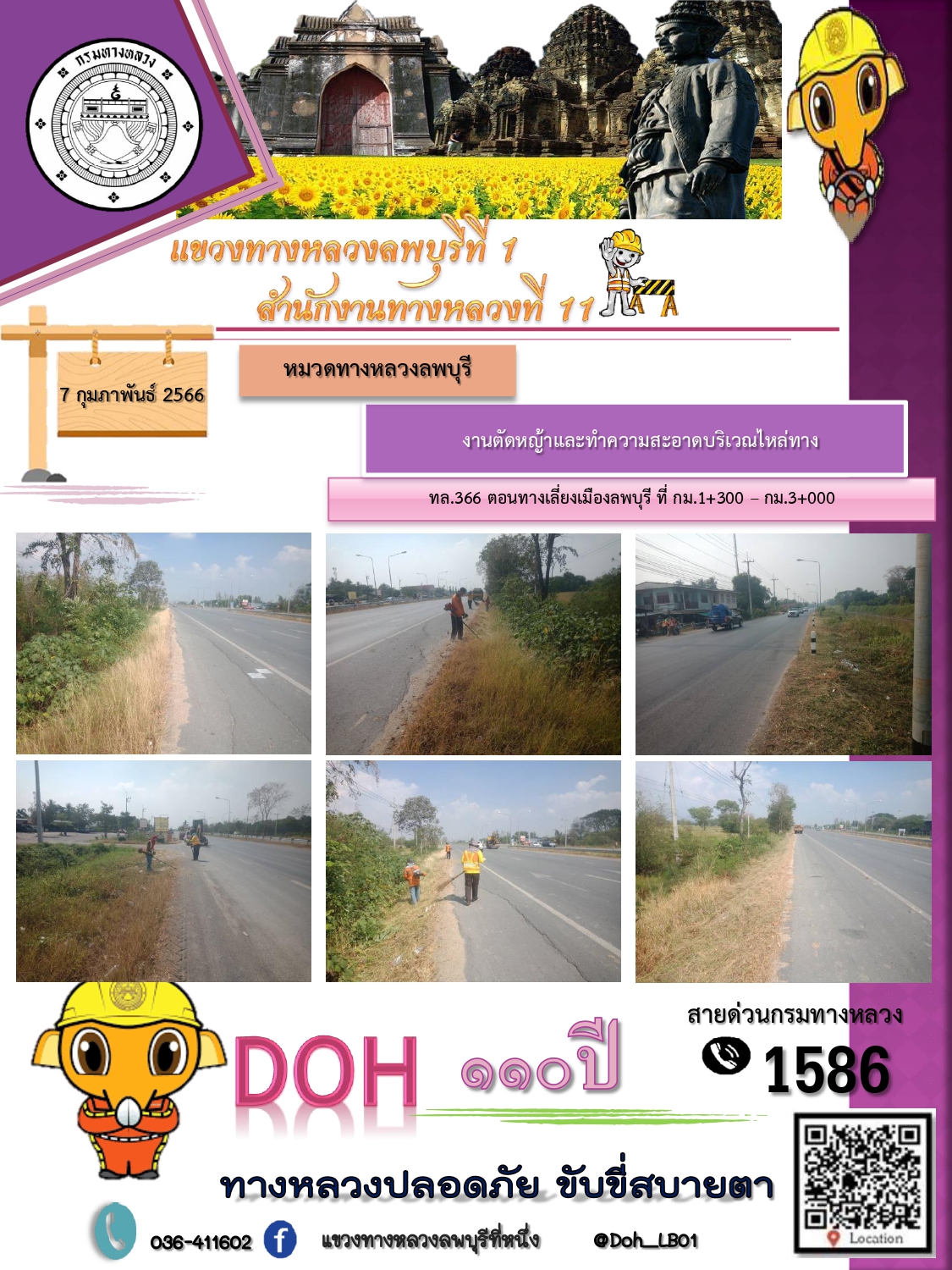 ทางหลวงปลอดภัยขับขี่สบายตา แขวงทางหลวงลพบุรีที่ 1 ประจำวันที่ 7 กุมภาพันธ์ 2566