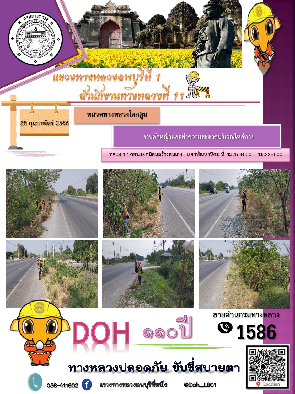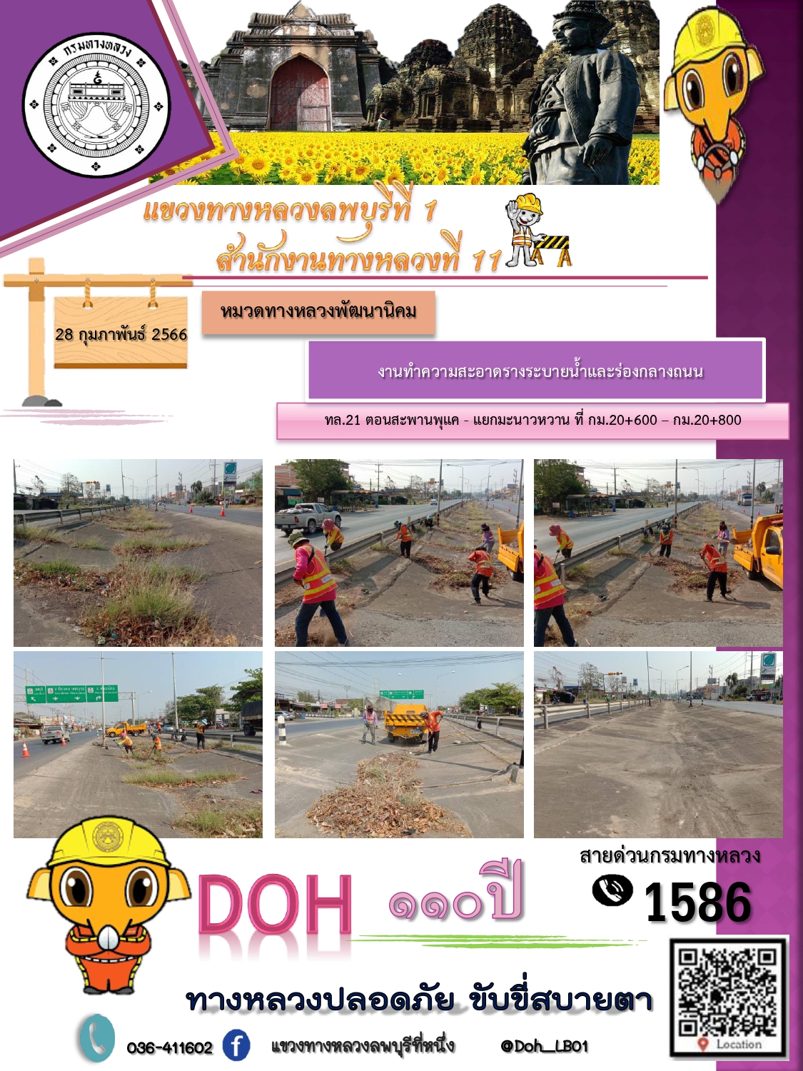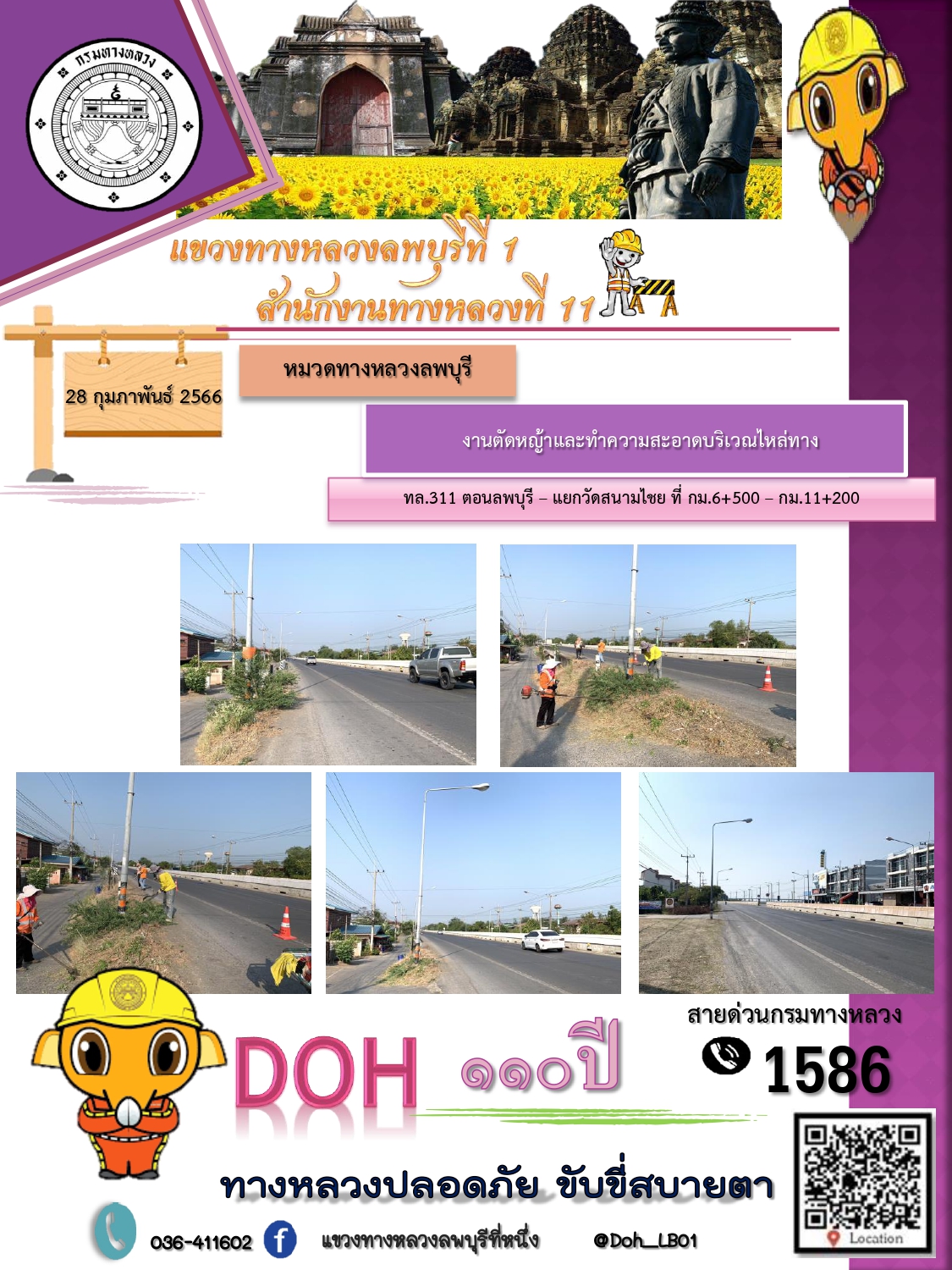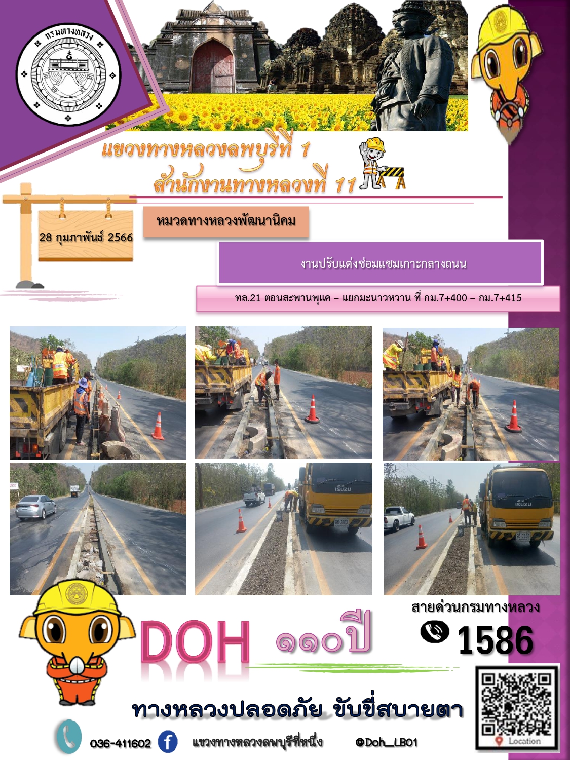ทางหลวงปลอดภัยขับขี่สบายตา แขวงทางหลวงลพบุรีที่ 1 ประจำวันที่ 28 กุมภาพันธ์ 2566