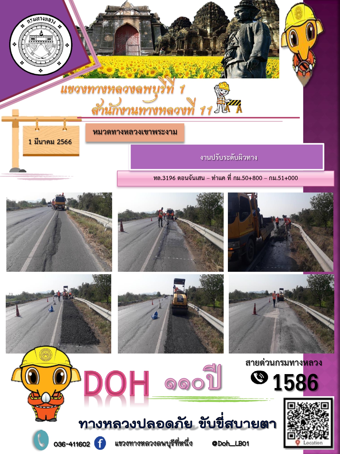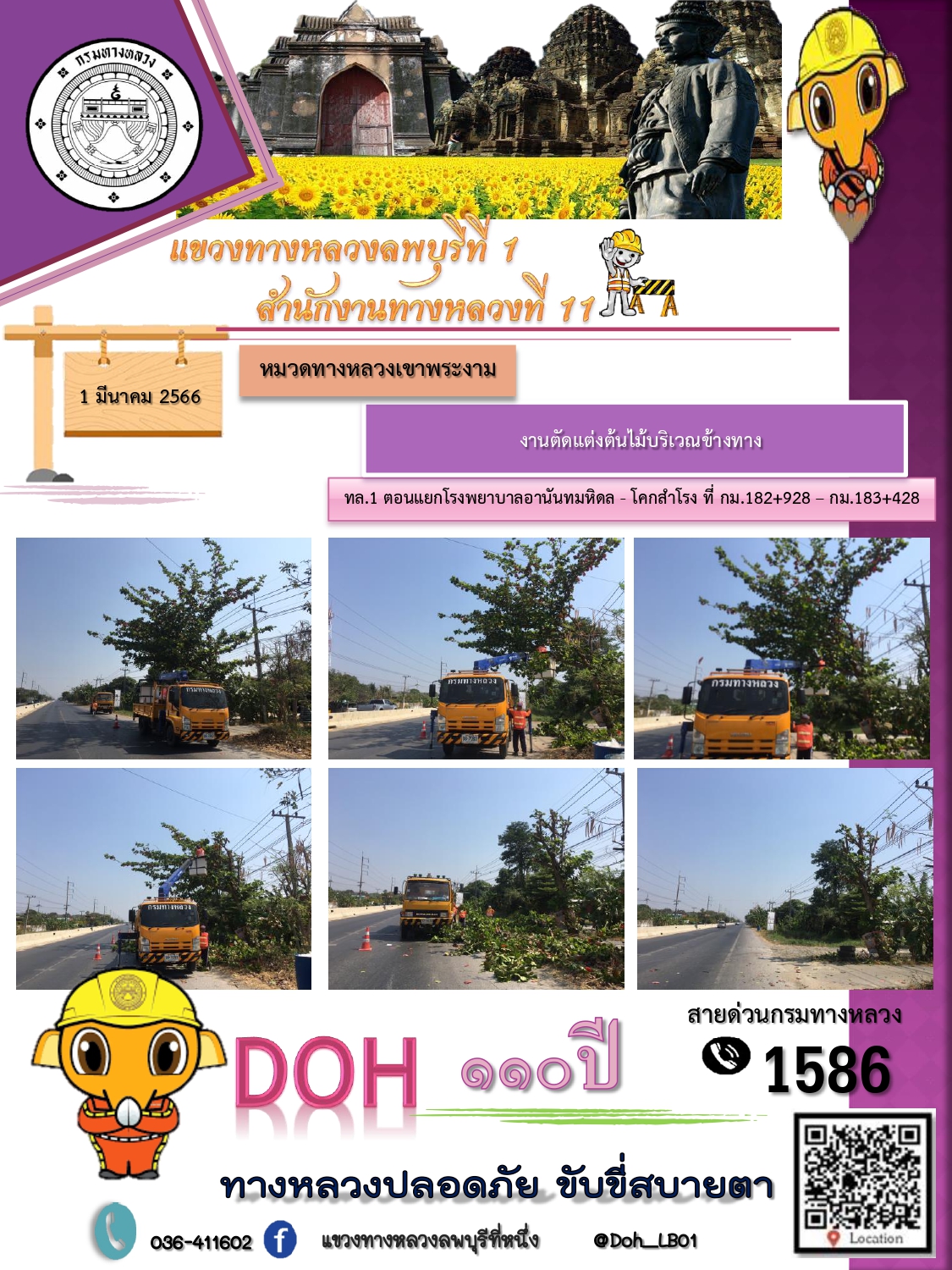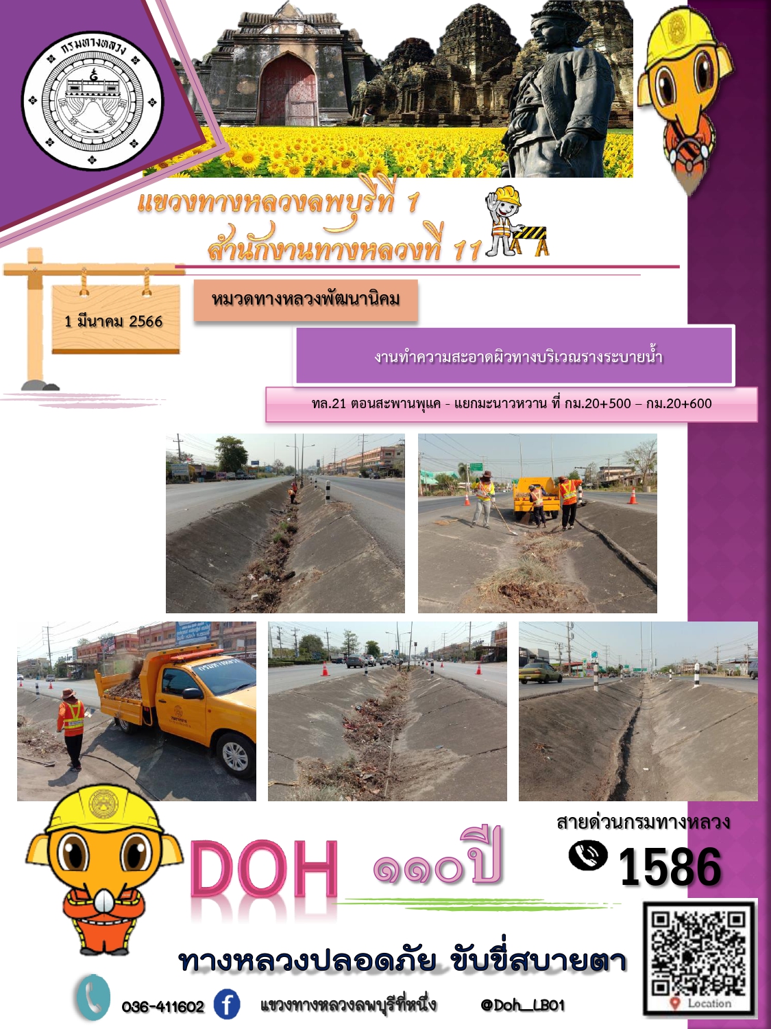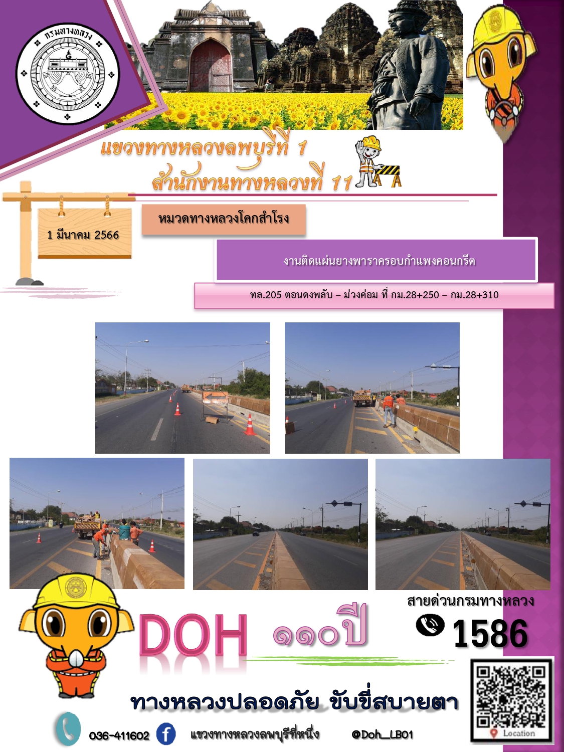 ทางหลวงปลอดภัยขับขี่สบายตา แขวงทางหลวงลพบุรีที่ 1 ประจำวันที่ 1 มีนาคม 2566