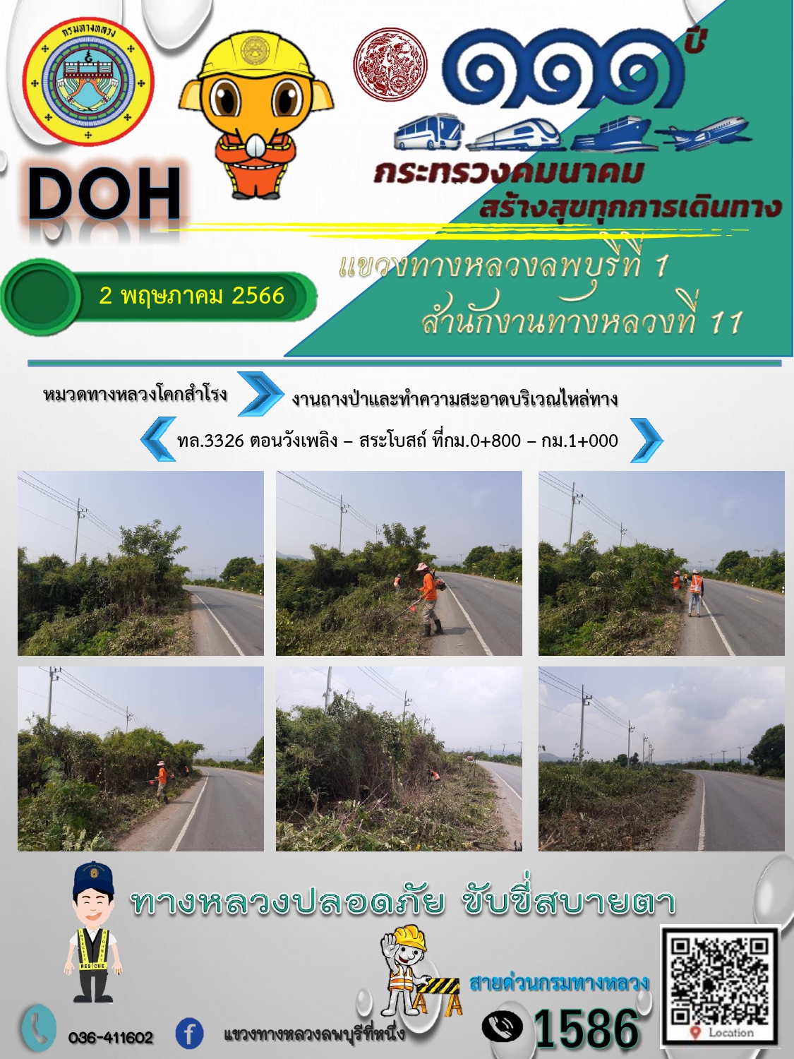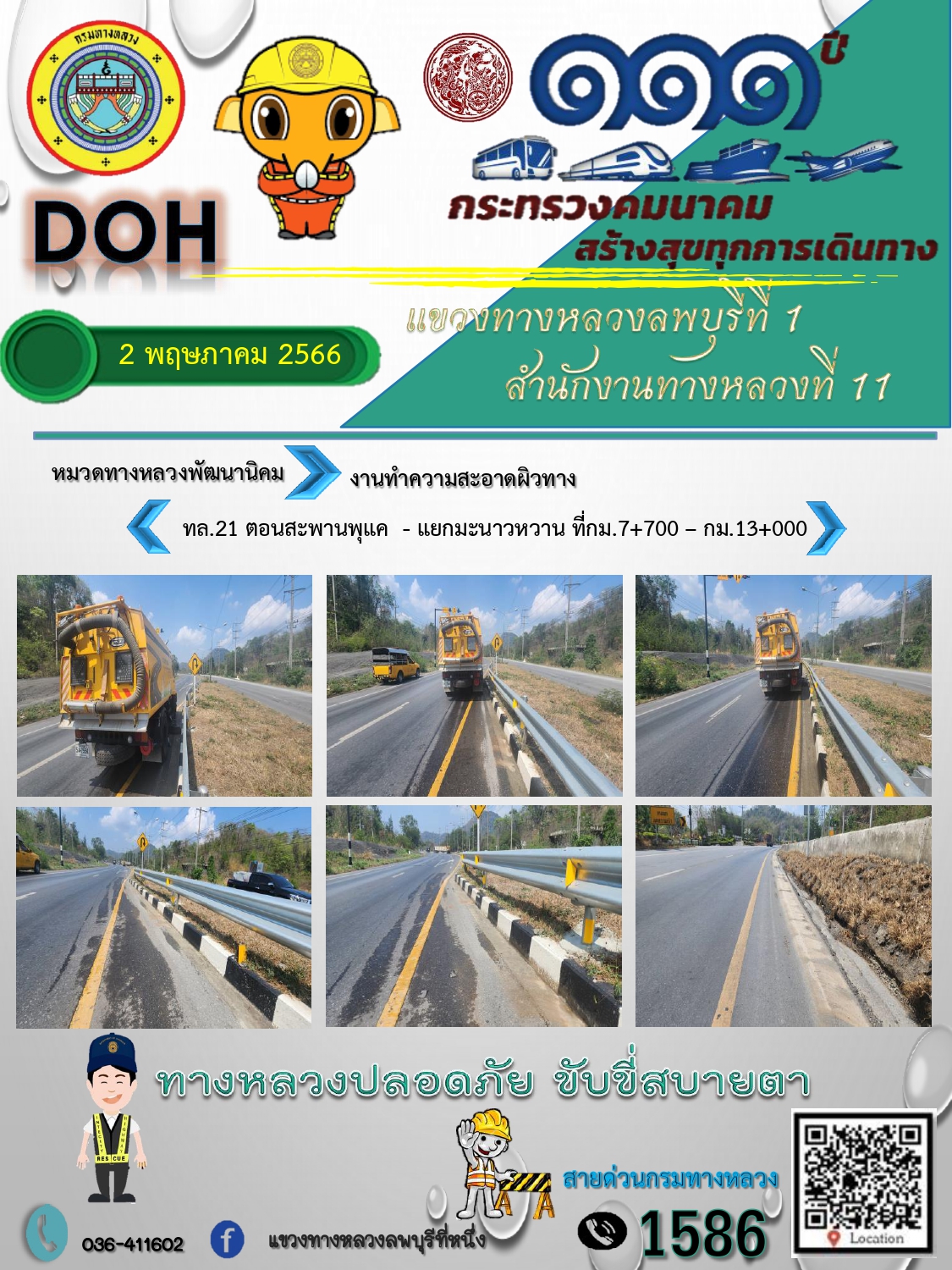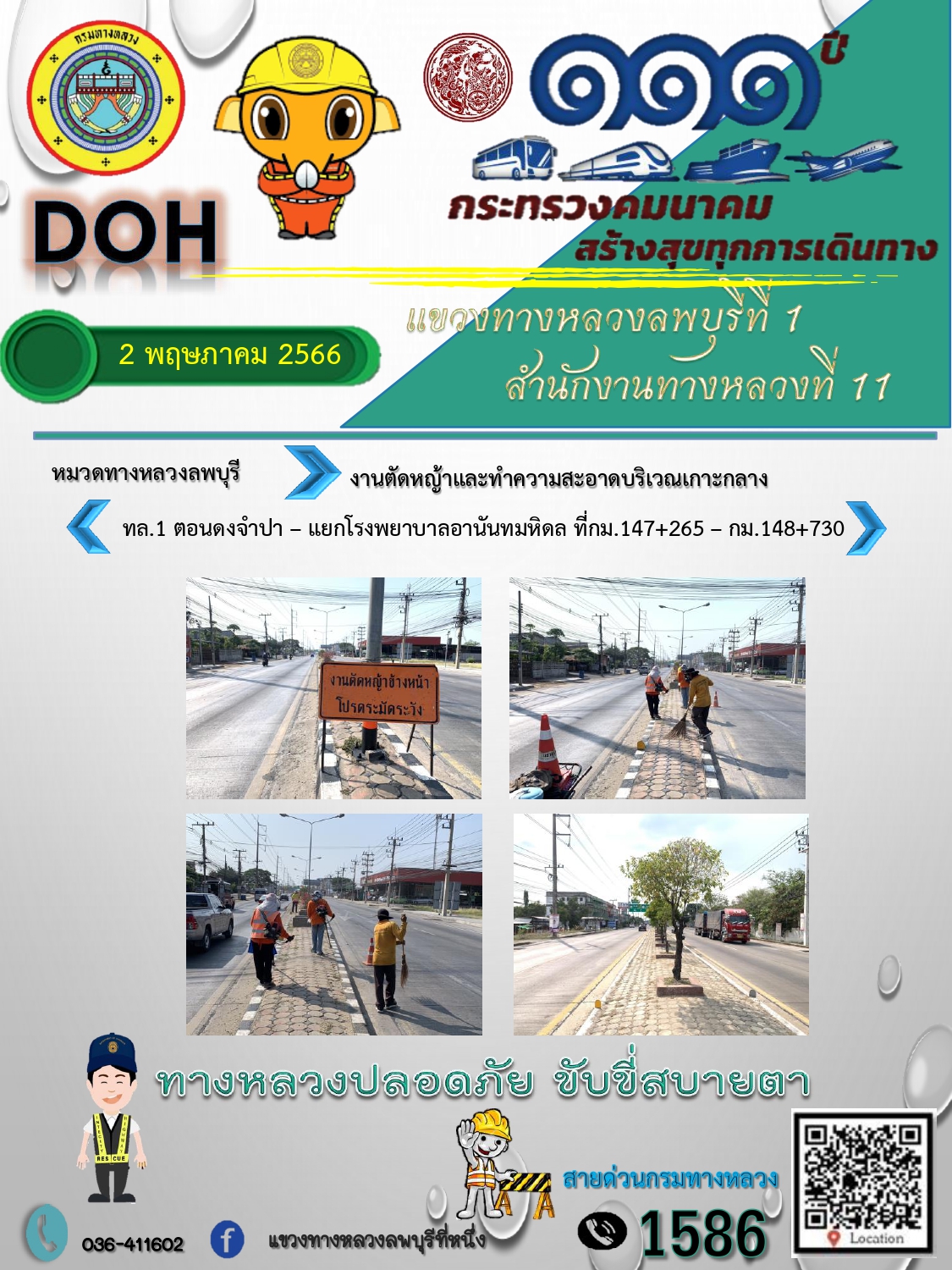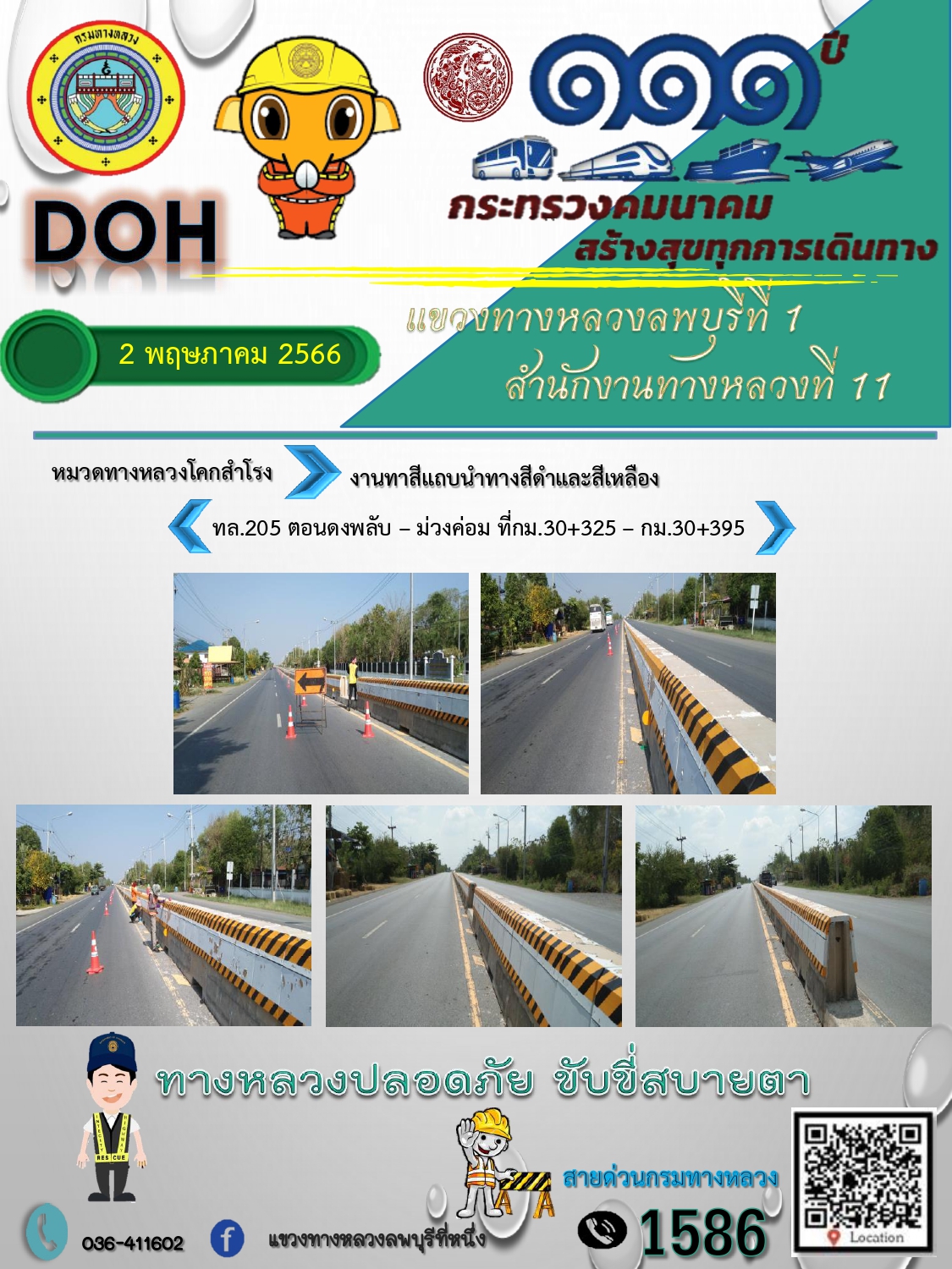 ทางหลวงปลอดภัยขับขี่สบายตา แขวงทางหลวงลพบุรีที่ 1 ประจำวันที่ 2 พฤษภาคม 2566