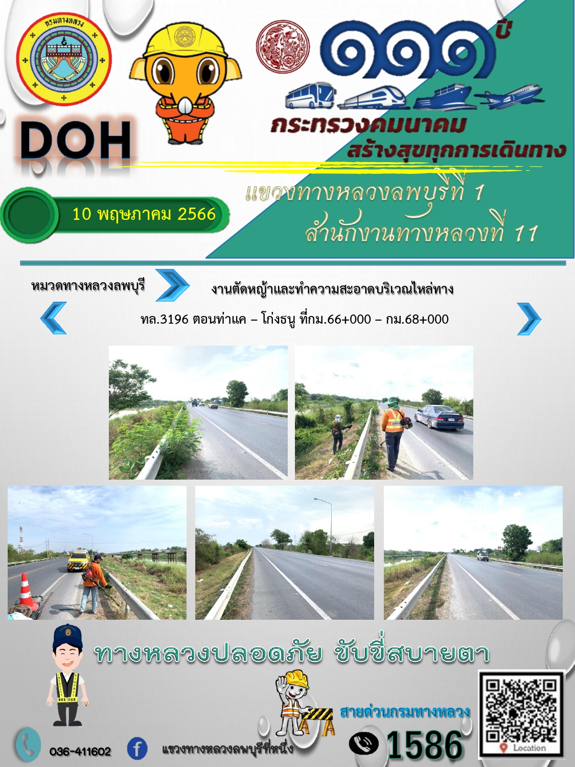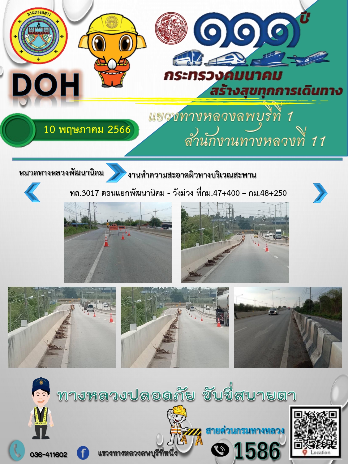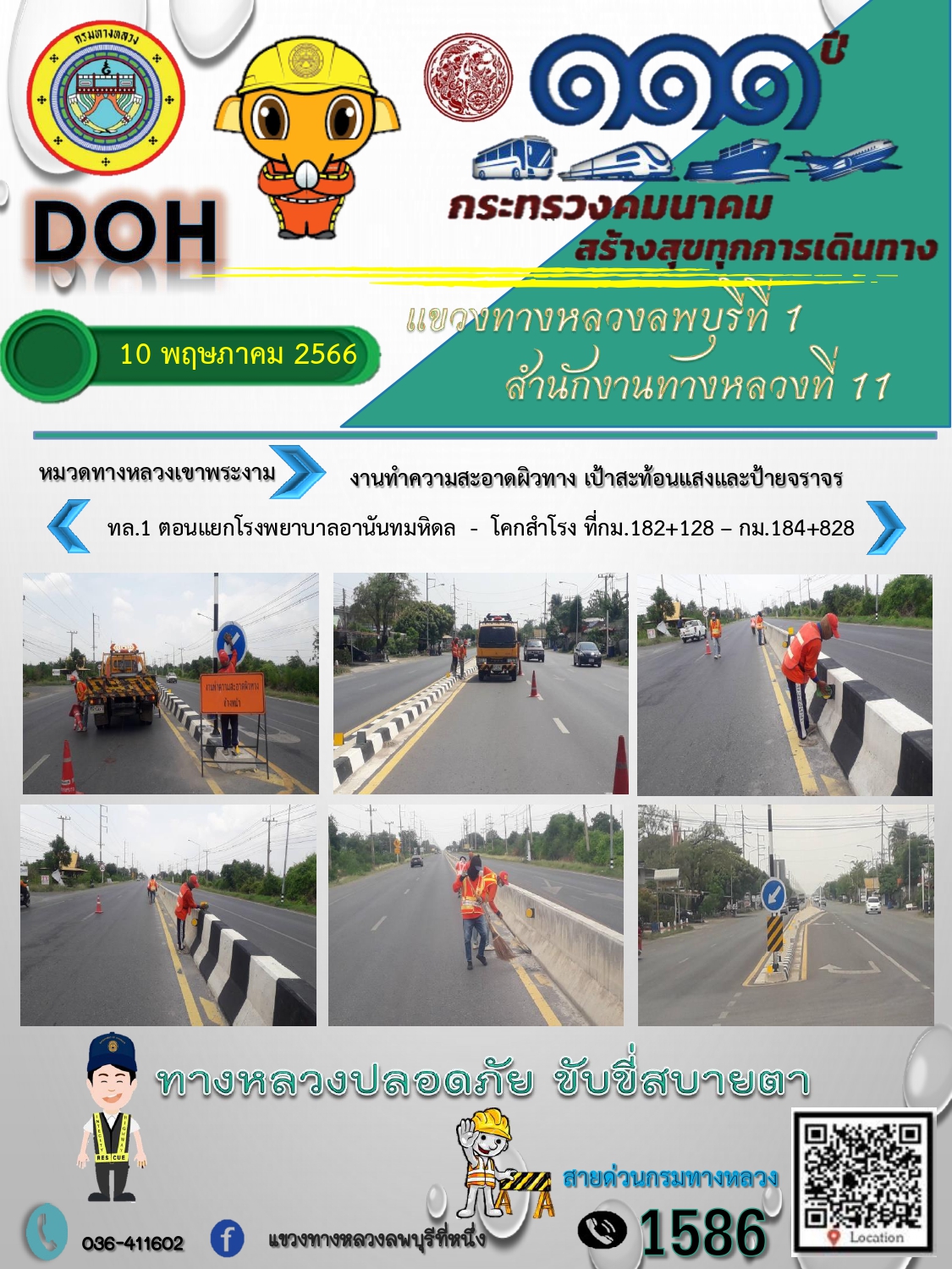 ทางหลวงปลอดภัยขับขี่สบายตา แขวงทางหลวงลพบุรีที่ 1 ประจำวันที่ 10 พฤษภาคม 2566