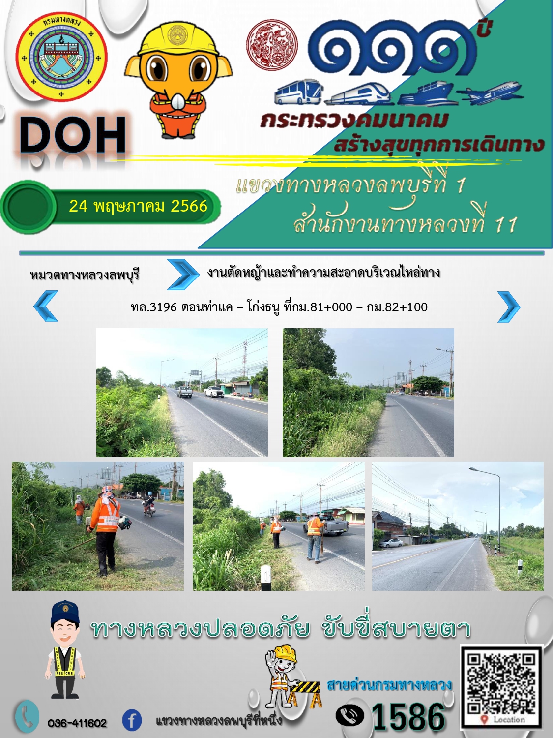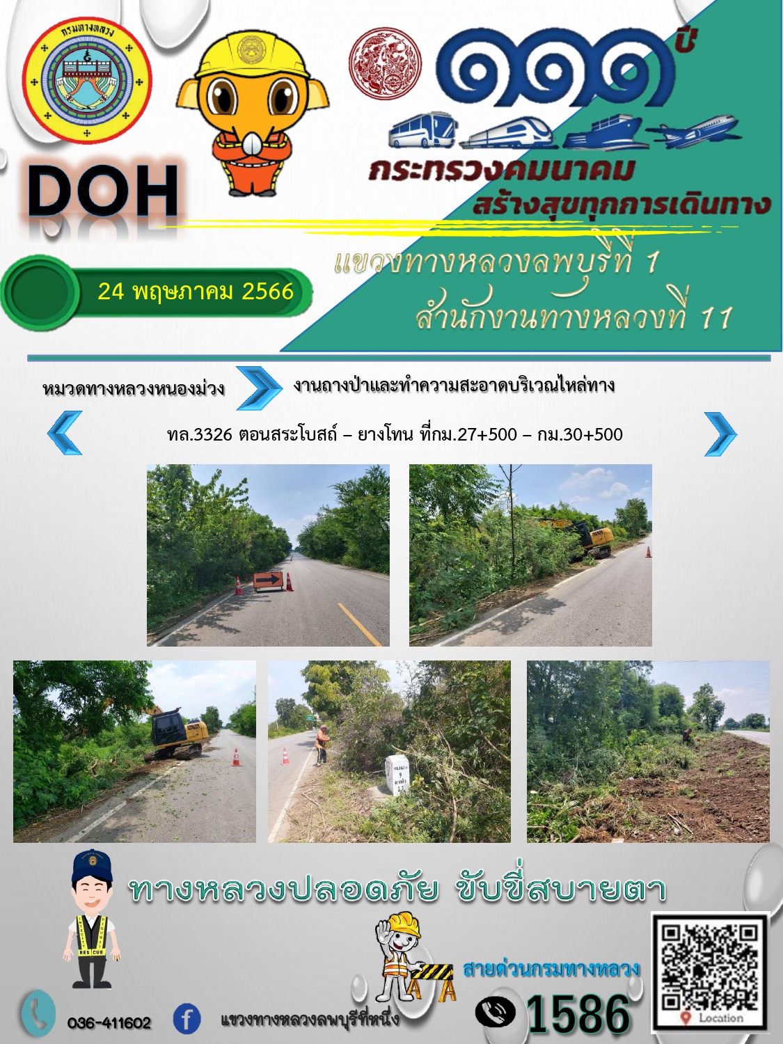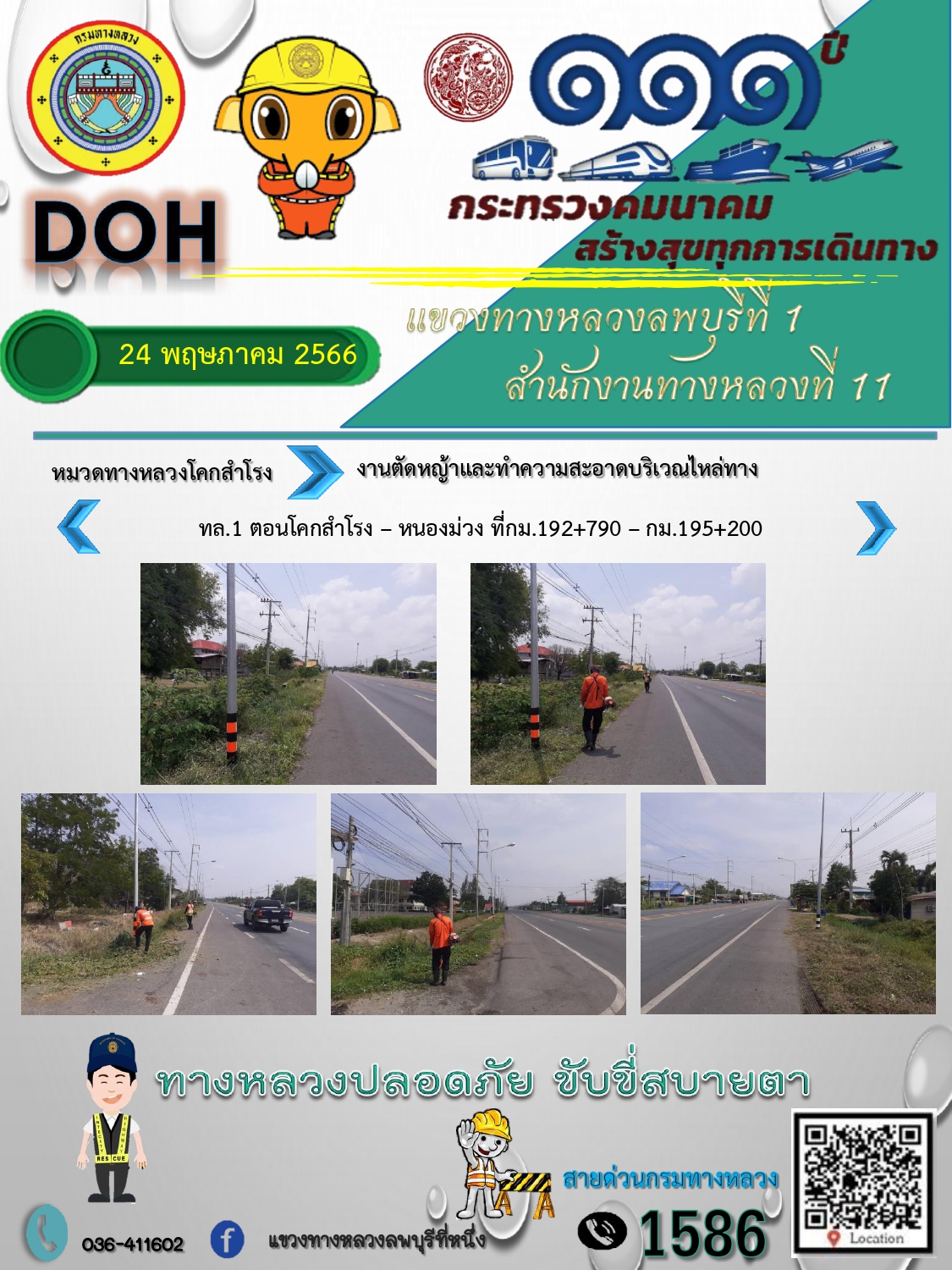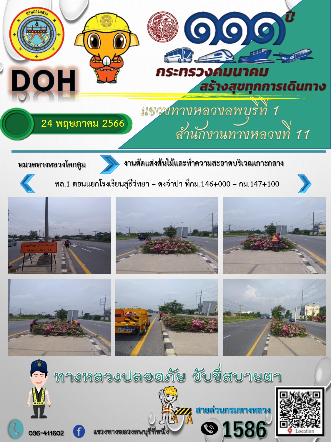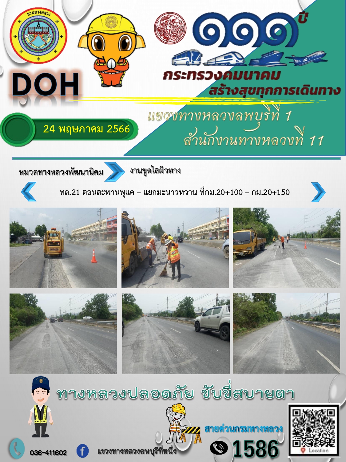 ทางหลวงปลอดภัยขับขี่สบายตา แขวงทางหลวงลพบุรีที่ 1 ประจำวันที่ 24 พฤษภาคม 2566