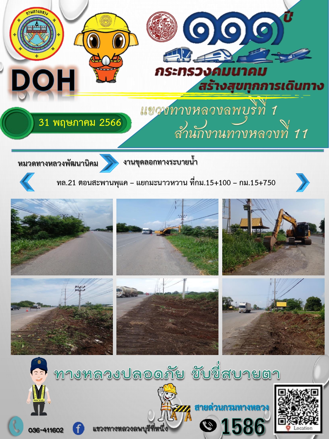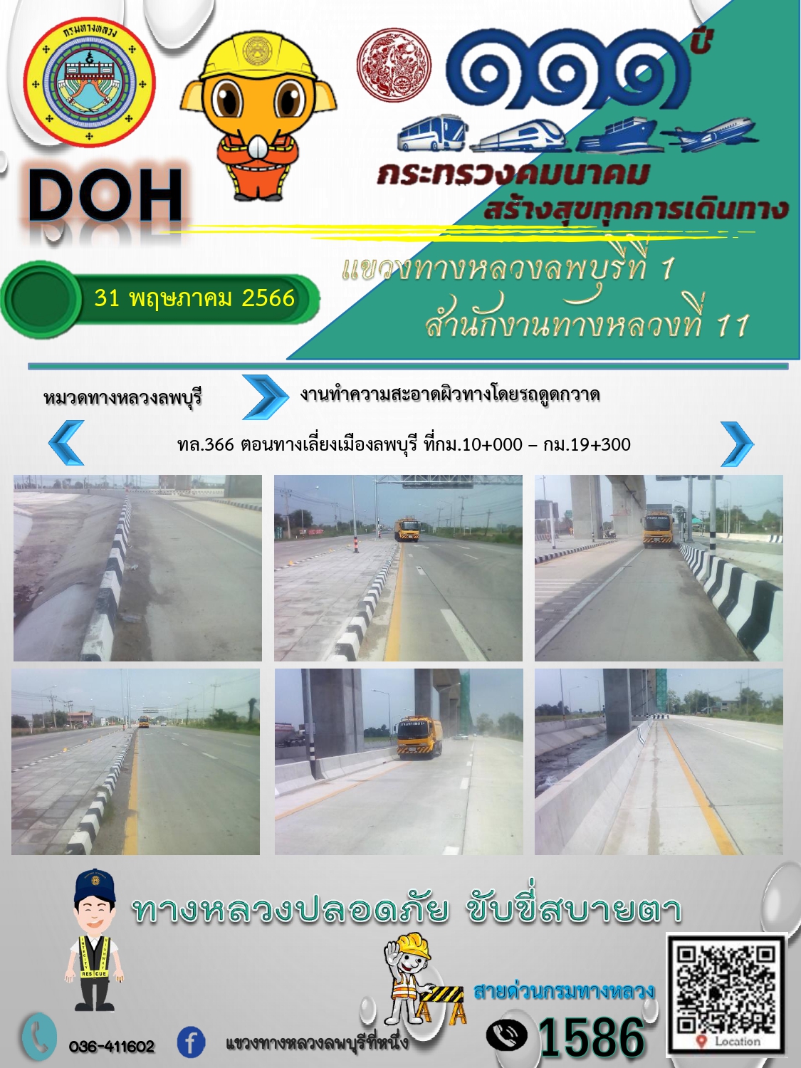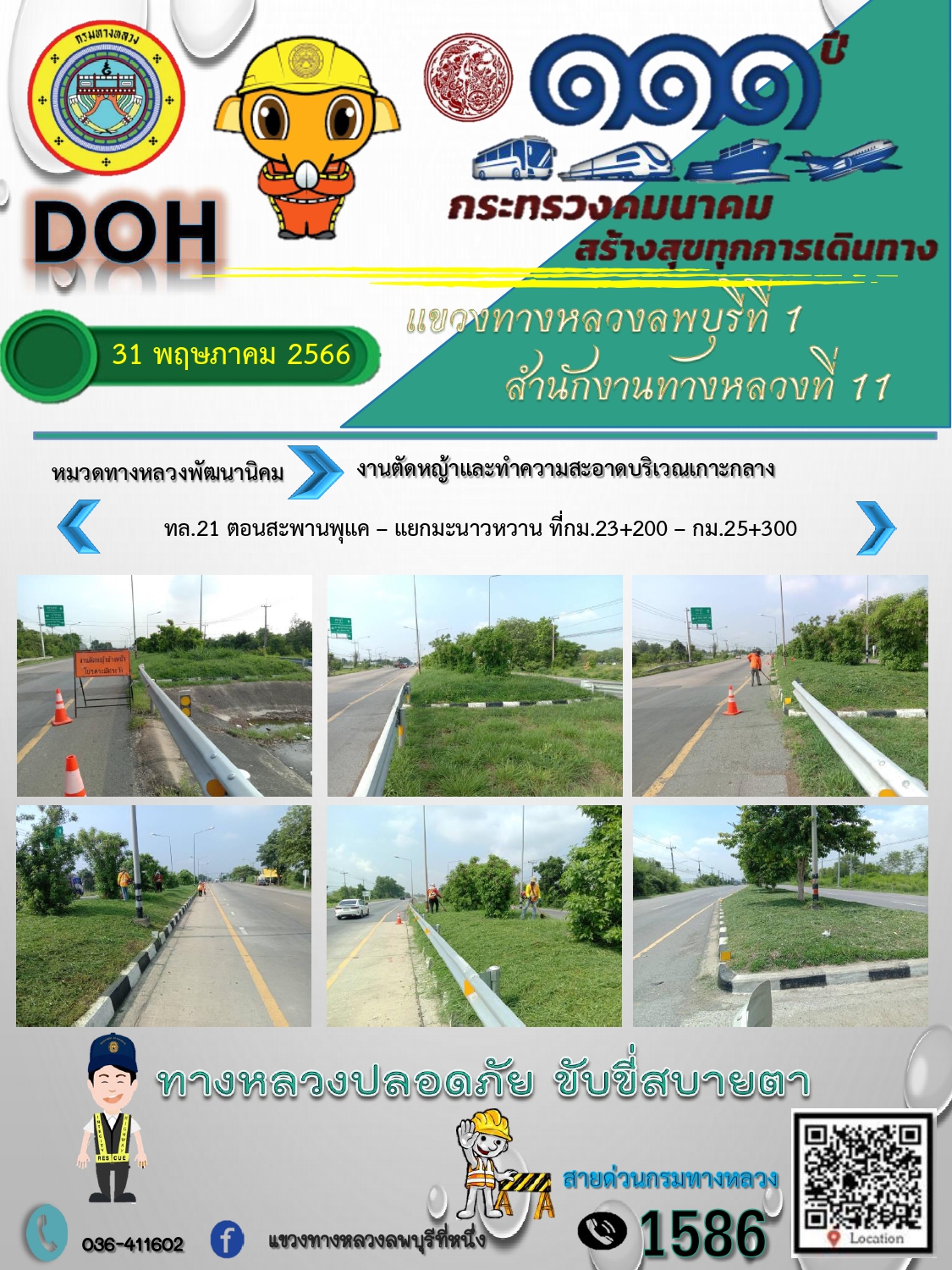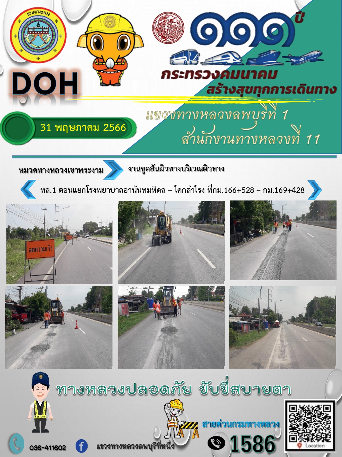 ทางหลวงปลอดภัยขับขี่สบายตา แขวงทางหลวงลพบุรีที่ 1 ประจำวันที่ 31 พฤษภาคม 2566