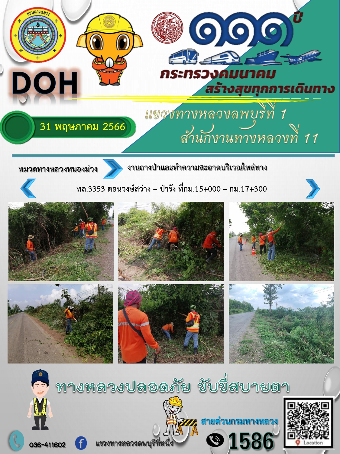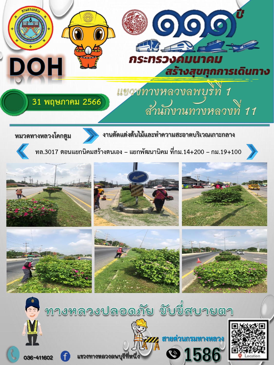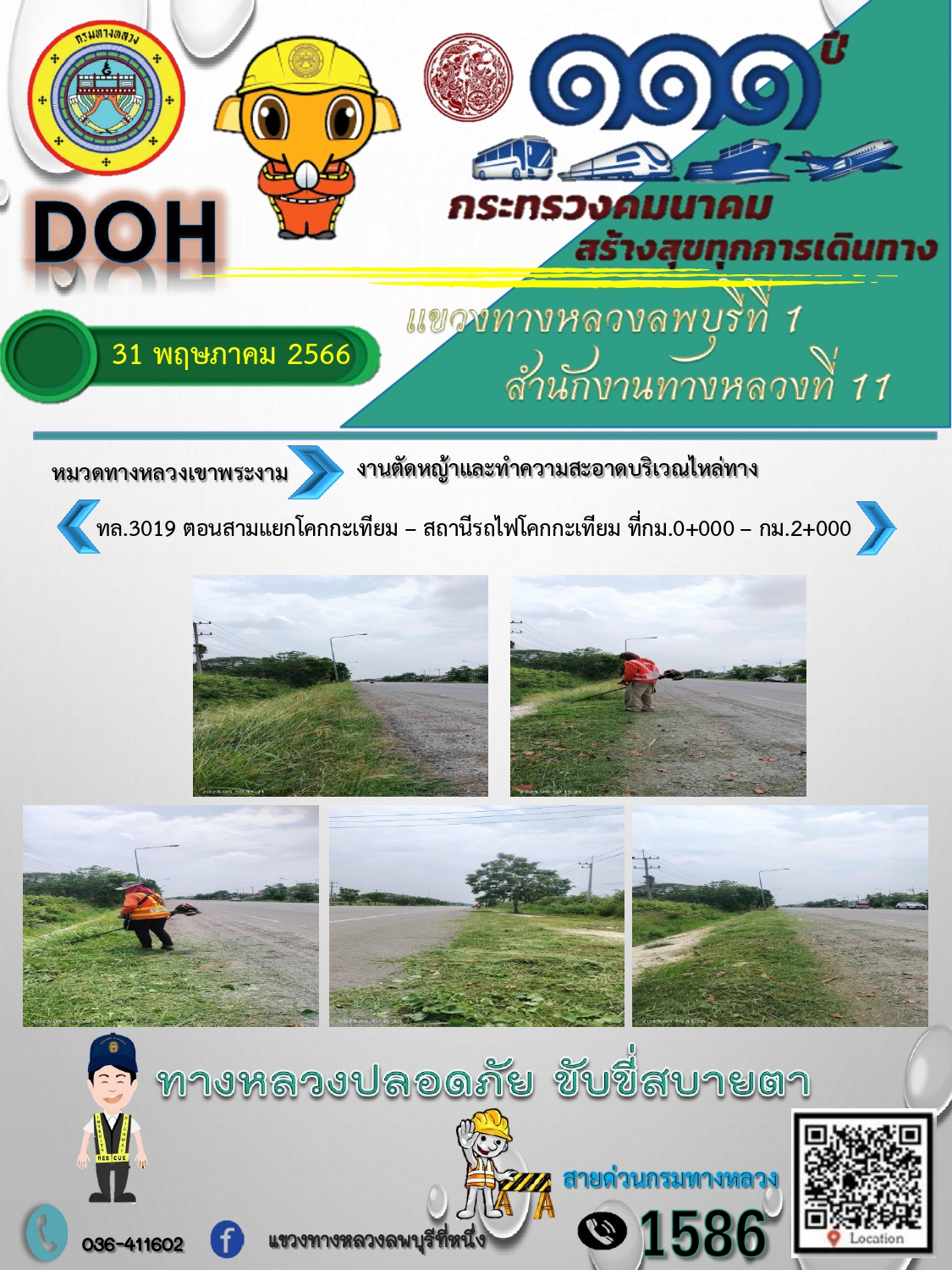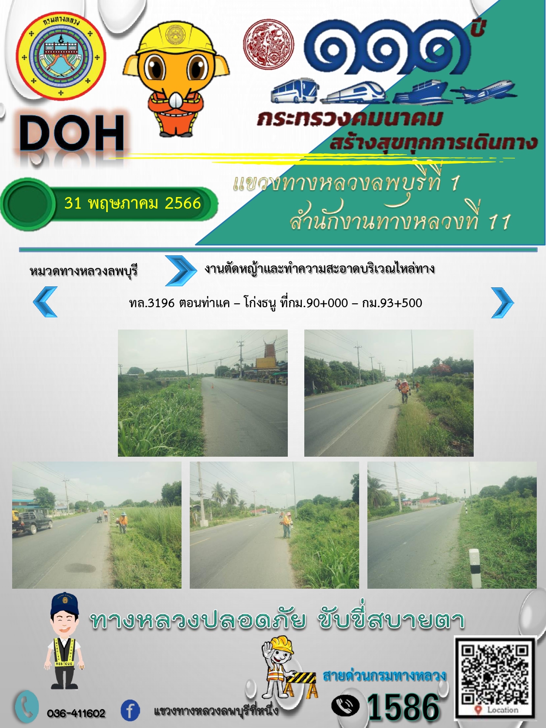 ทางหลวงปลอดภัยขับขี่สบายตา แขวงทางหลวงลพบุรีที่ 1 ประจำวันที่ 31 พฤษภาคม 2566