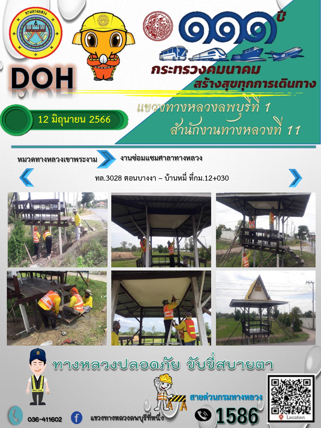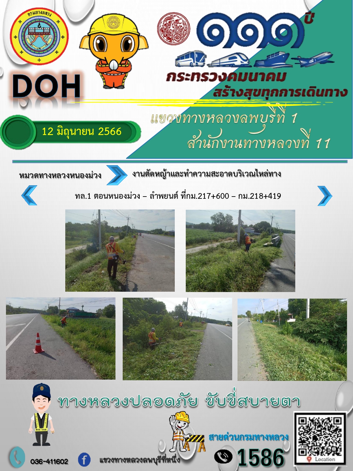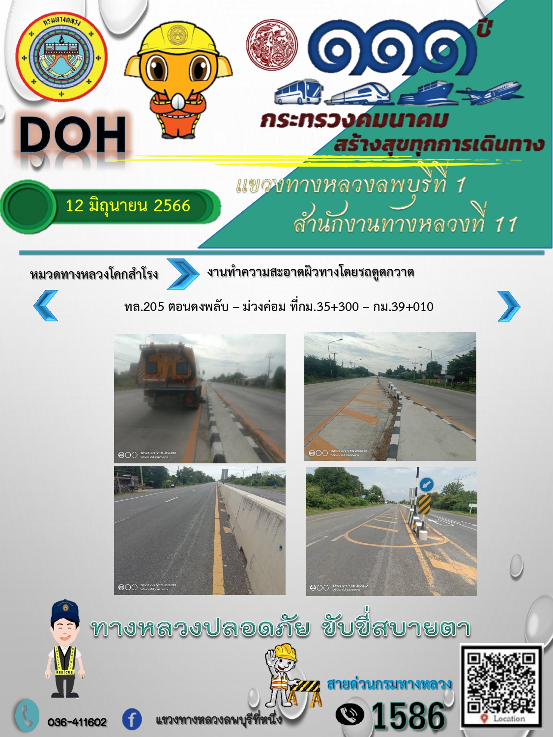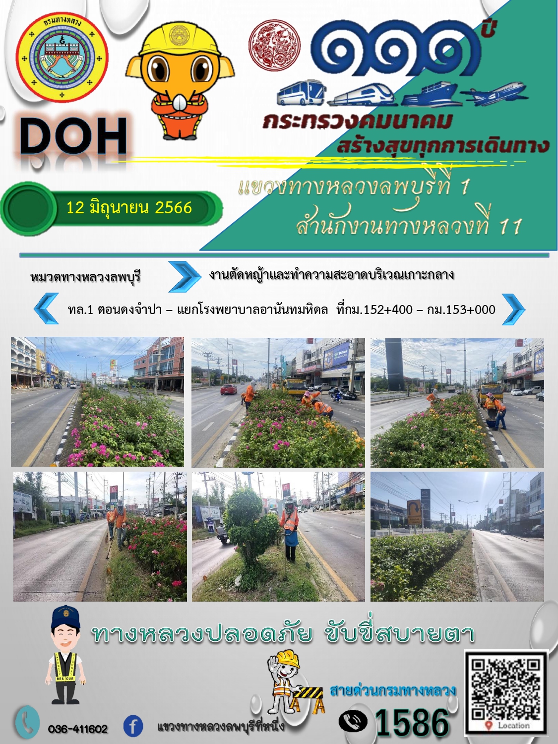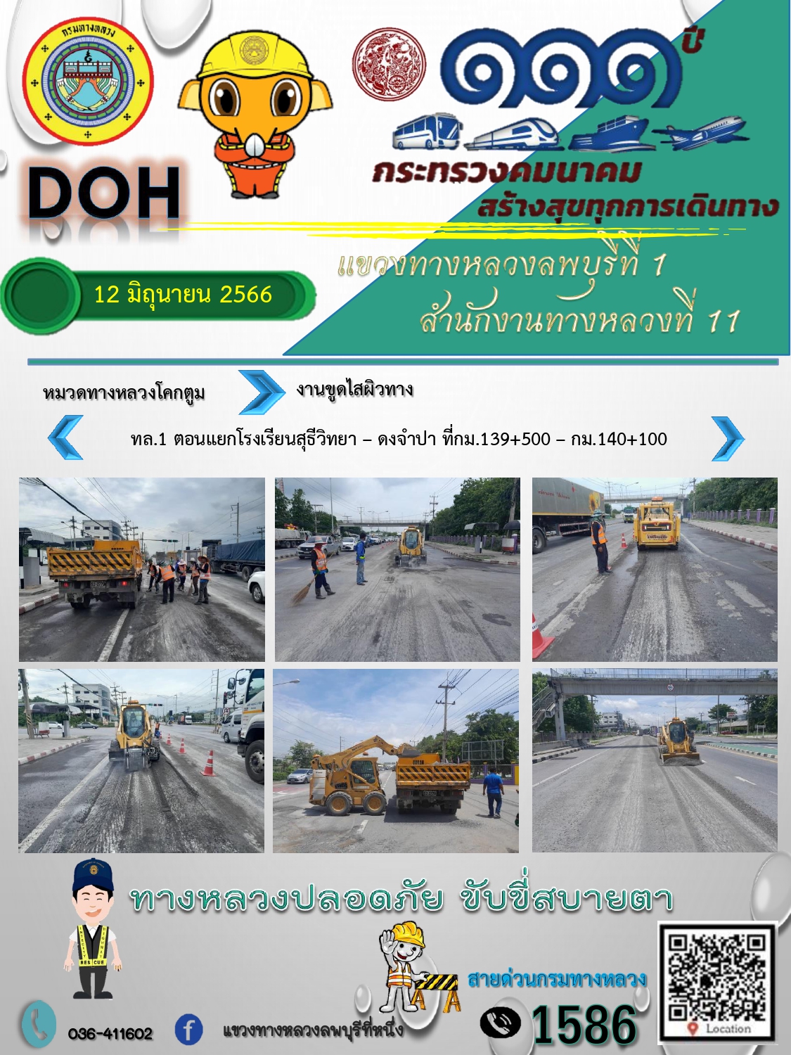 ทางหลวงปลอดภัยขับขี่สบายตา แขวงทางหลวงลพบุรีที่ 1 ประจำวันที่ 12 มิถุนายน 2566