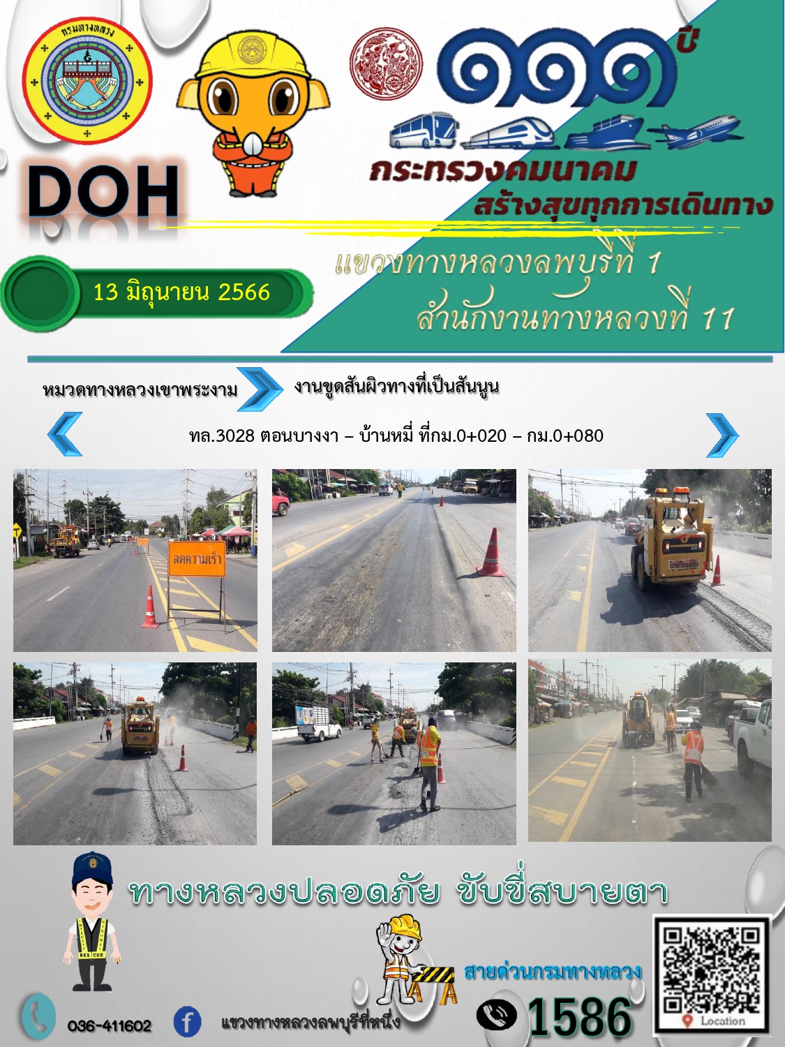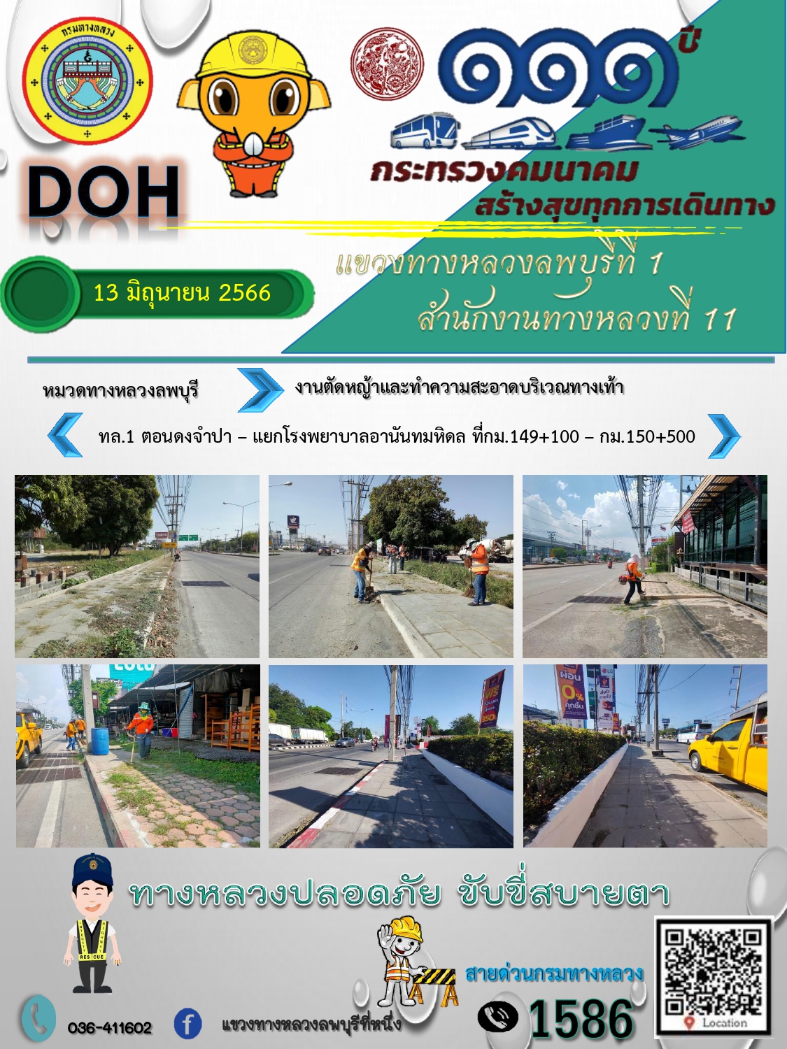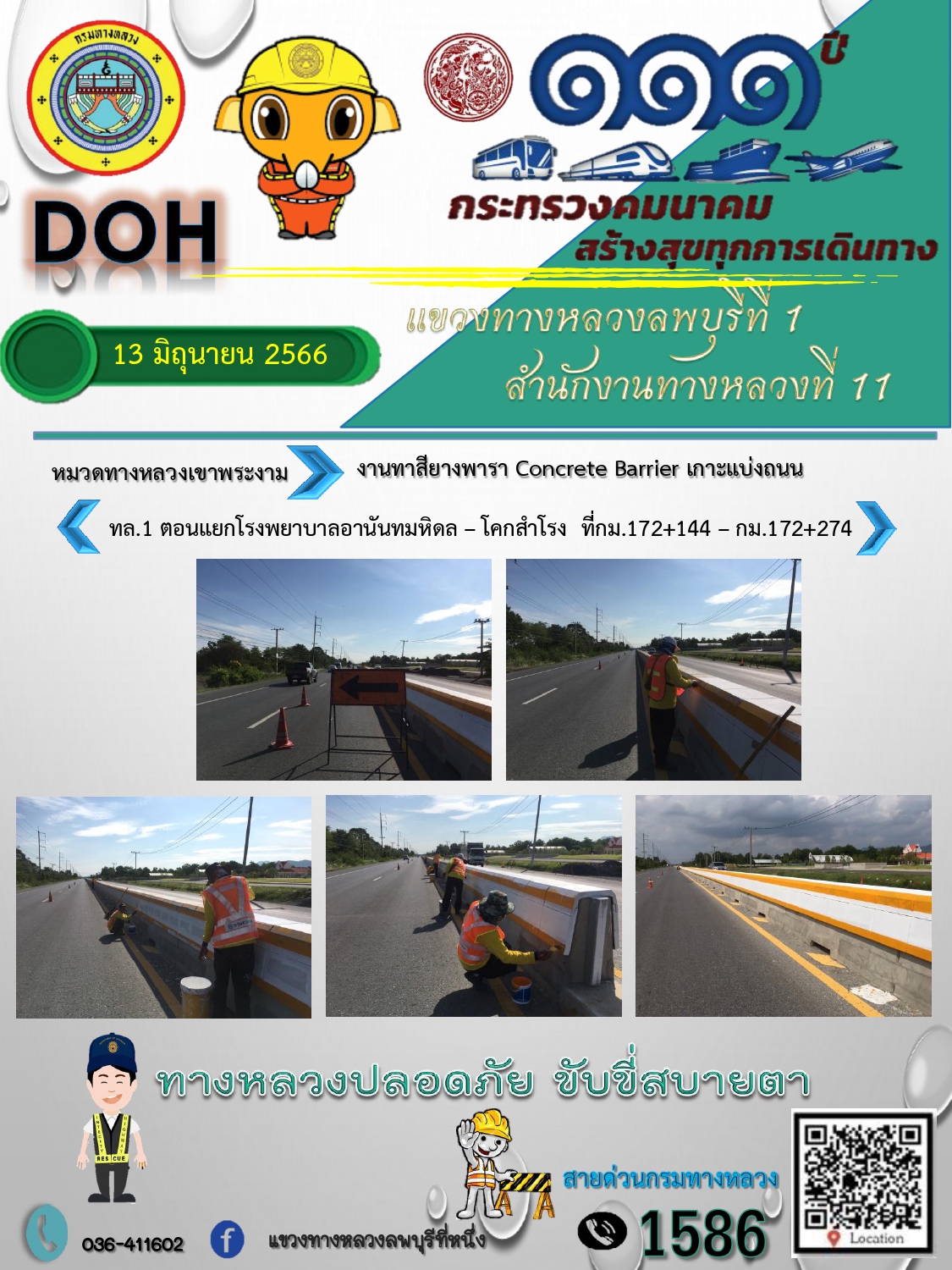 ทางหลวงปลอดภัยขับขี่สบายตา แขวงทางหลวงลพบุรีที่ 1 ประจำวันที่ 13 มิถุนายน 2566