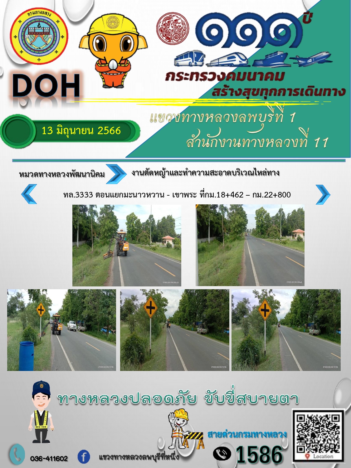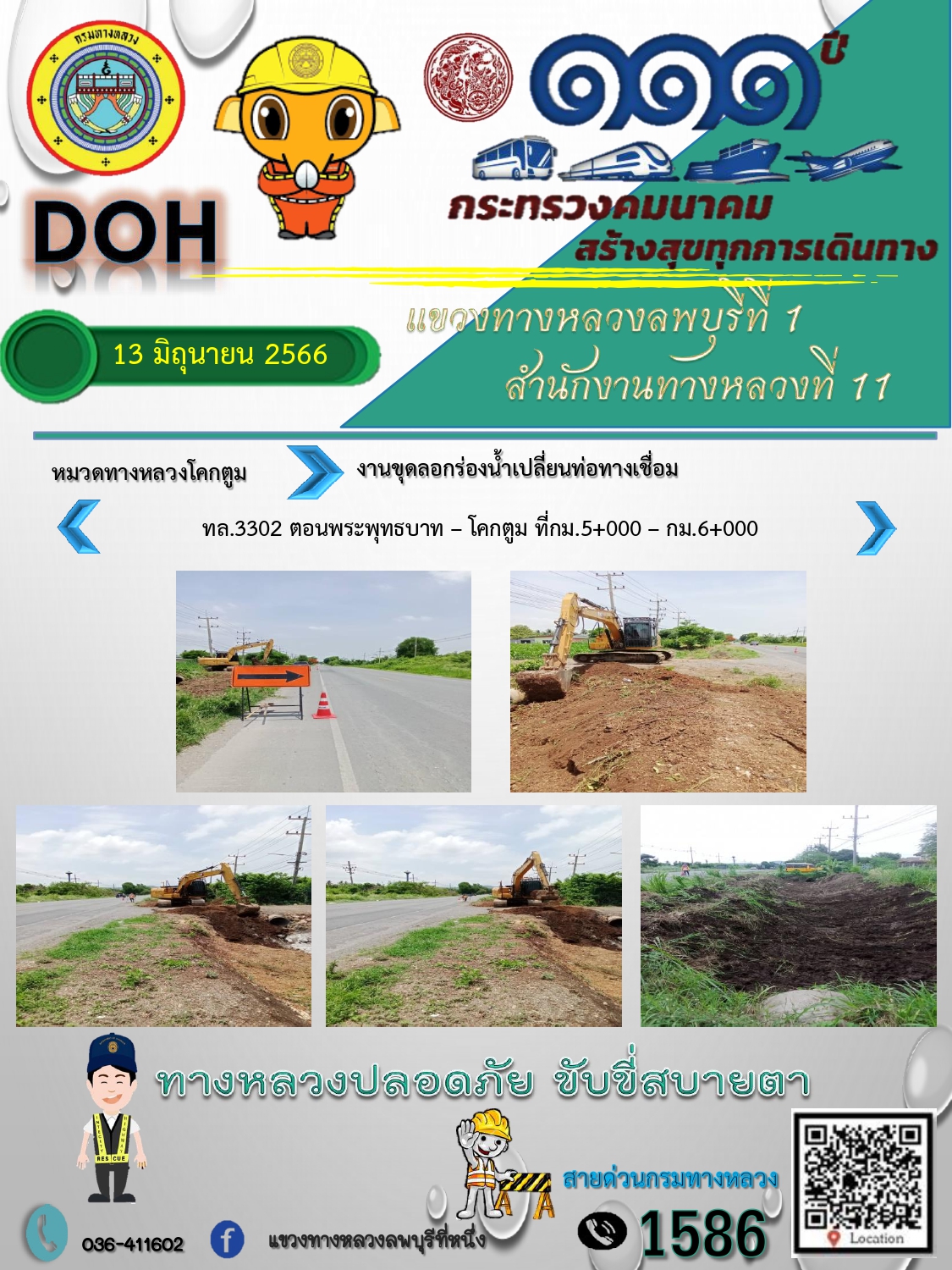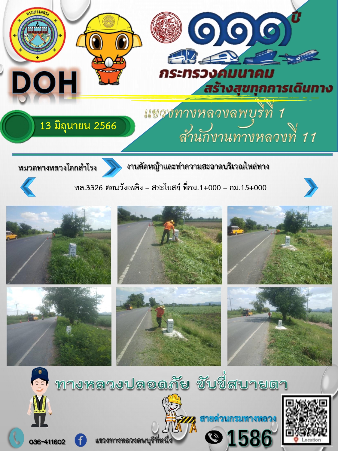 ทางหลวงปลอดภัยขับขี่สบายตา แขวงทางหลวงลพบุรีที่ 1 ประจำวันที่ 13 มิถุนายน 2566