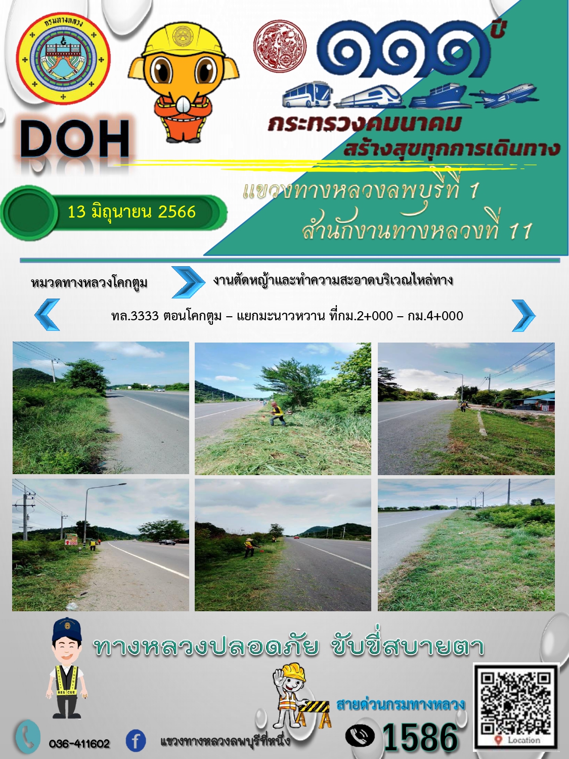ข้อมูลภาพกิจกรรม : ทางหลวงปลอดภัยขับขี่สบายตา แขวงทางหลวงลพบุรีที่ 1 ประจำวันที่ 13 มิถุนายน 2566