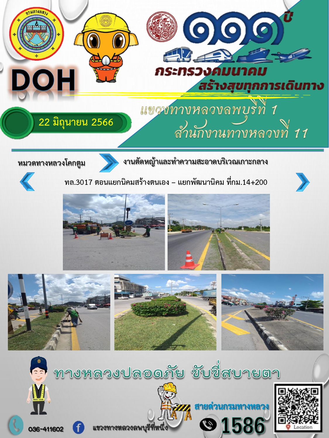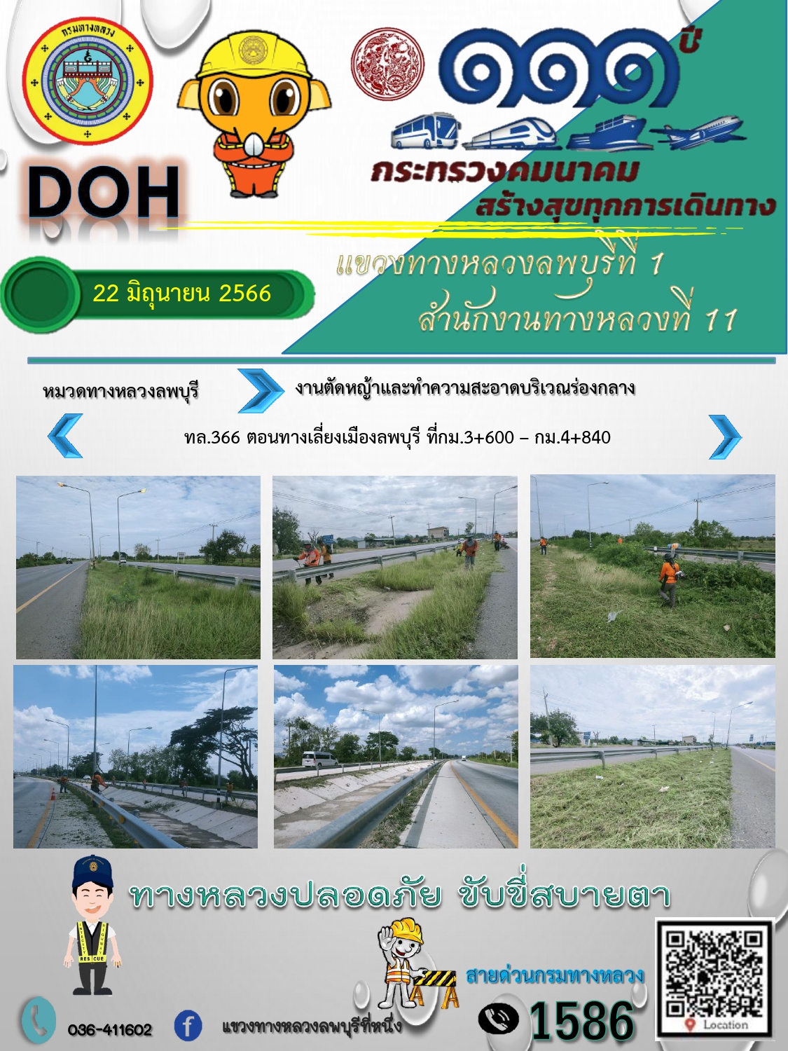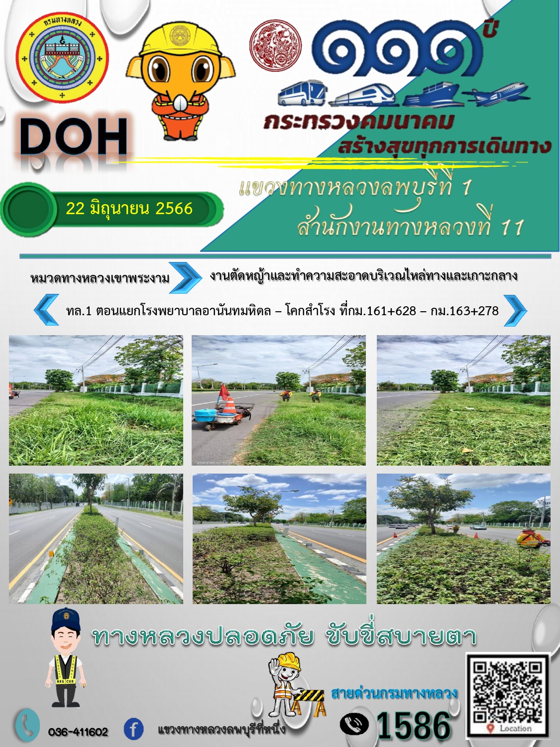 ทางหลวงปลอดภัยขับขี่สบายตา แขวงทางหลวงลพบุรีที่ 1 ประจำวันที่ 21 มิถุนายน 2566
