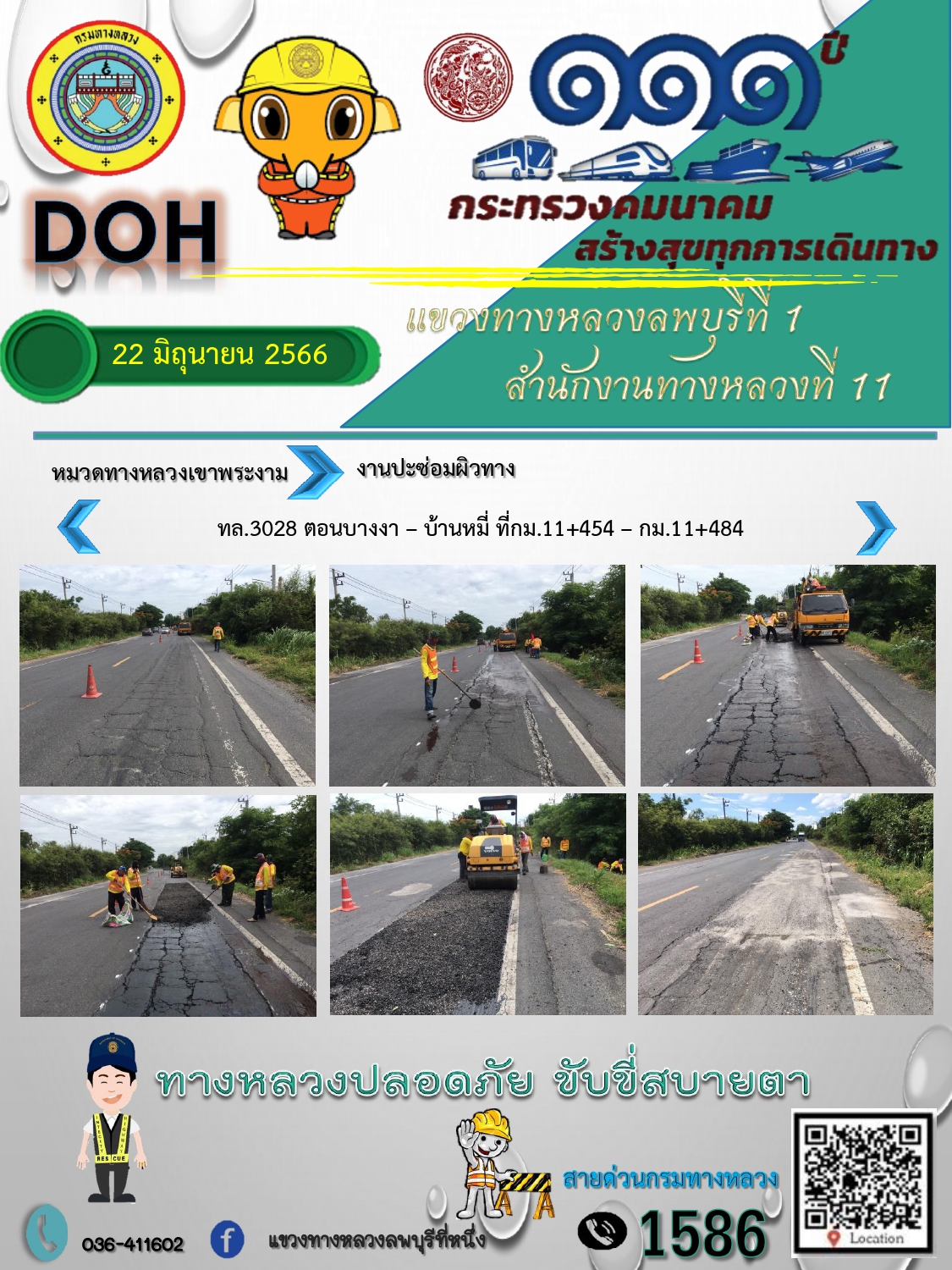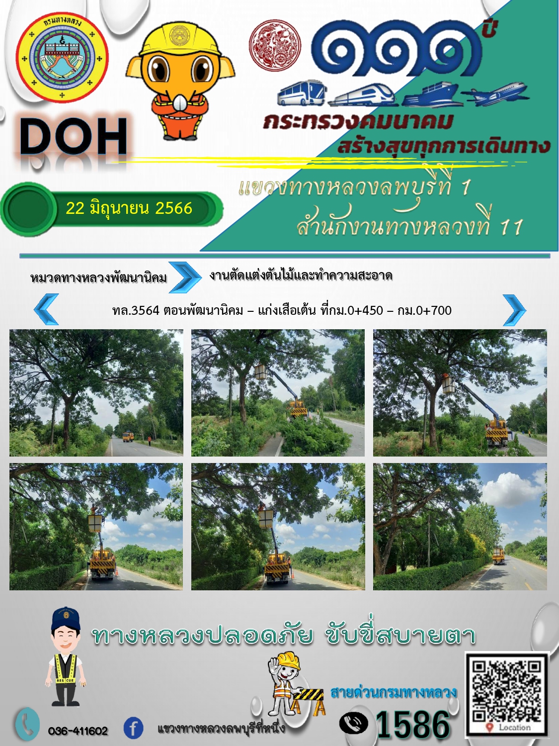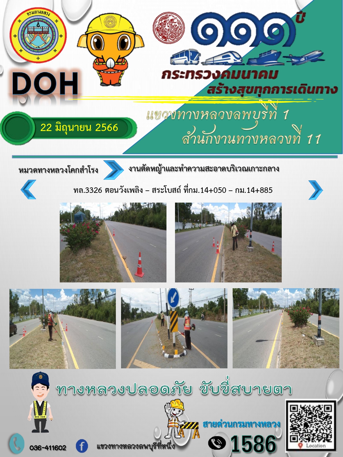 ทางหลวงปลอดภัยขับขี่สบายตา แขวงทางหลวงลพบุรีที่ 1 ประจำวันที่ 21 มิถุนายน 2566