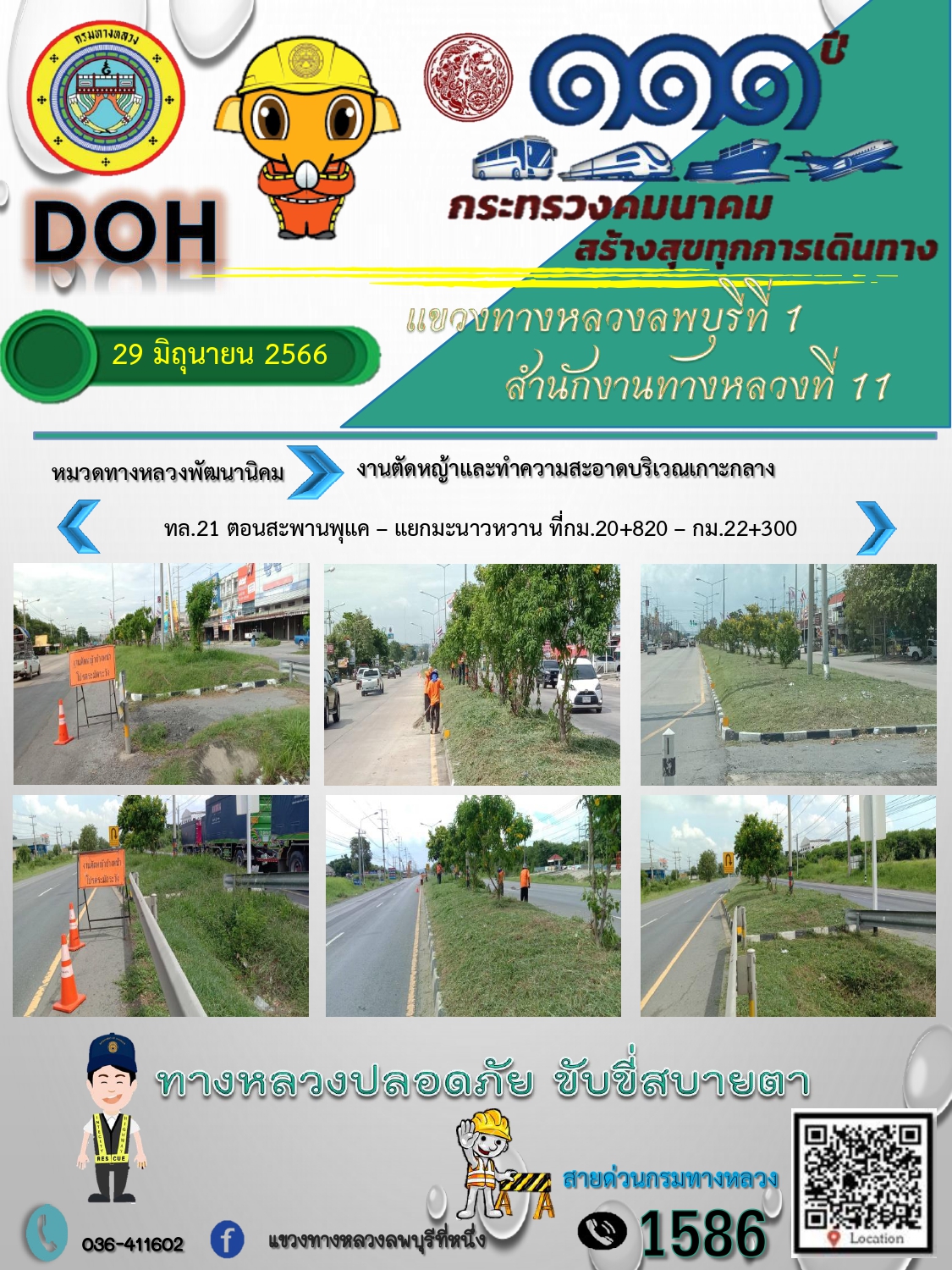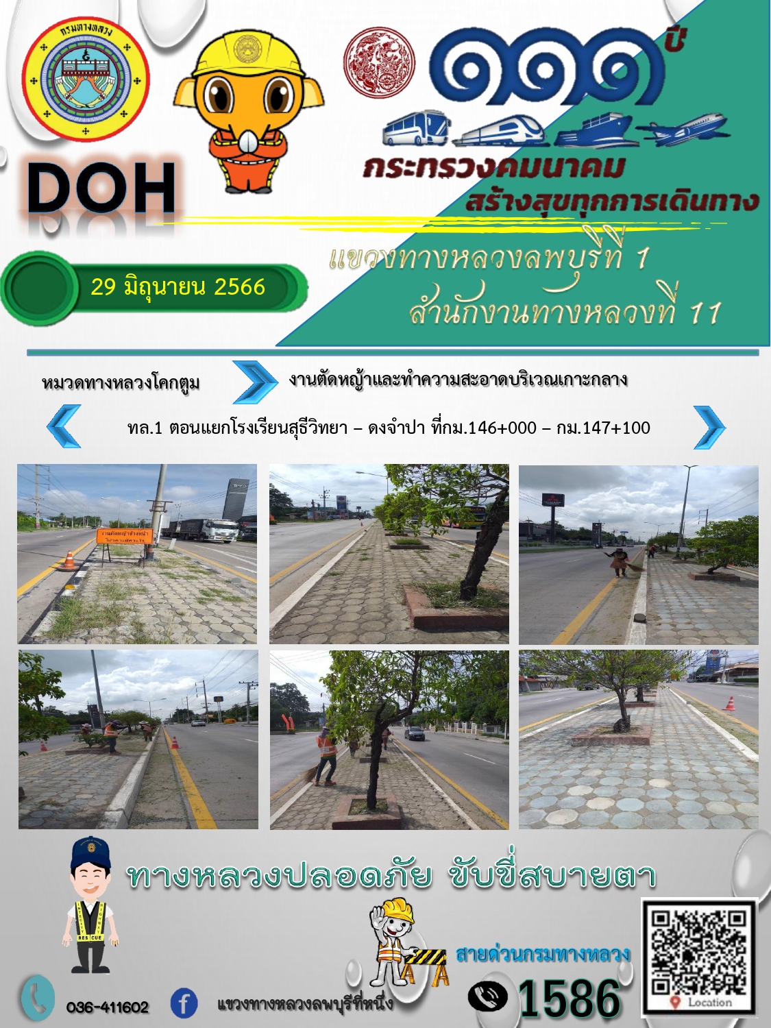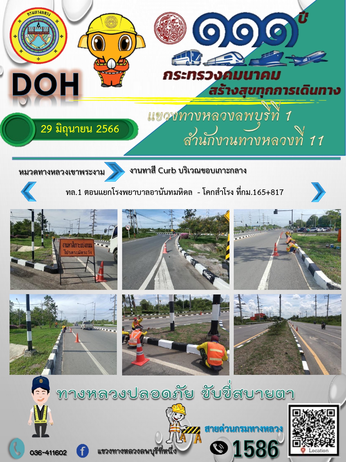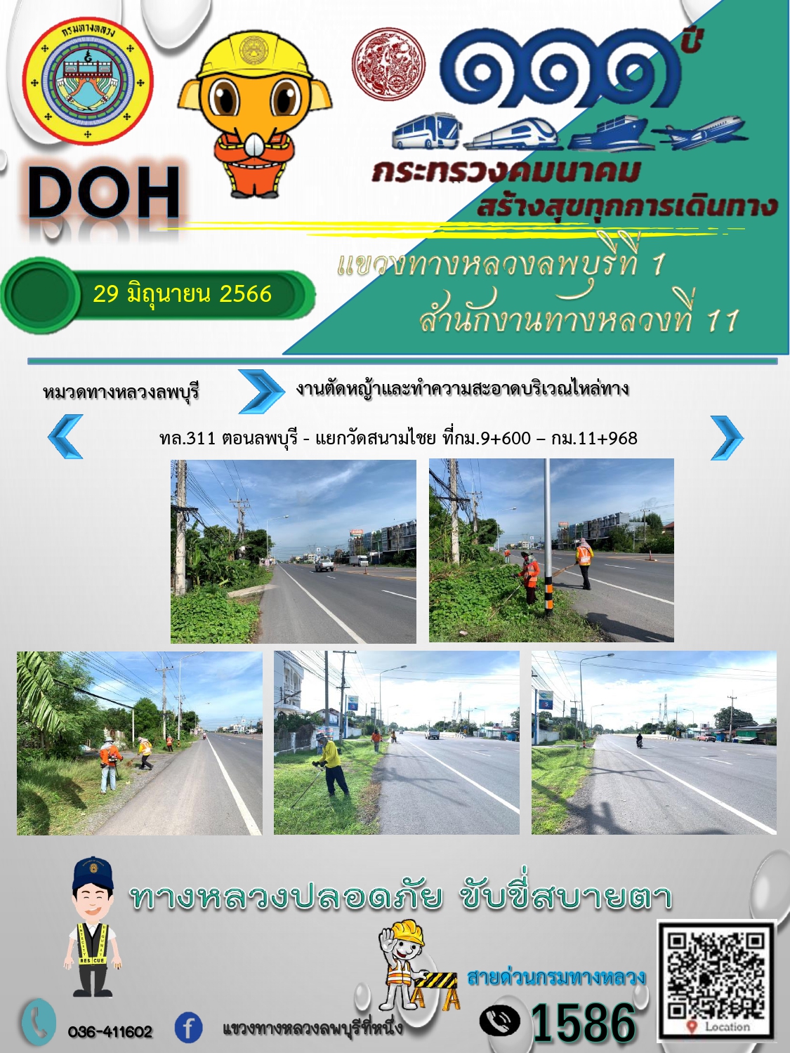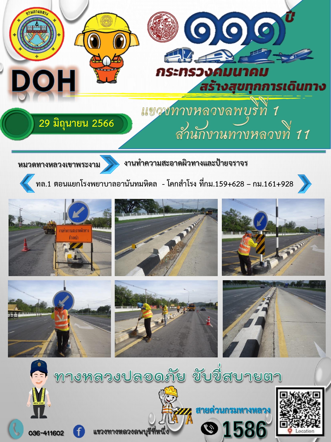 ทางหลวงปลอดภัยขับขี่สบายตา แขวงทางหลวงลพบุรีที่ 1 ประจำวันที่ 29 มิถุนายน 2566