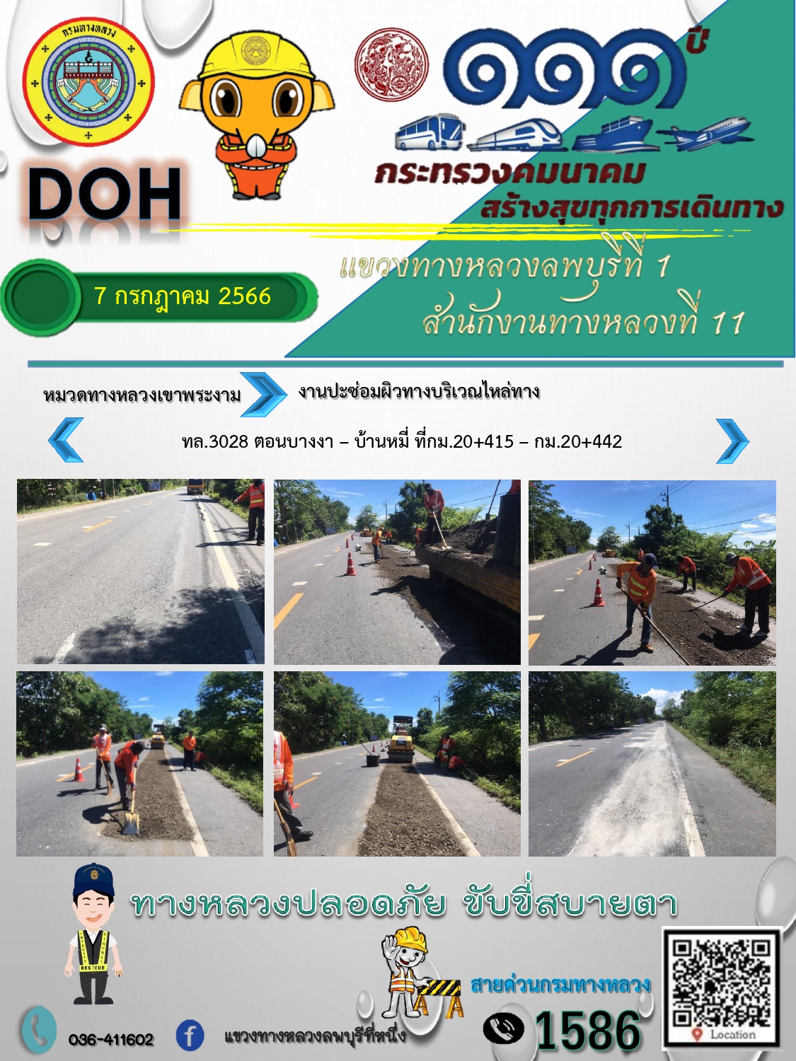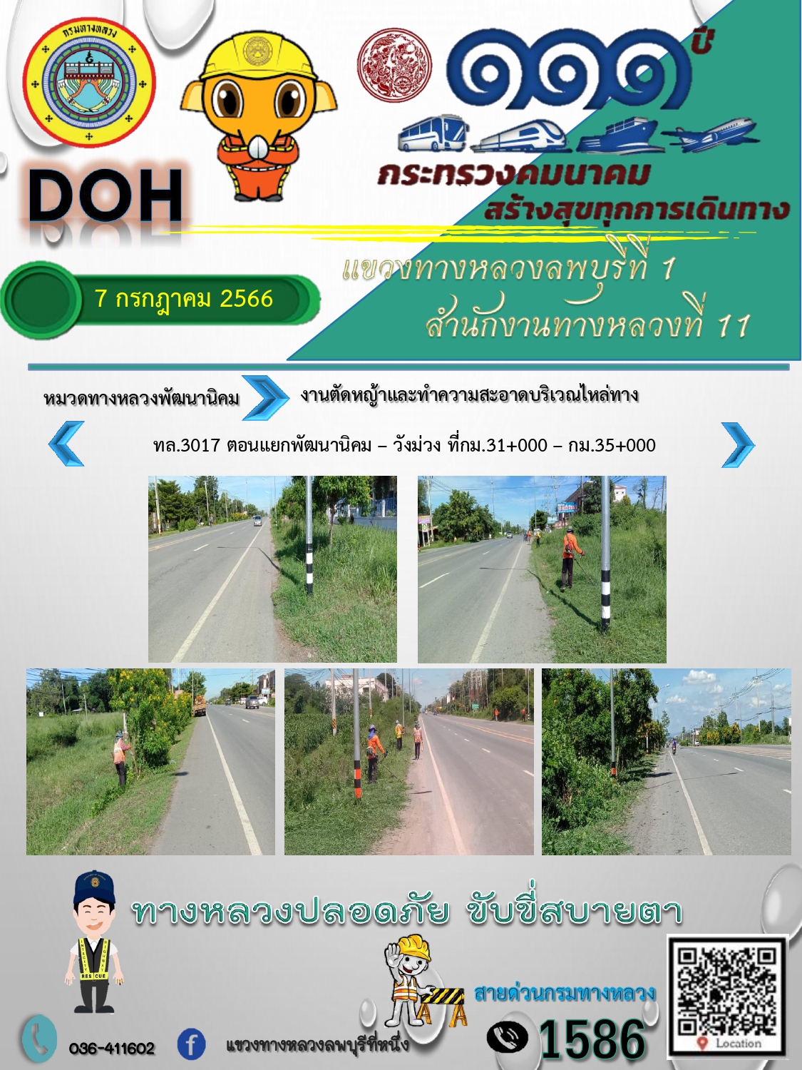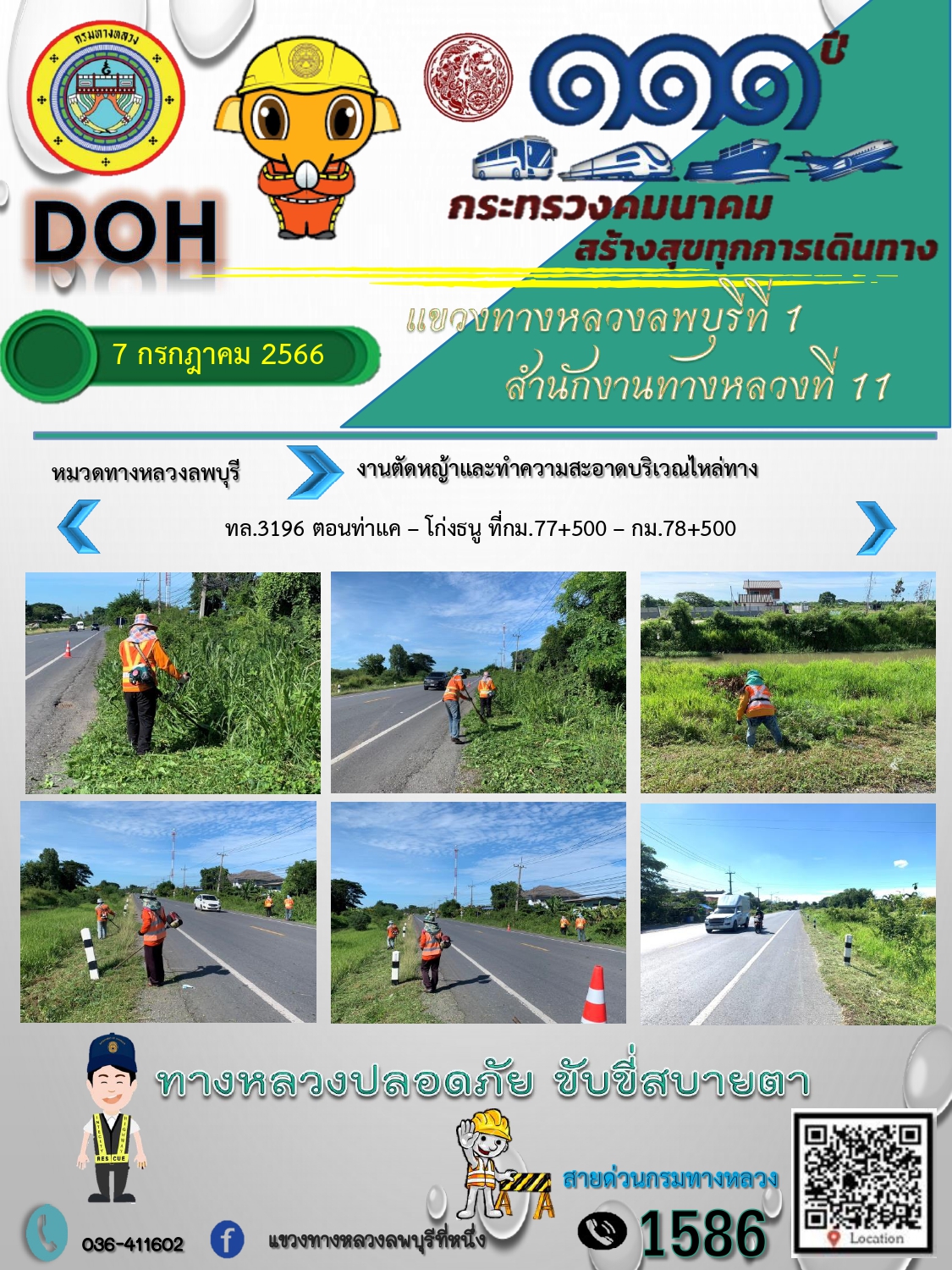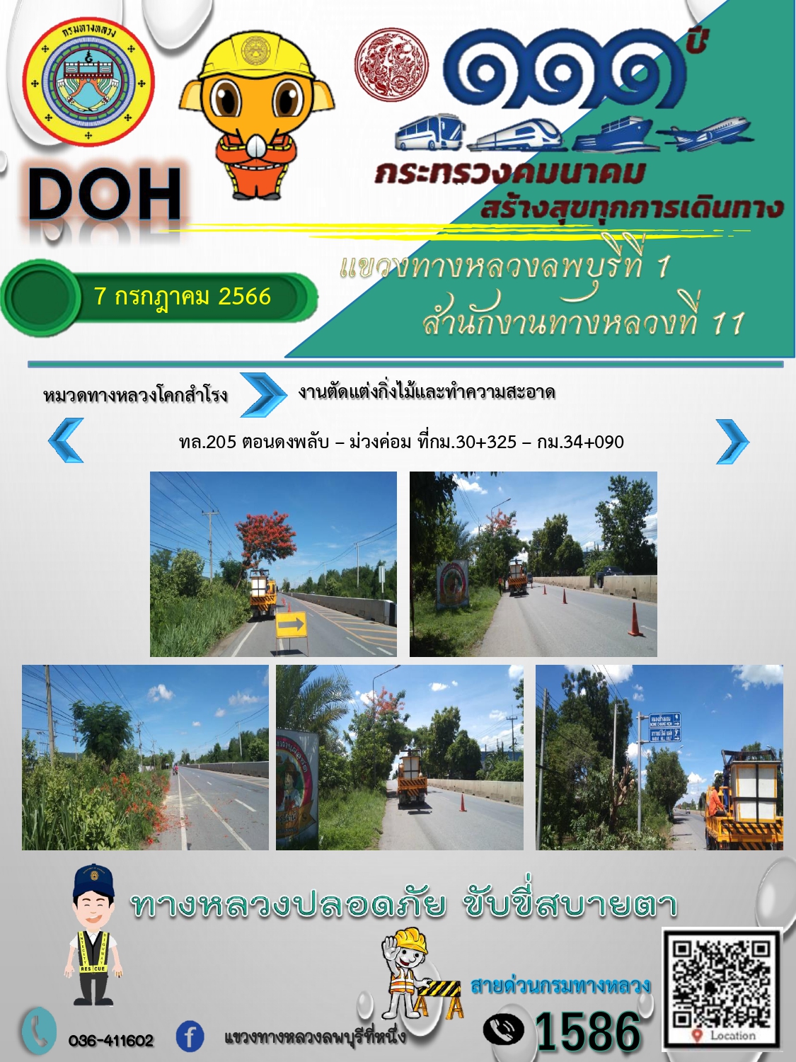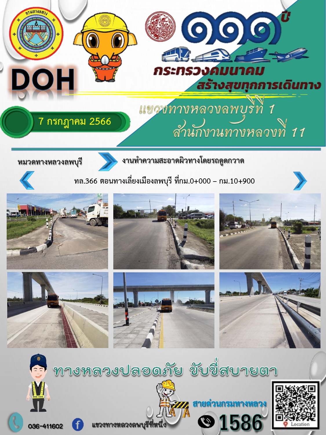 ทางหลวงปลอดภัยขับขี่สบายตา แขวงทางหลวงลพบุรีที่ 1 ประจำวันที่ 7 กรกฎาคม 2566