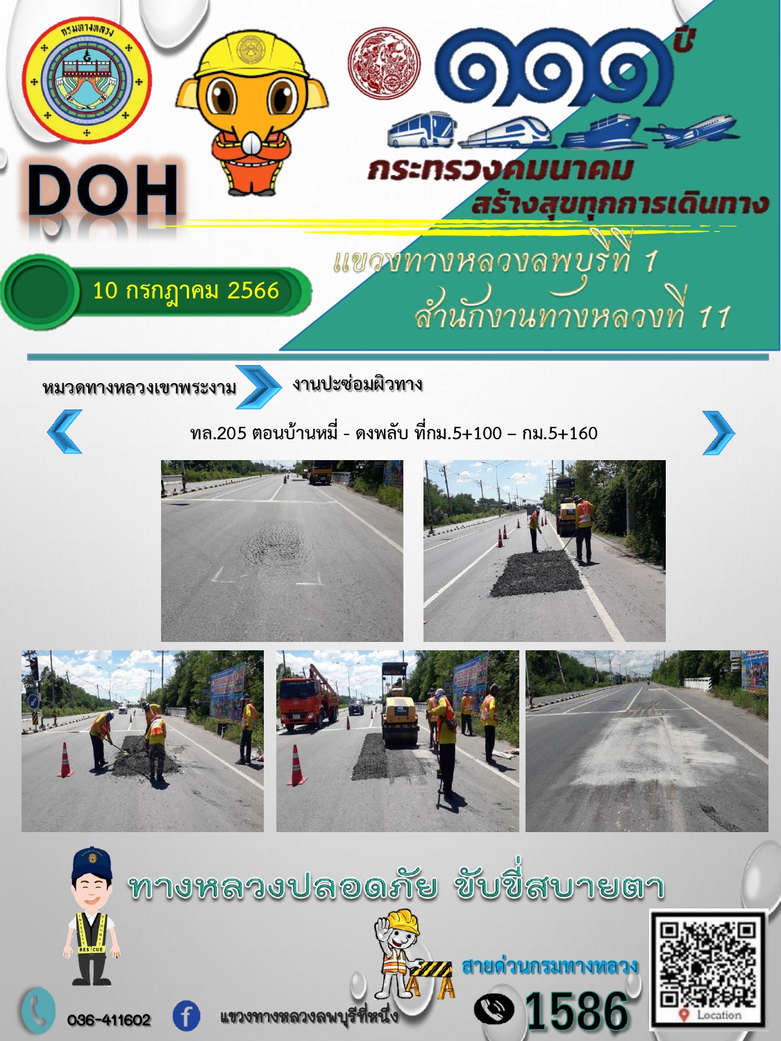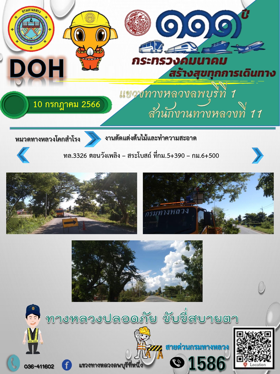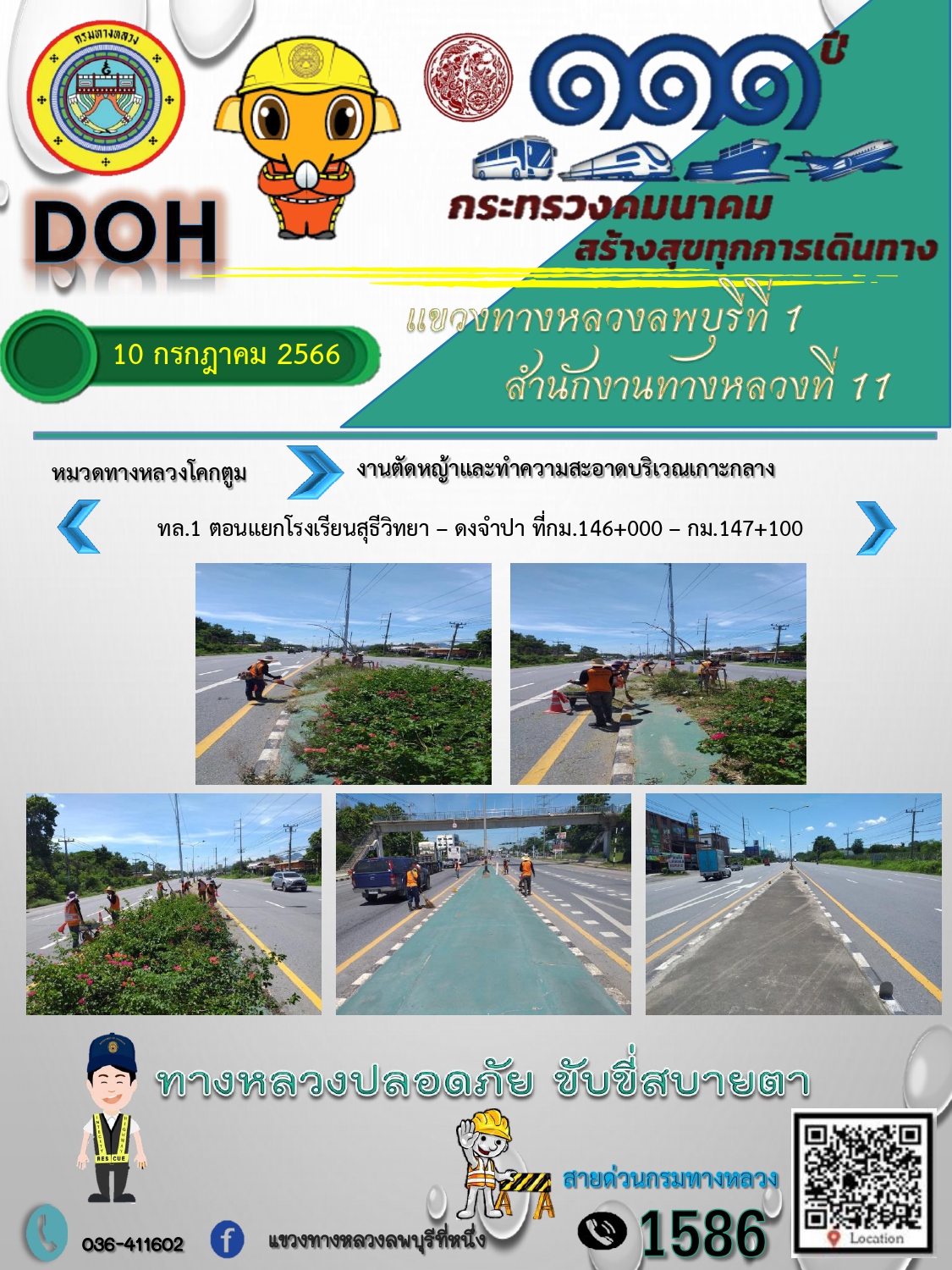 ทางหลวงปลอดภัยขับขี่สบายตา แขวงทางหลวงลพบุรีที่ 1 ประจำวันที่ 10 กรกฎาคม 2566
