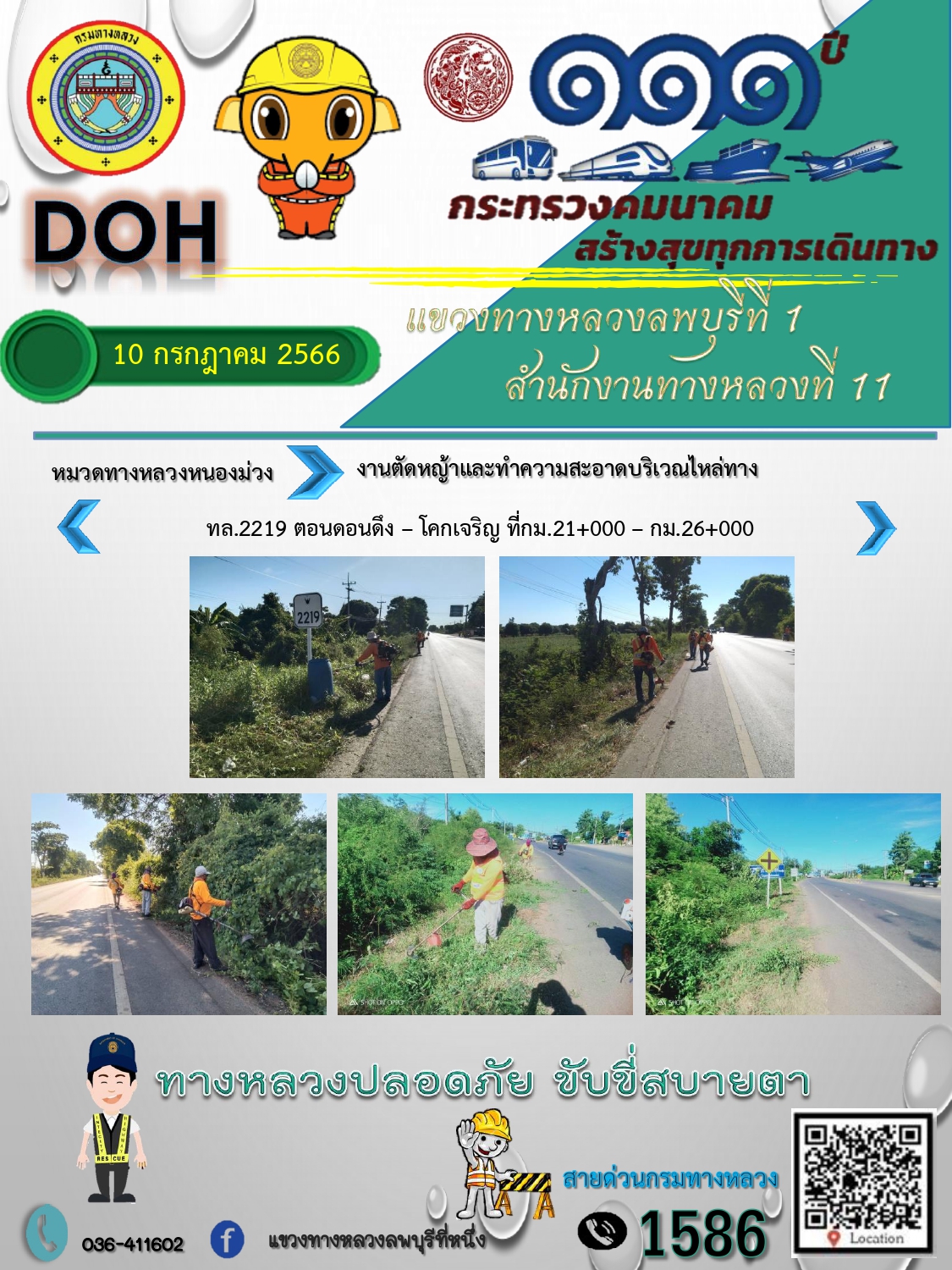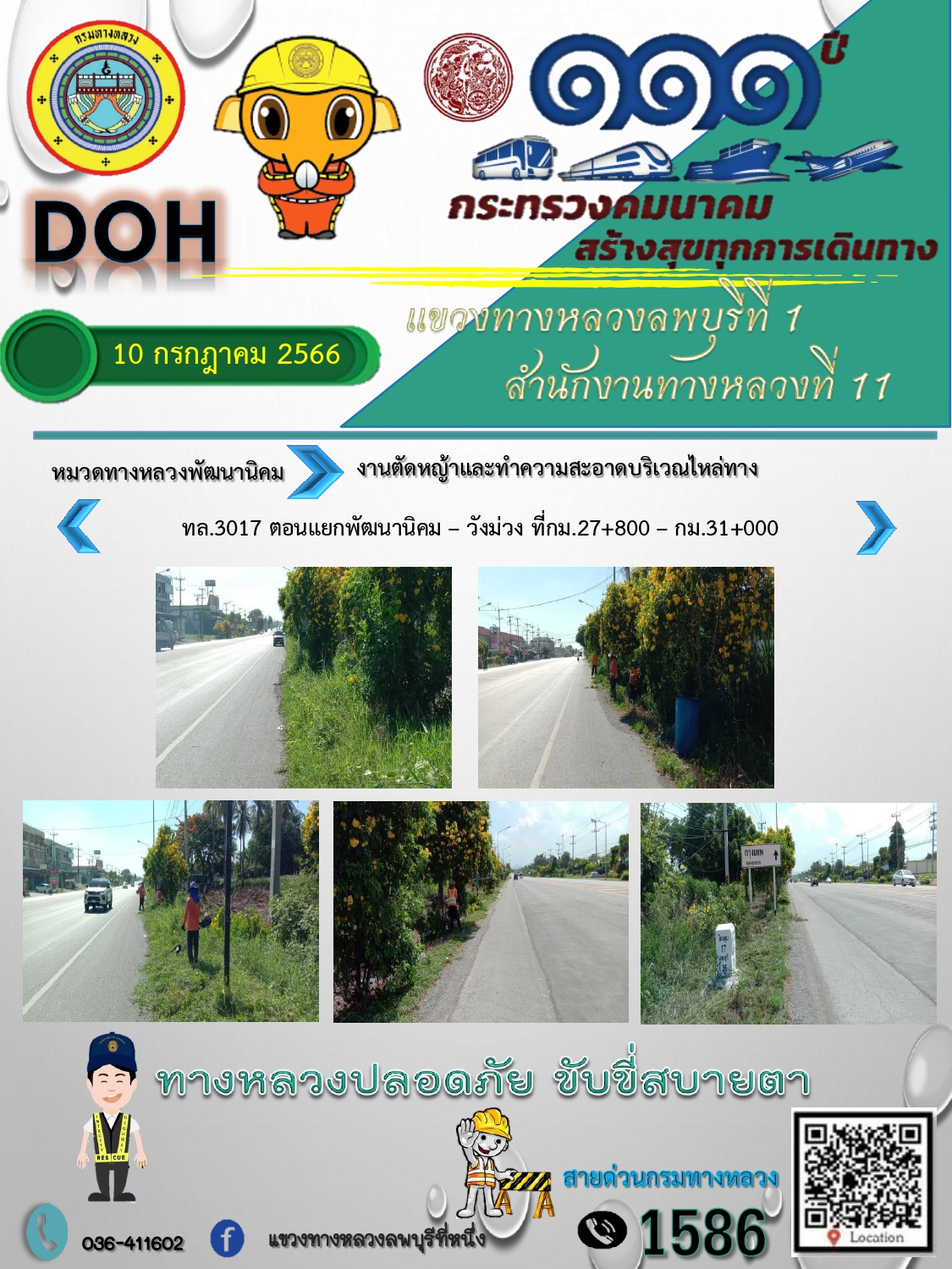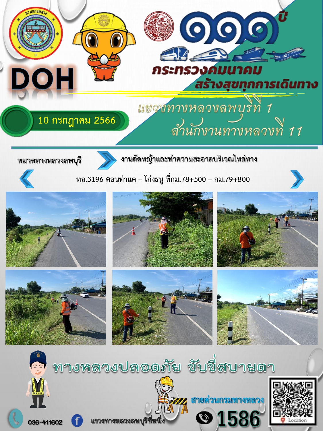 ทางหลวงปลอดภัยขับขี่สบายตา แขวงทางหลวงลพบุรีที่ 1 ประจำวันที่ 10 กรกฎาคม 2566