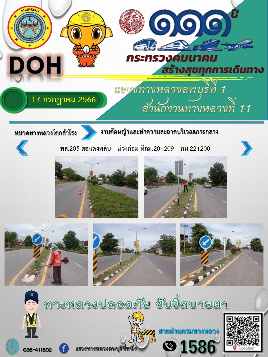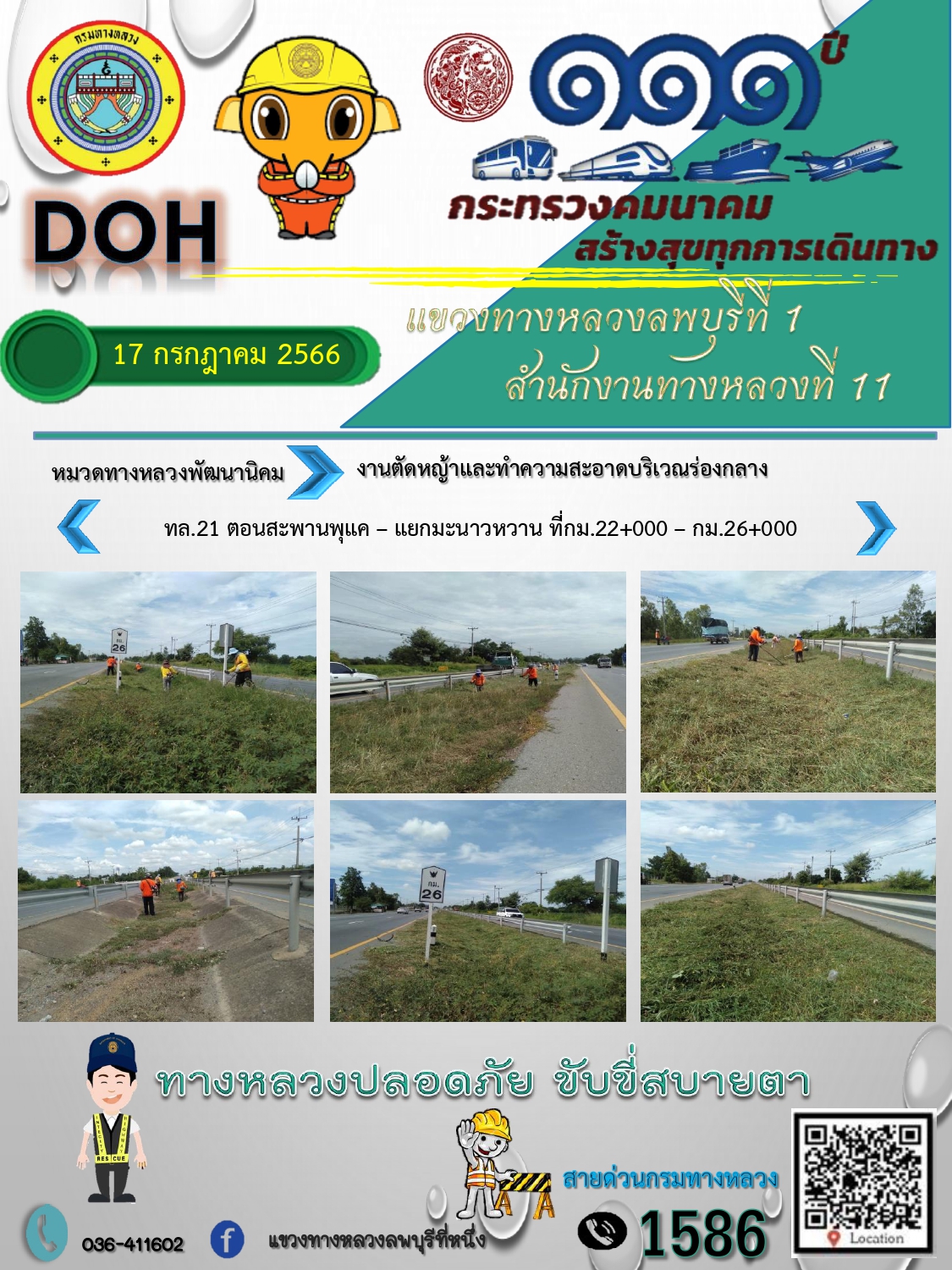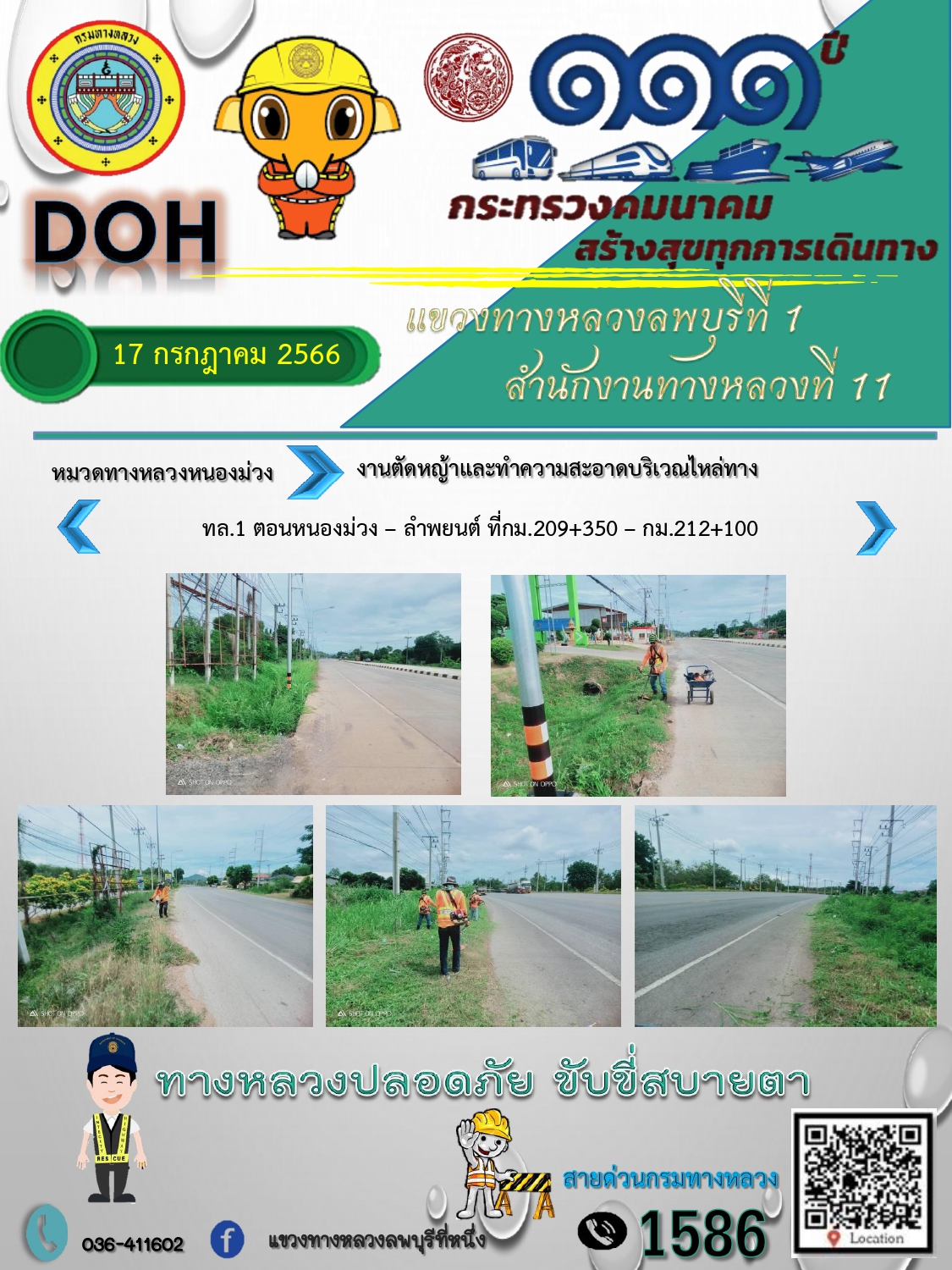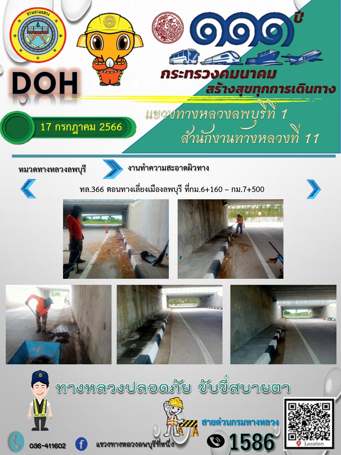 ทางหลวงปลอดภัยขับขี่สบายตา แขวงทางหลวงลพบุรีที่ 1 ประจำวันที่ 17 กรกฎาคม 2566