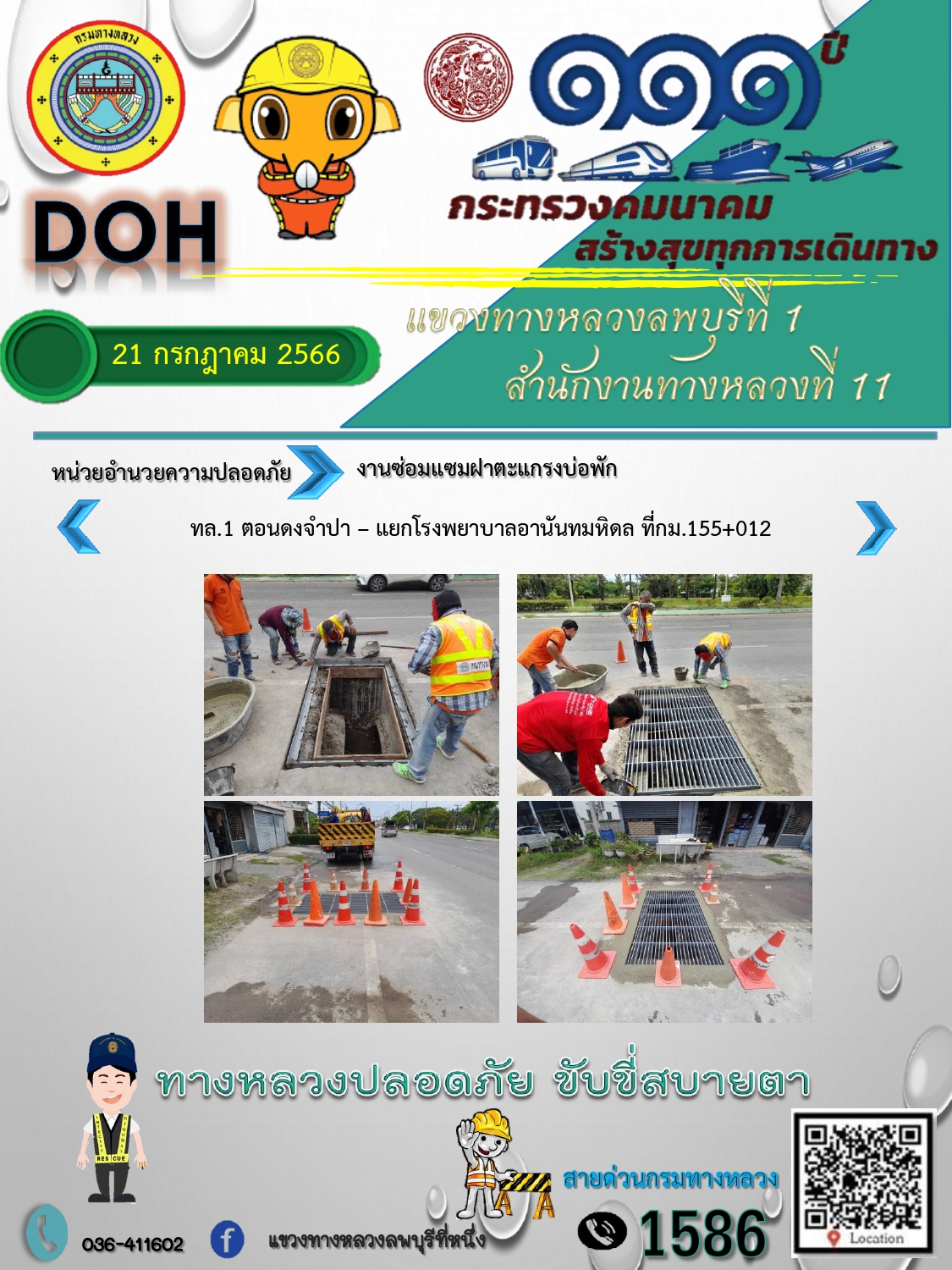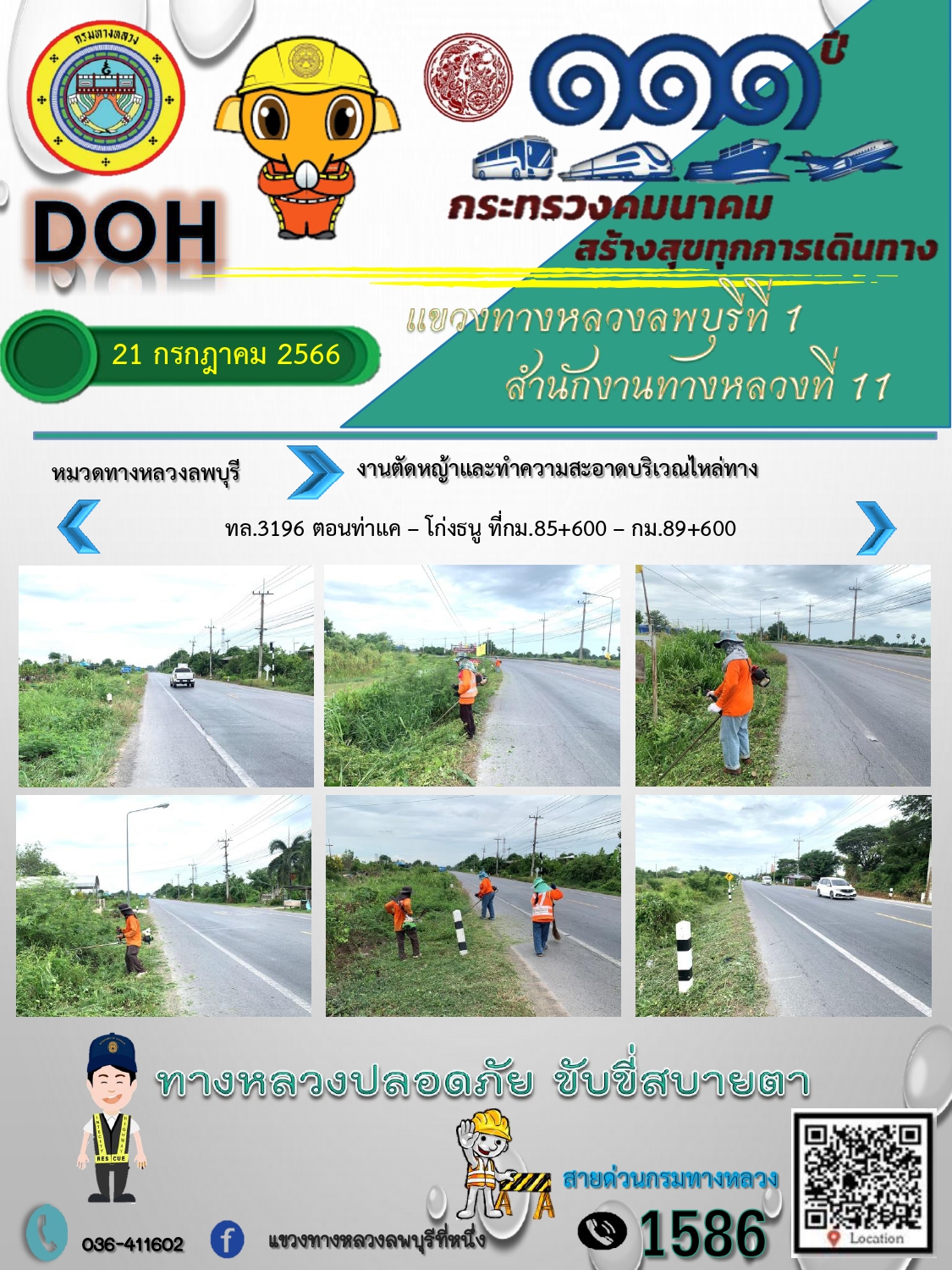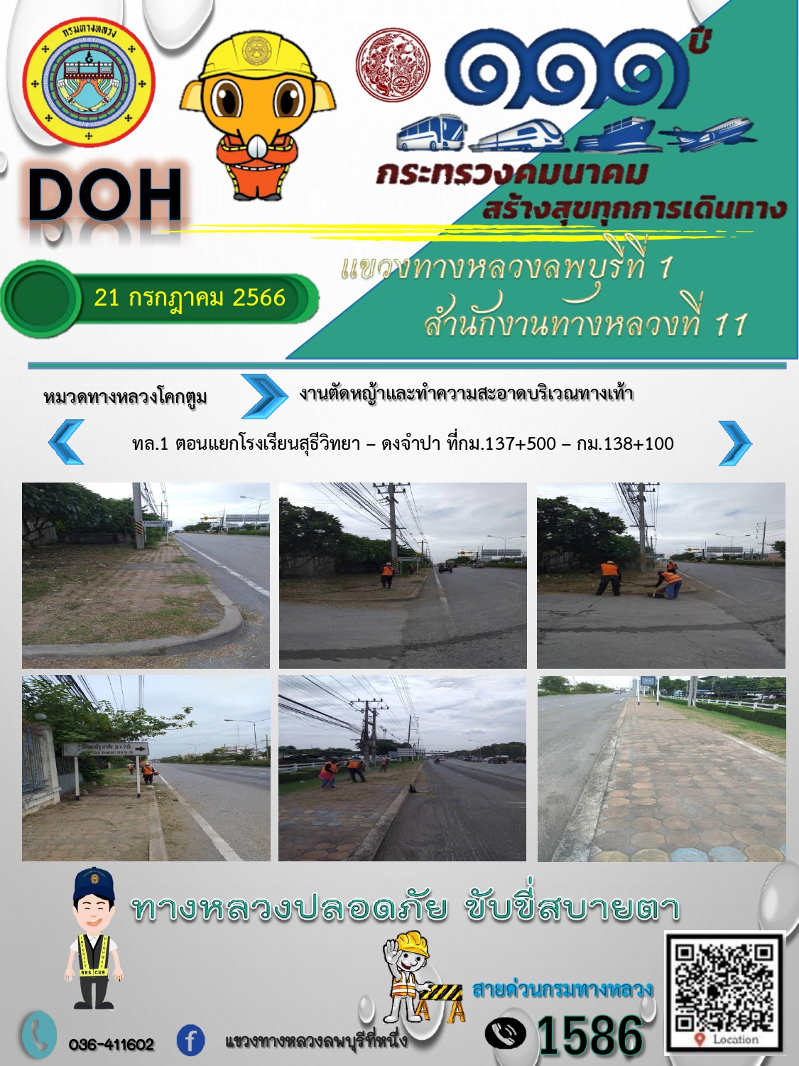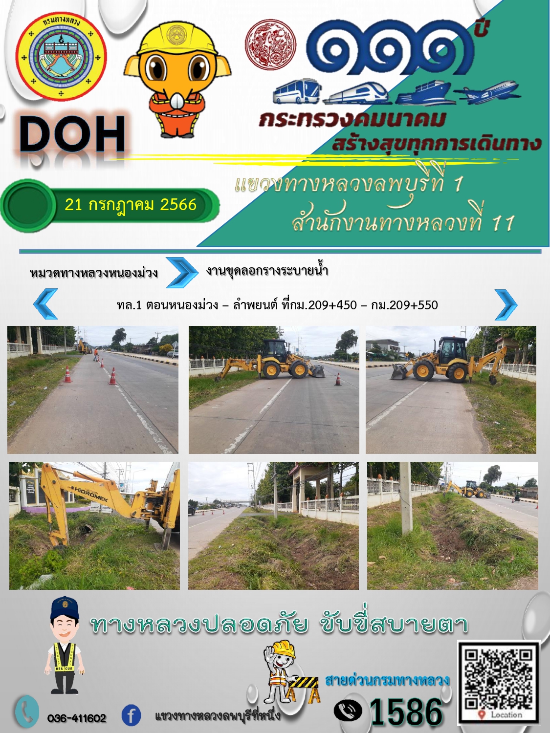 ทางหลวงปลอดภัยขับขี่สบายตา แขวงทางหลวงลพบุรีที่ 1 ประจำวันที่ 21 กรกฎาคม 2566