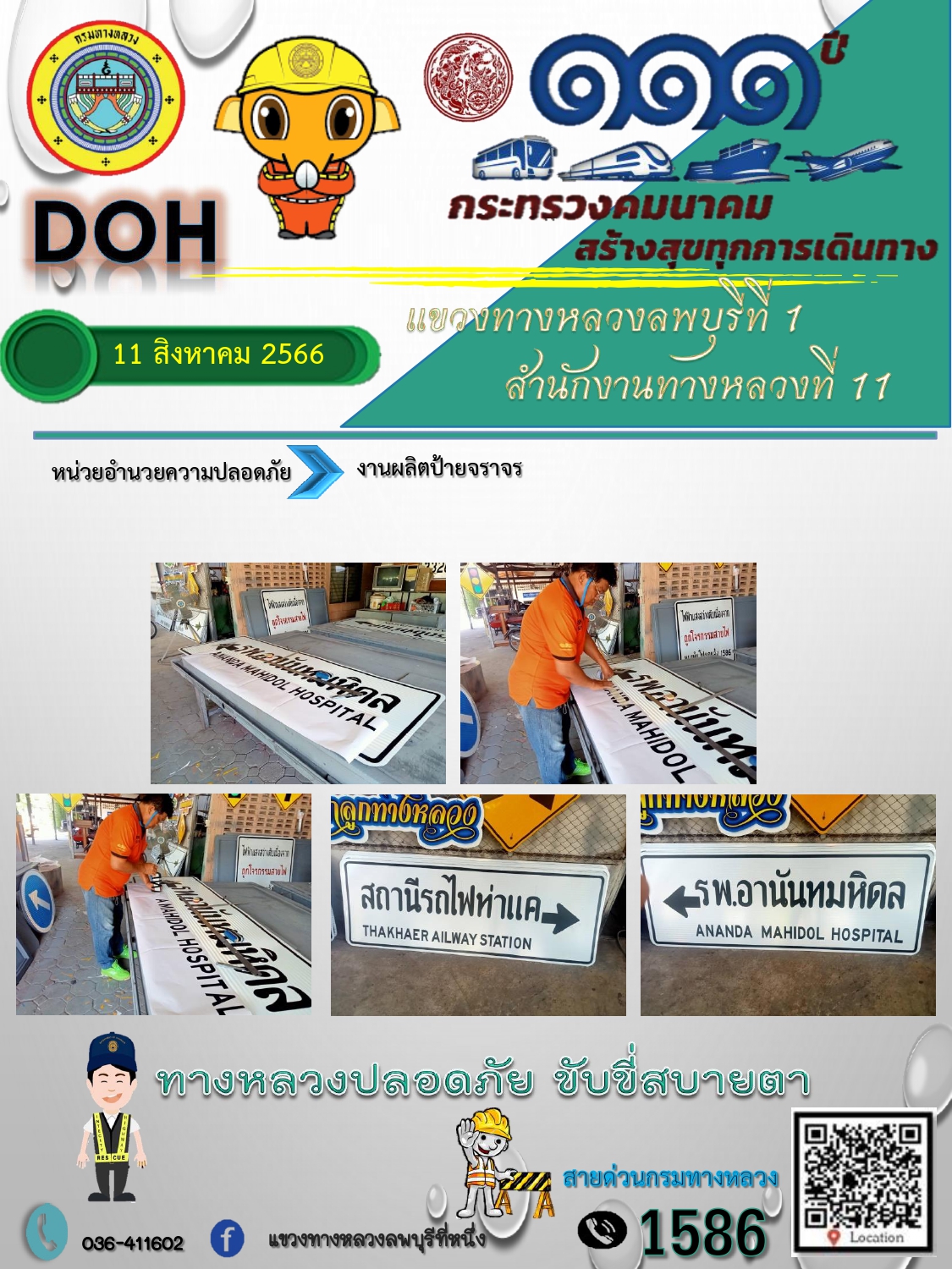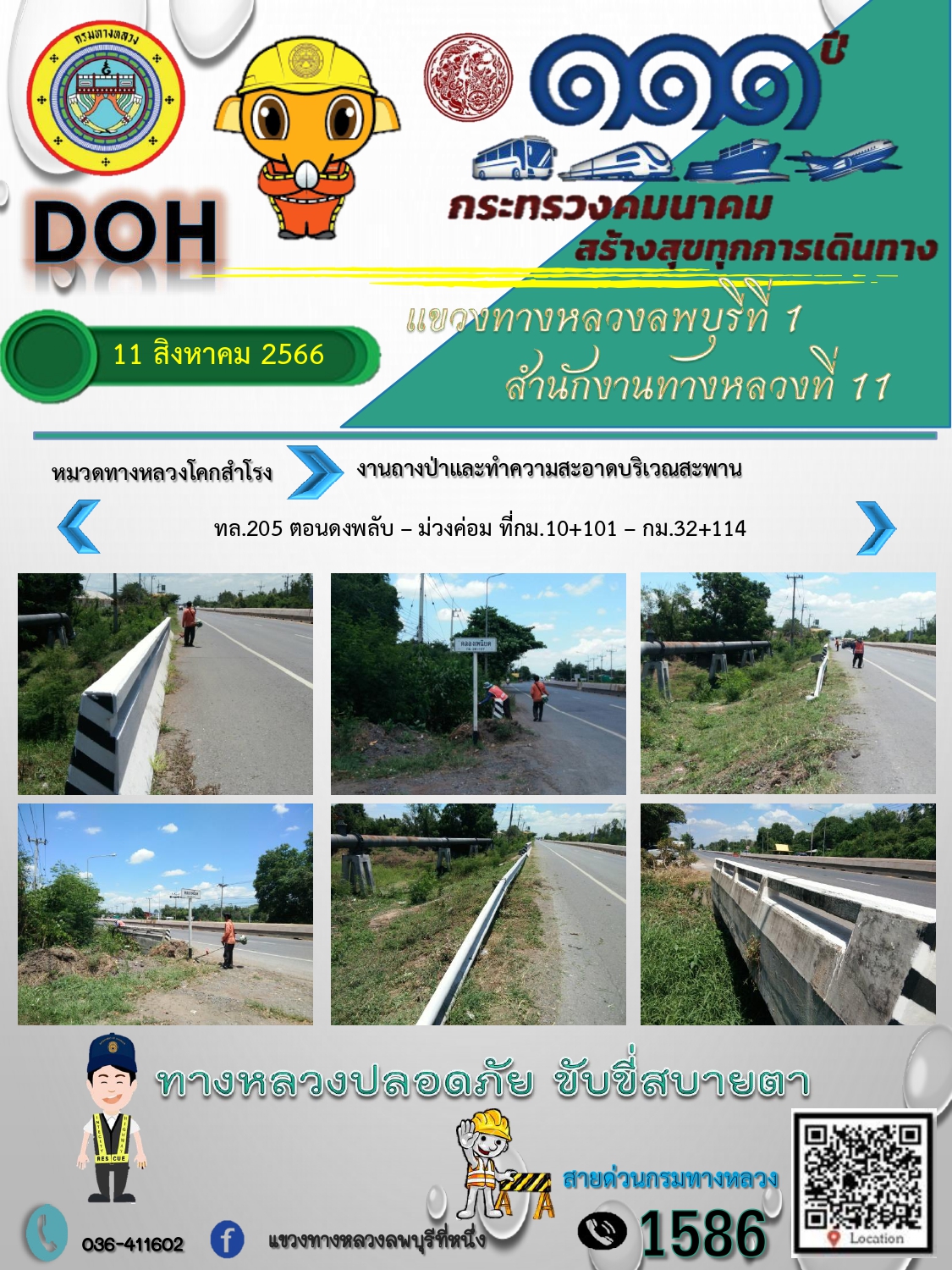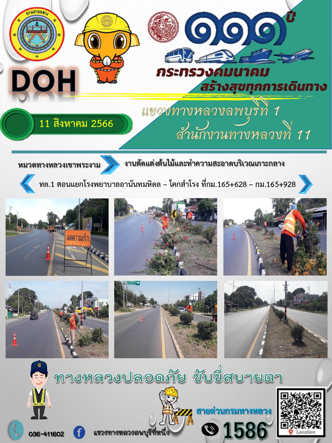 ทางหลวงปลอดภัยขับขี่สบายตา แขวงทางหลวงลพบุรีที่ 1 ประจำวันที่ 11 สิงหาคม 2566