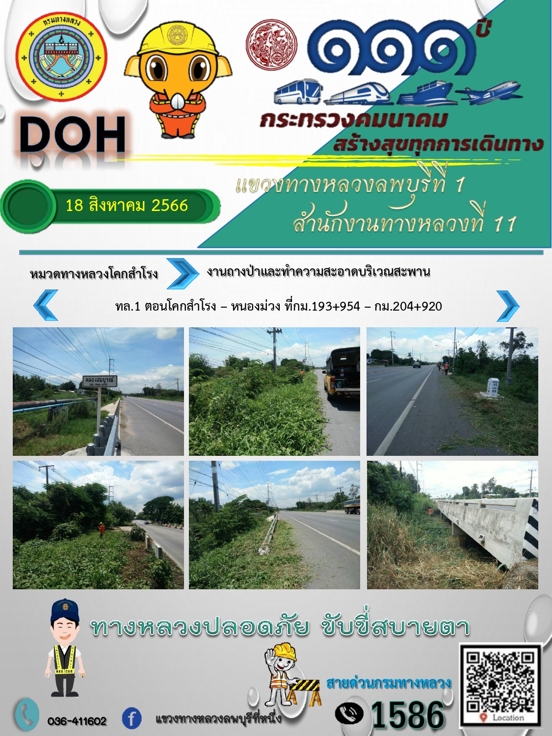 ทางหลวงปลอดภัยขับขี่สบายตา แขวงทางหลวงลพบุรีที่ 1 ประจำวันที่ 18 สิงหาคม 2566