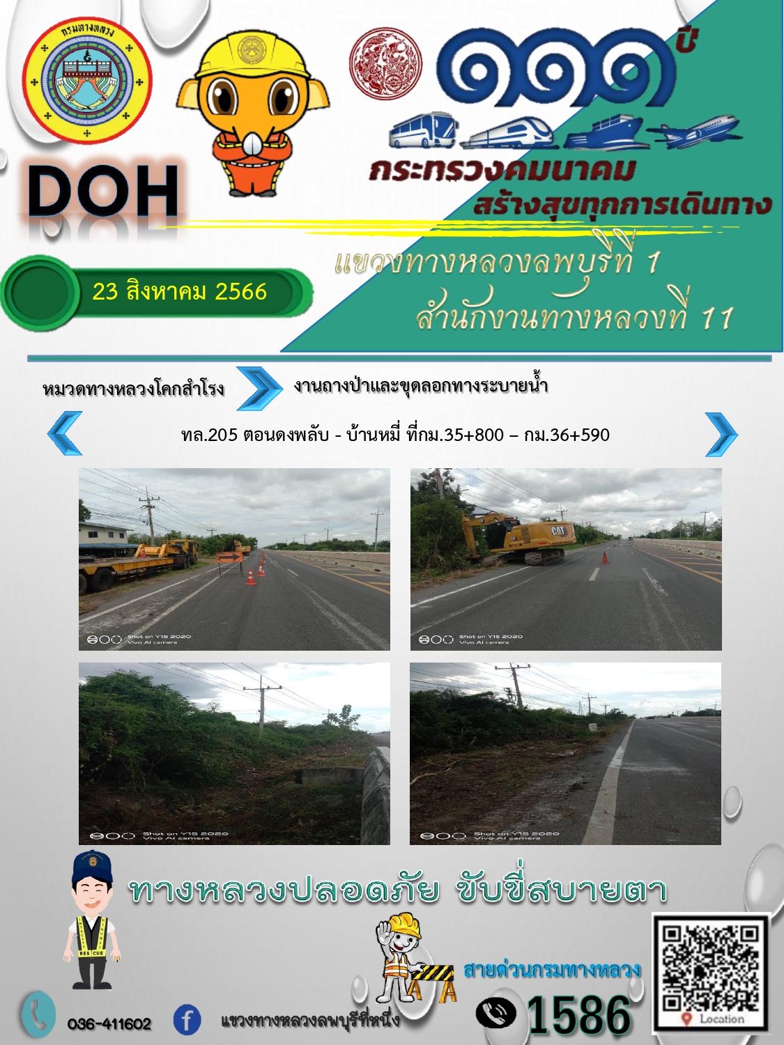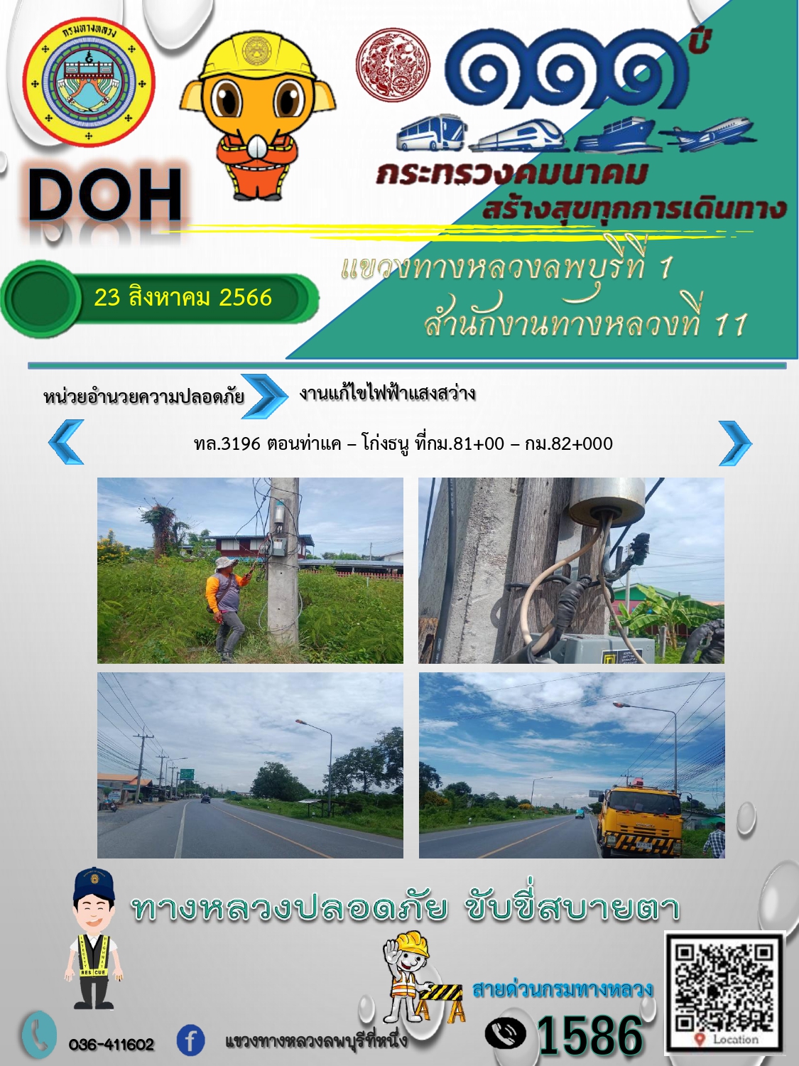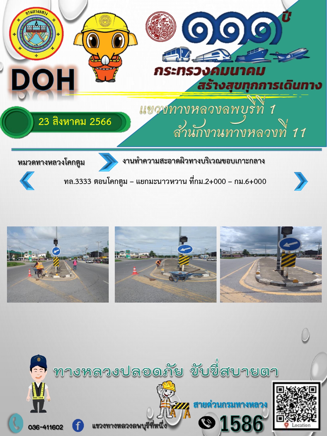 ทางหลวงปลอดภัยขับขี่สบายตา แขวงทางหลวงลพบุรีที่ 1 ประจำวันที่ 23 สิงหาคม 2566