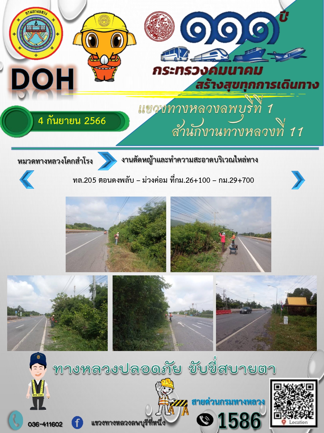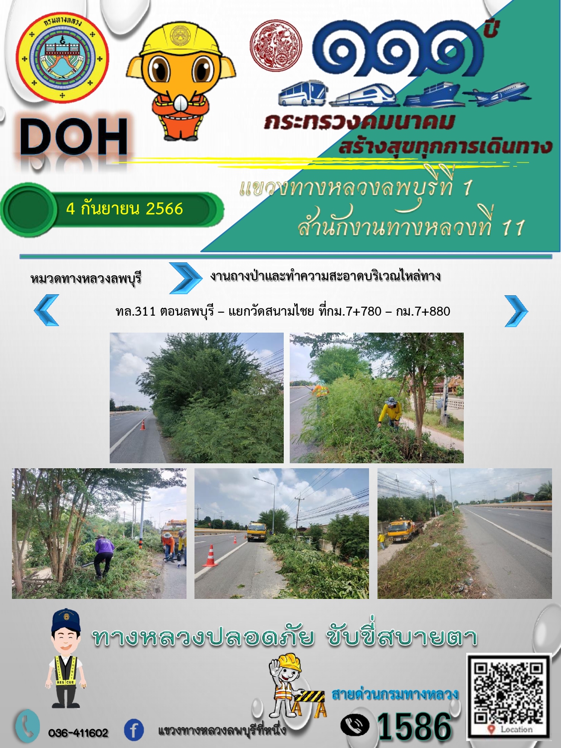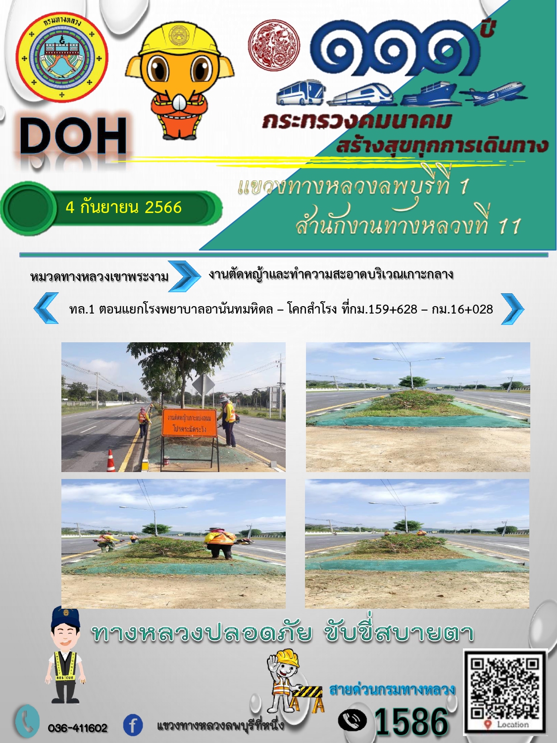 ทางหลวงปลอดภัยขับขี่สบายตา แขวงทางหลวงลพบุรีที่ 1 ประจำวันที่ 4 กันยายน 2566