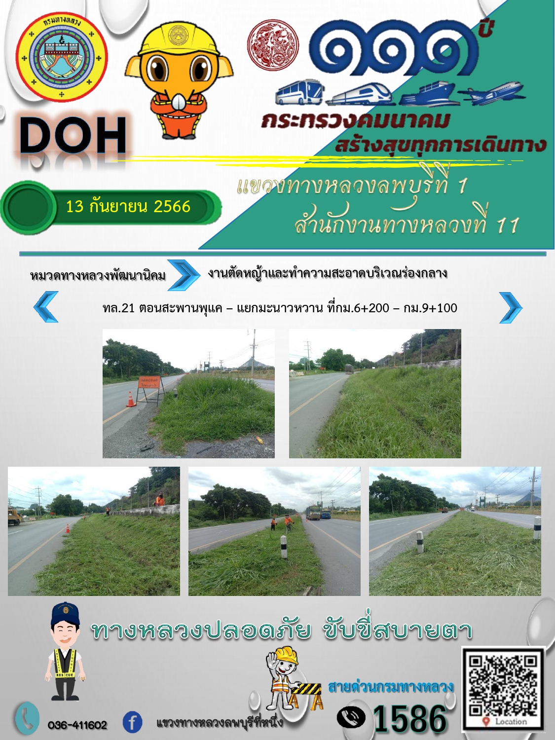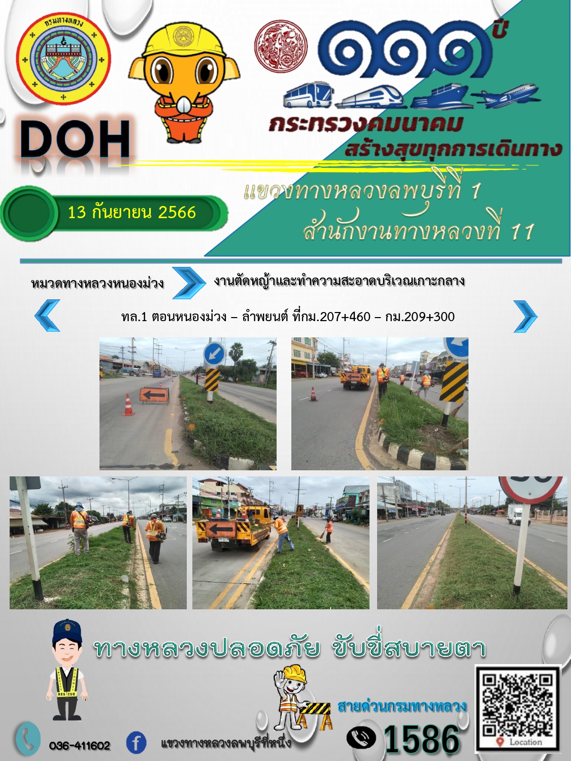 ทางหลวงปลอดภัยขับขี่สบายตา แขวงทางหลวงลพบุรีที่ 1 ประจำวันที่ 13 กันยายน 2566
