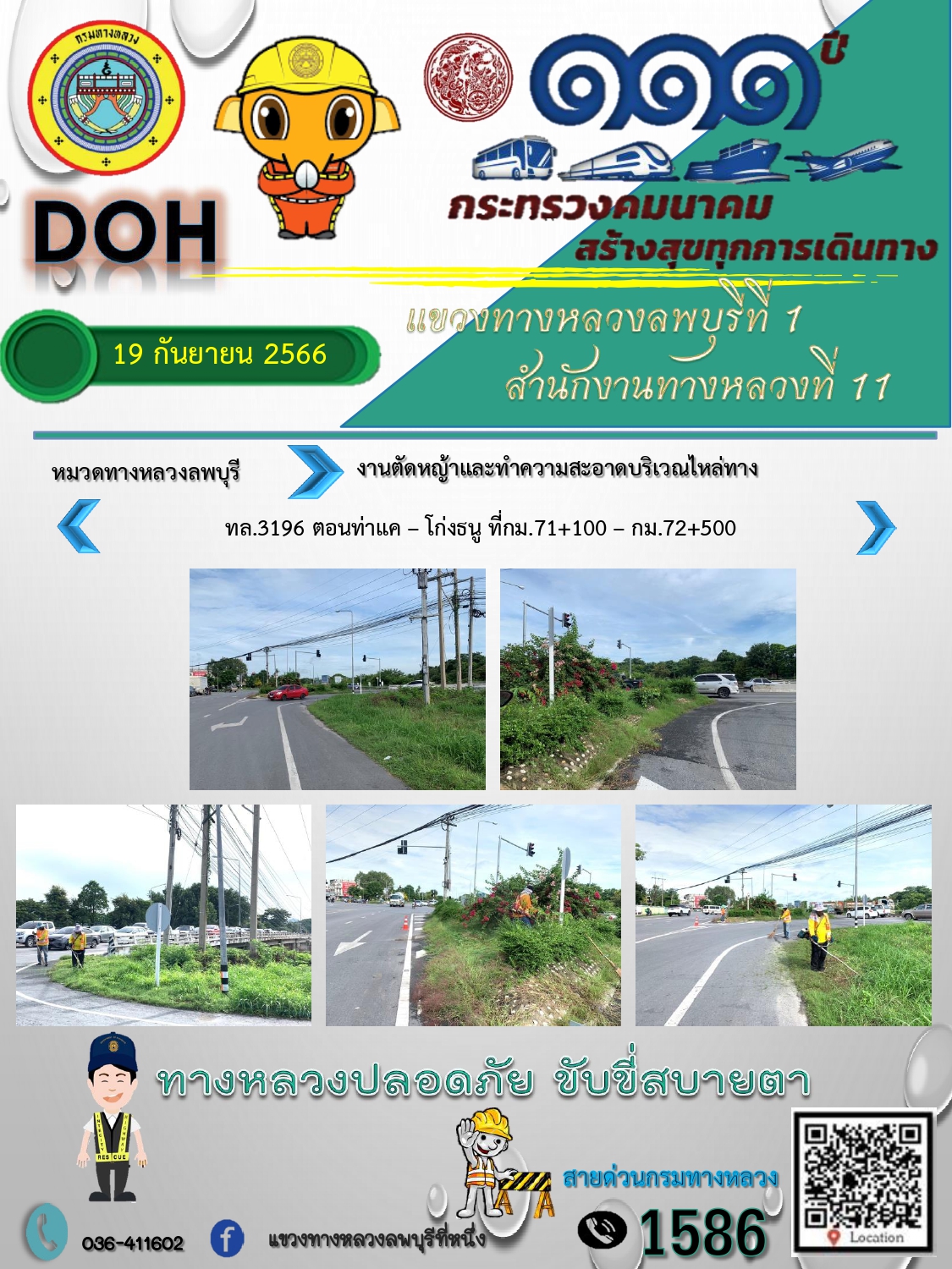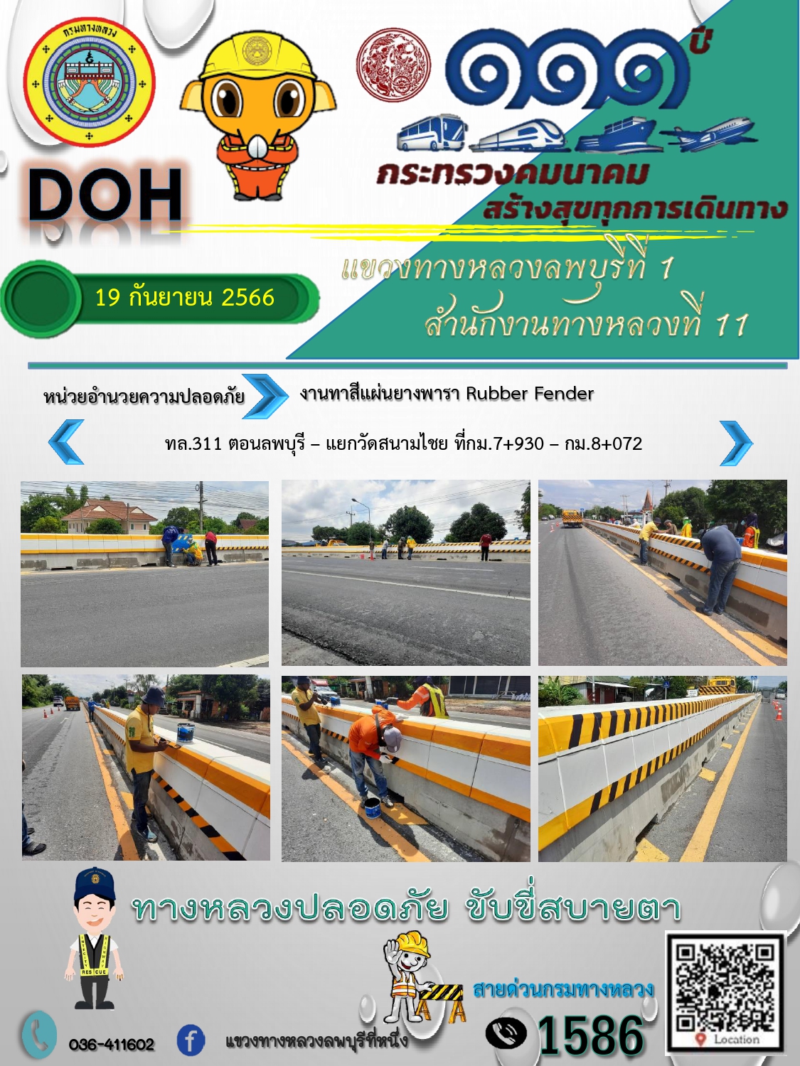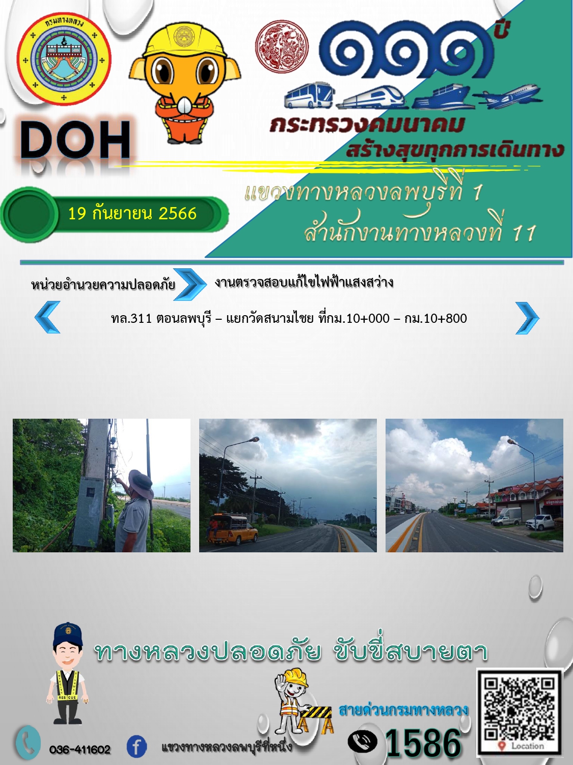 ทางหลวงปลอดภัยขับขี่สบายตา แขวงทางหลวงลพบุรีที่ 1 ประจำวันที่ 19 กันยายน 2566