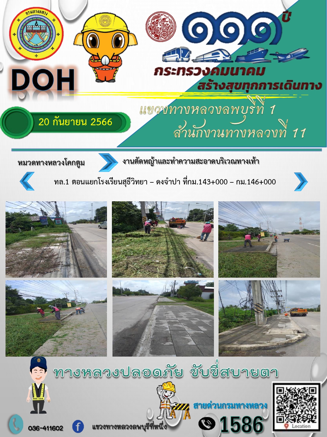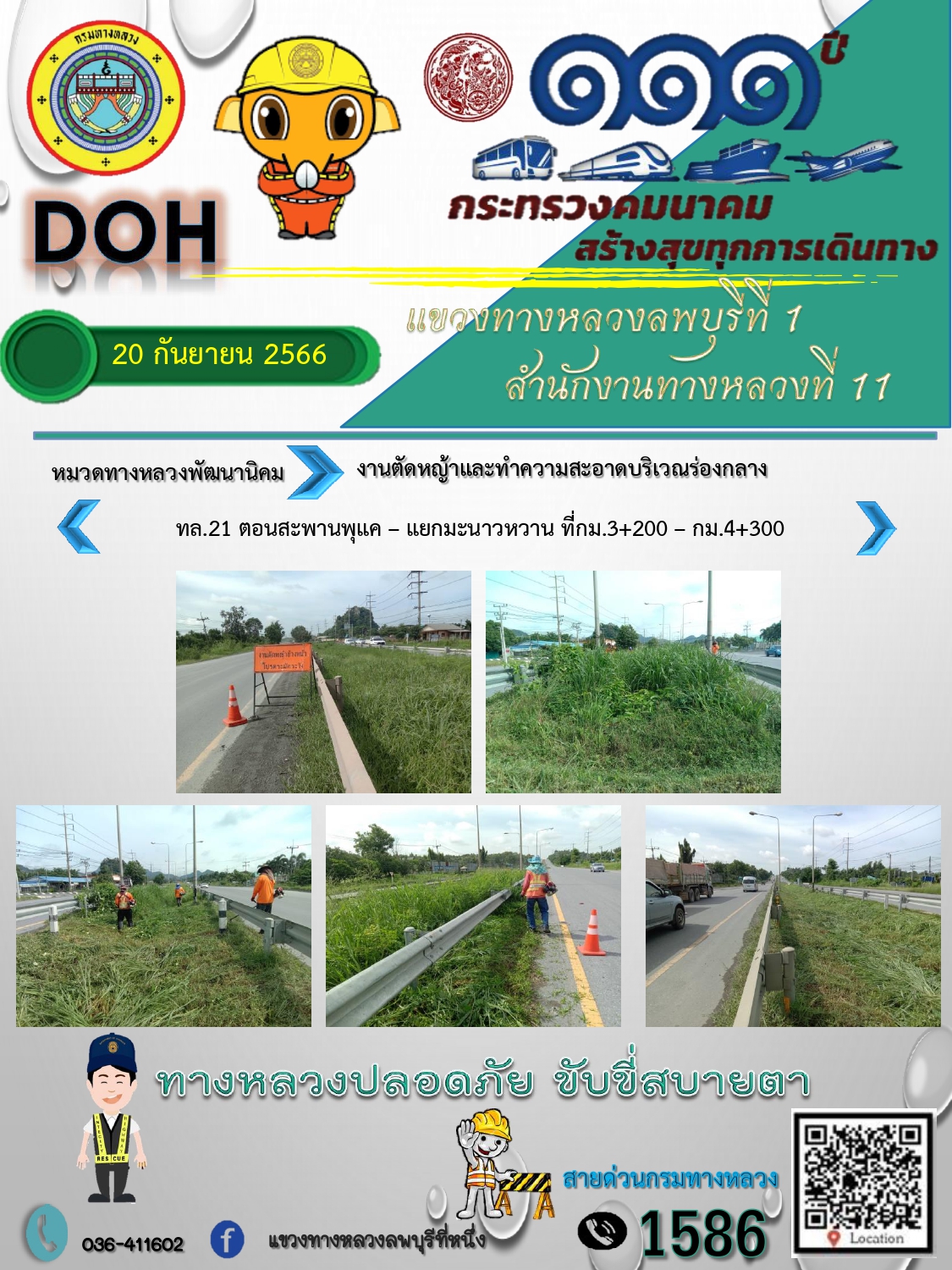 ทางหลวงปลอดภัยขับขี่สบายตา แขวงทางหลวงลพบุรีที่ 1 ประจำวันที่ 20 กันยายน 2566