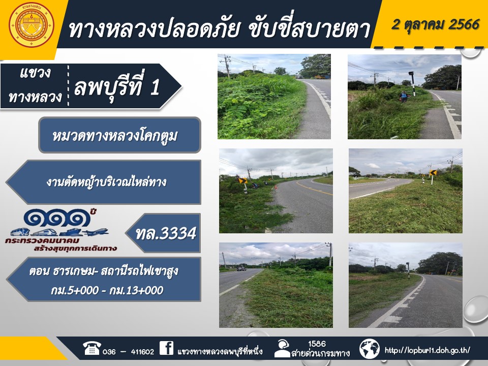 ทางหลวงปลอดภัยขับขี่สบายตา แขวงทางหลวงลพบุรีที่ 1 ประจำวันที่ 2 ตุลาคม 2566