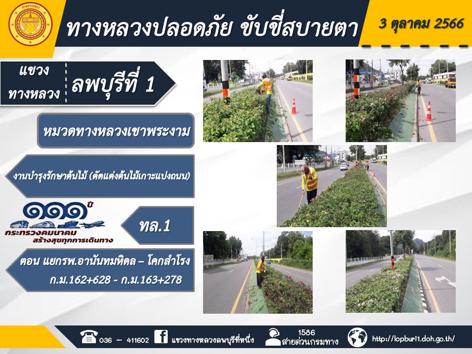 ทางหลวงปลอดภัยขับขี่สบายตา แขวงทางหลวงลพบุรีที่ 1 ประจำวันที่ 3 ตุลาคม 2566