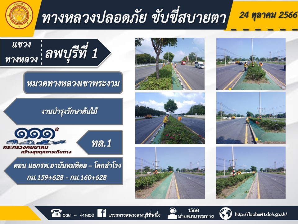 ทางหลวงปลอดภัยขับขี่สบายตา แขวงทางหลวงลพบุรีที่ 1 ประจำวันที่ 24 ตุลาคม 2566