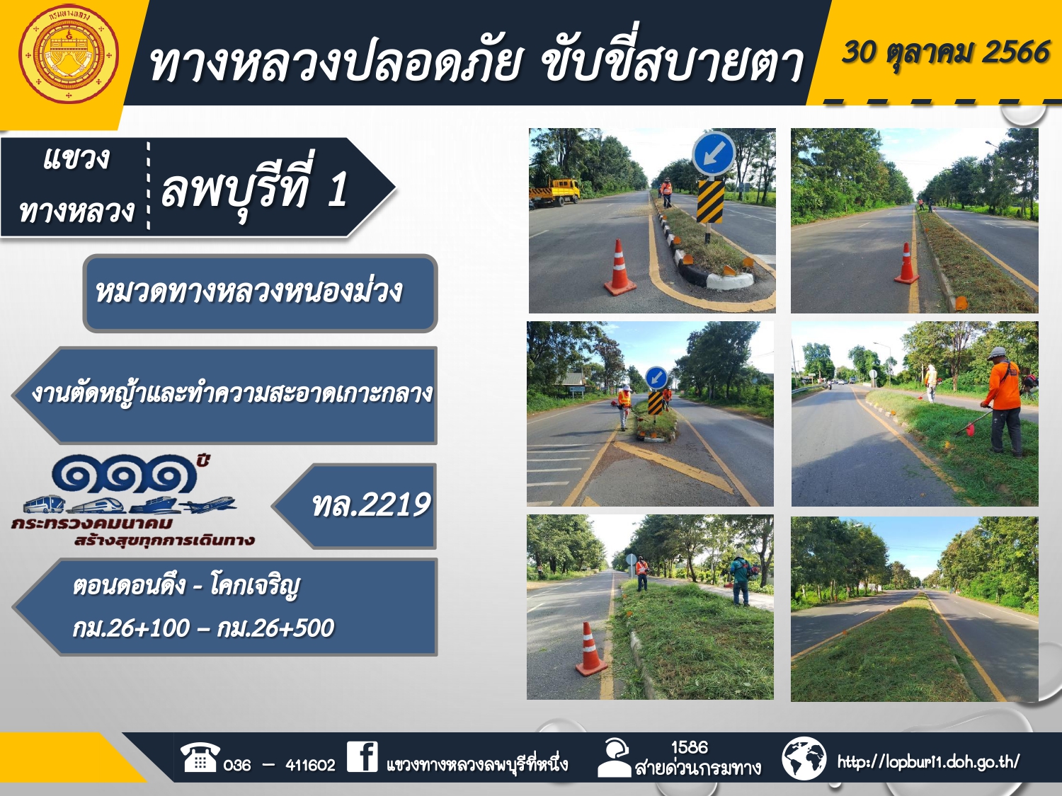 ทางหลวงปลอดภัยขับขี่สบายตา แขวงทางหลวงลพบุรีที่ 1 ประจำวันที่ 30 ตุลาคม 2566
