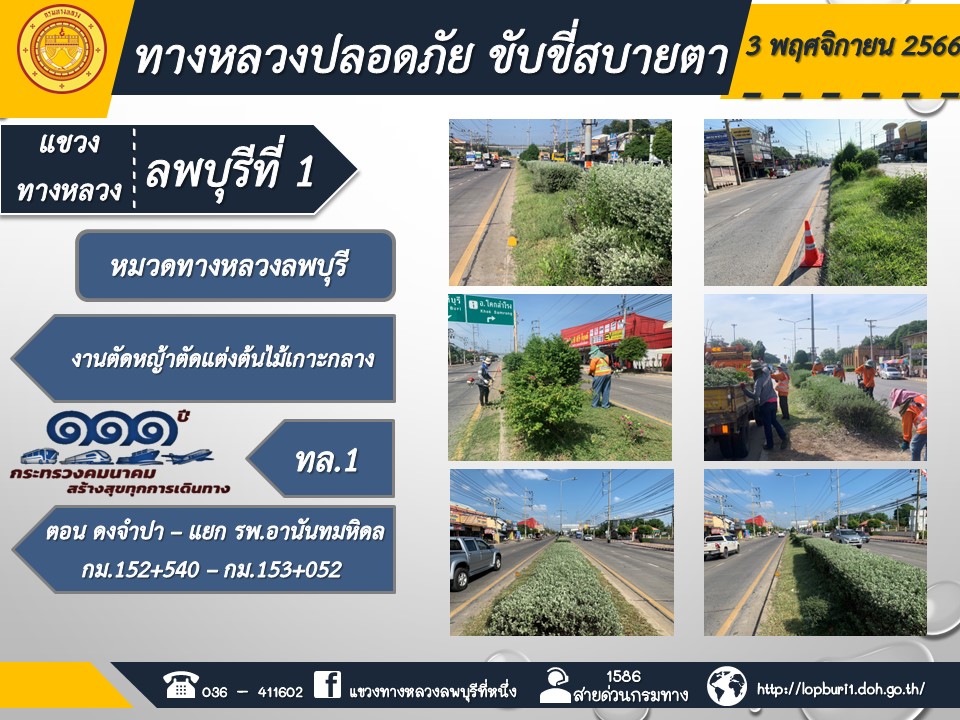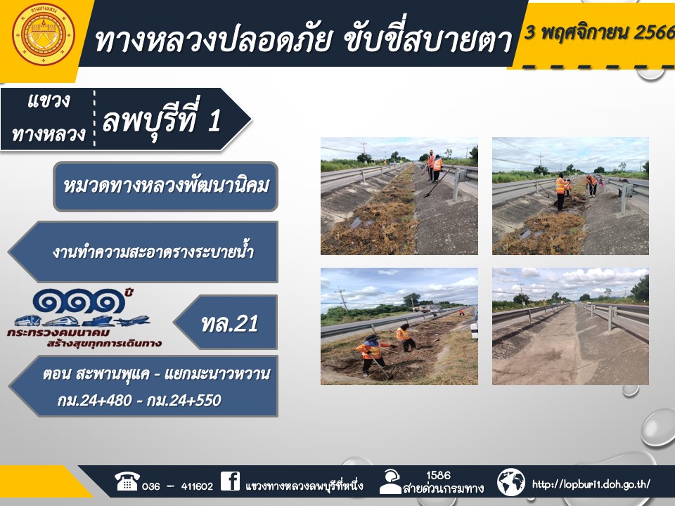 ทางหลวงปลอดภัยขับขี่สบายตา แขวงทางหลวงลพบุรีที่ 1 ประจำวันที่ 3 พฤศจิกายน 2566