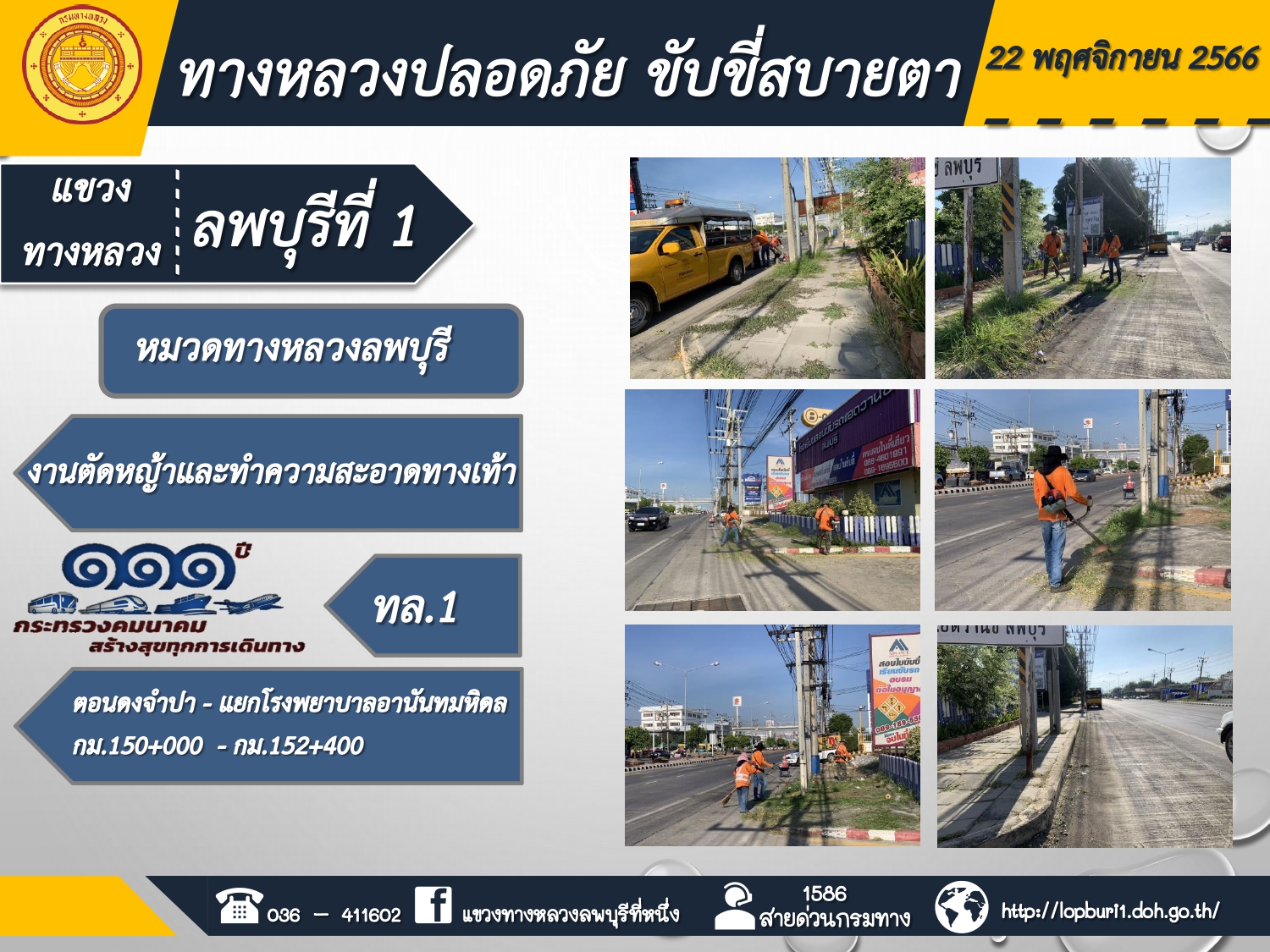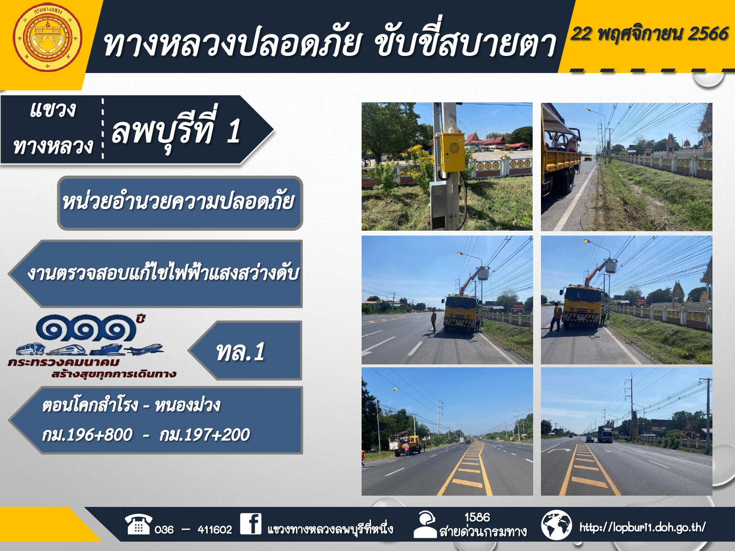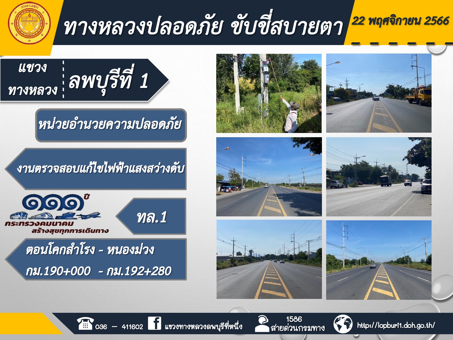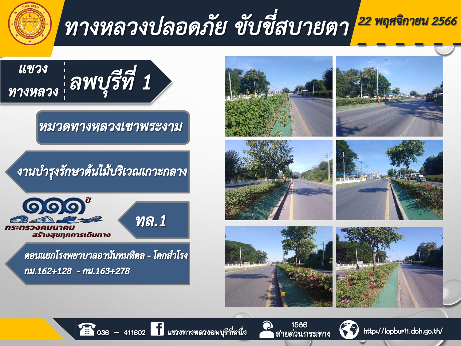 ทางหลวงปลอดภัยขับขี่สบายตา แขวงทางหลวงลพบุรีที่ 1 ประจำวันที่ 22 พฤศจิกายน 2566