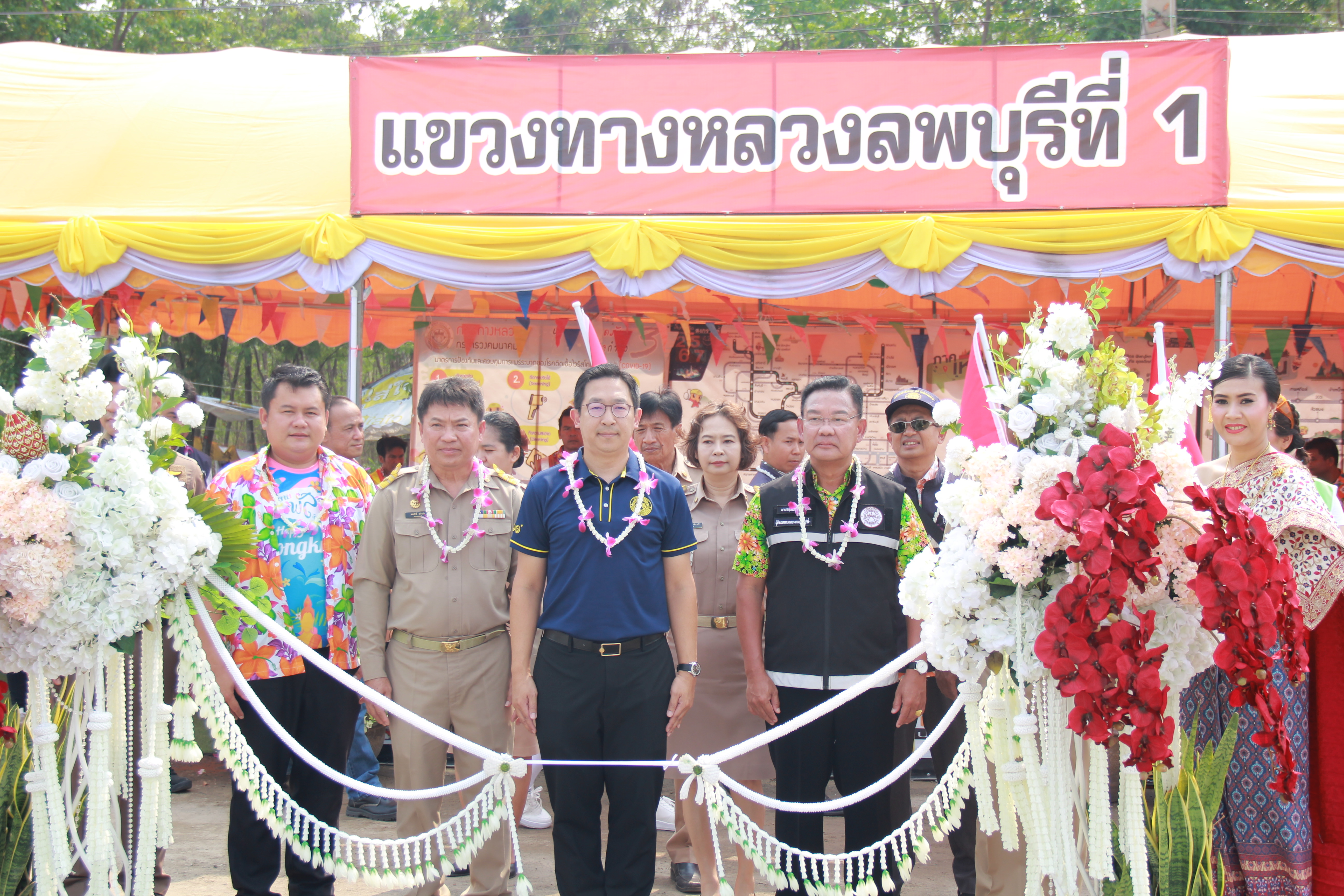 นายกฤษณ์ หย่ำวิไล ผู้อำนวยการแขวงทางหลวงลพบุรีที่ 1 พร้อมผู้บริหาร หัวหน้าหมวดทางหลวง ในสังกัด คณะเจ้าหน้าที่แขวงทางหลวงลพบุรีที่ 1