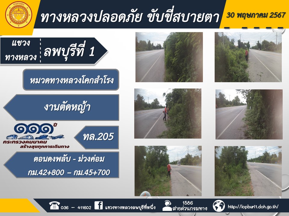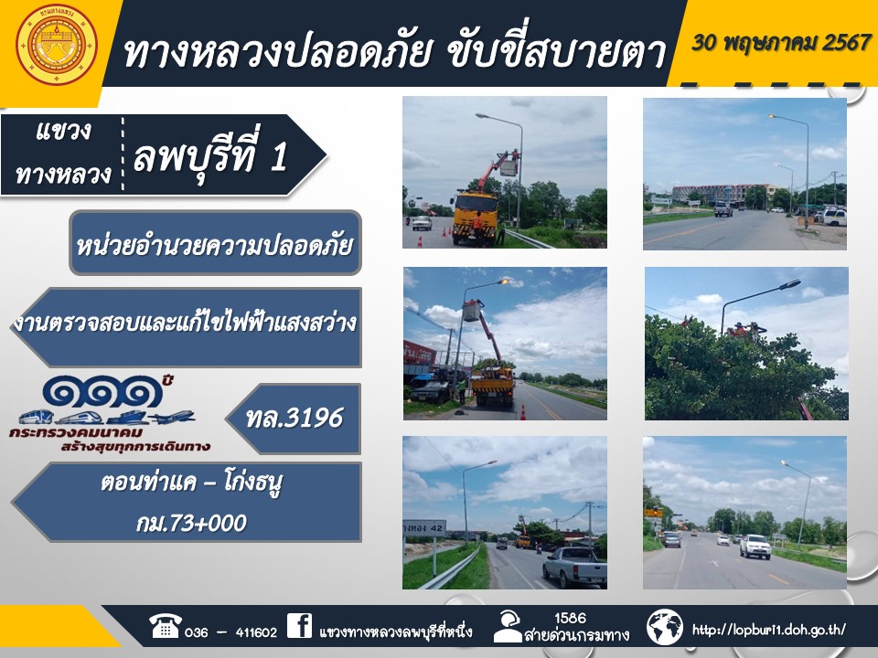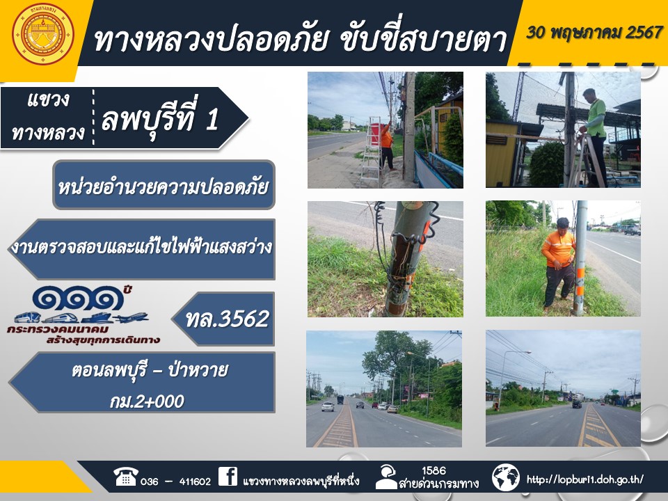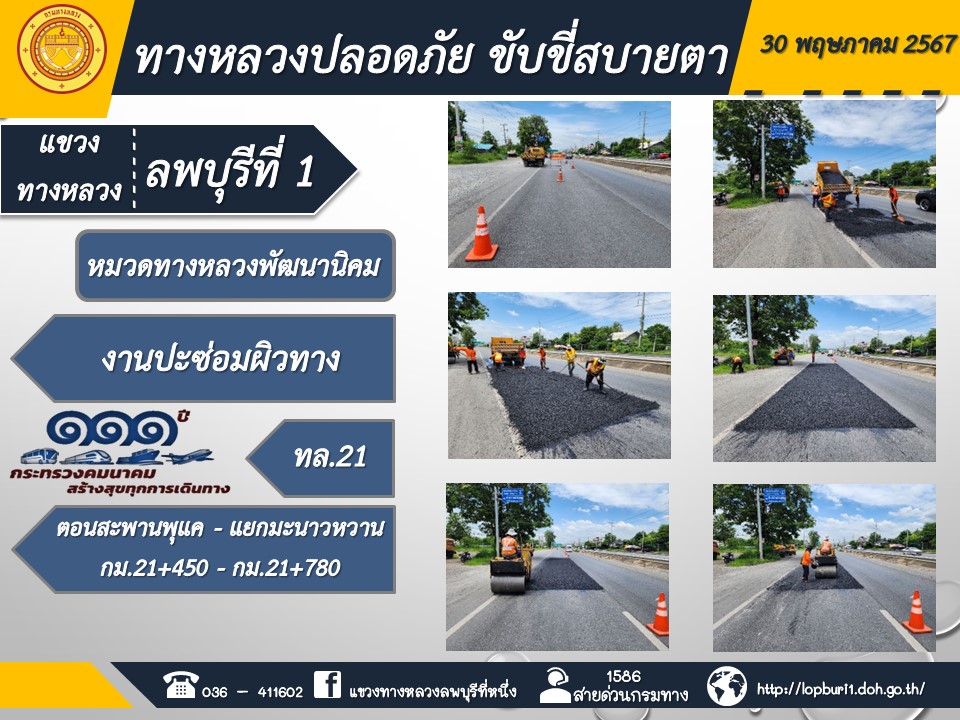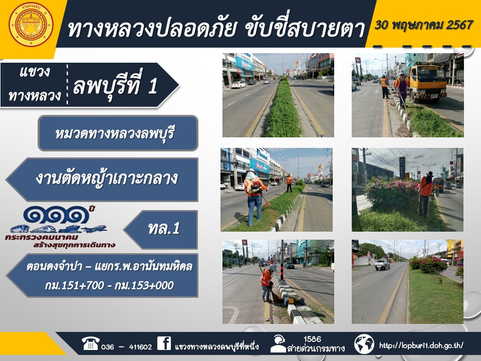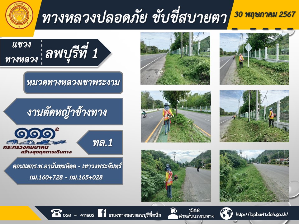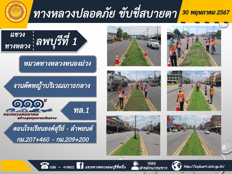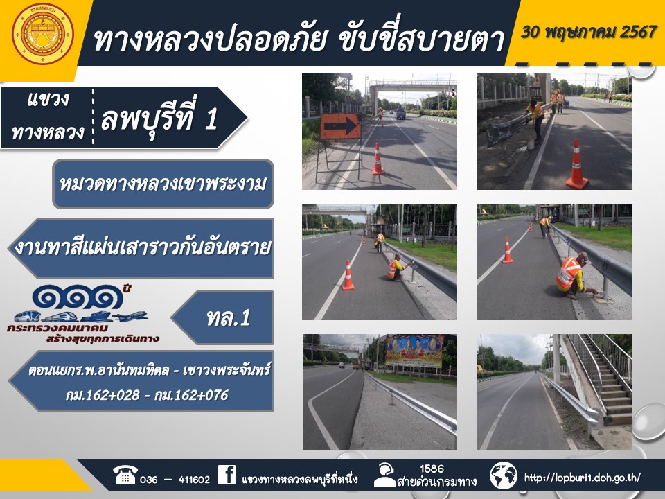 ทางหลวงปลอดภัยขับขี่สบายตา แขวงทางหลวงลพบุรีที่ 1 ประจำวันที่ 30 พฤษภาคม 2567