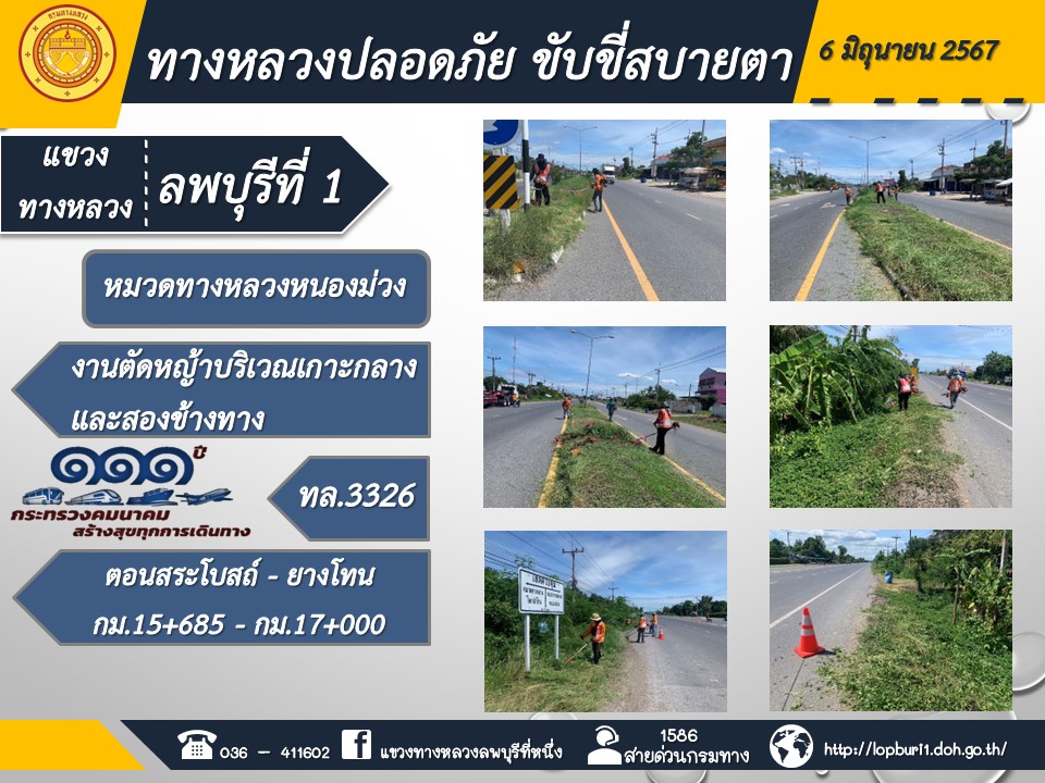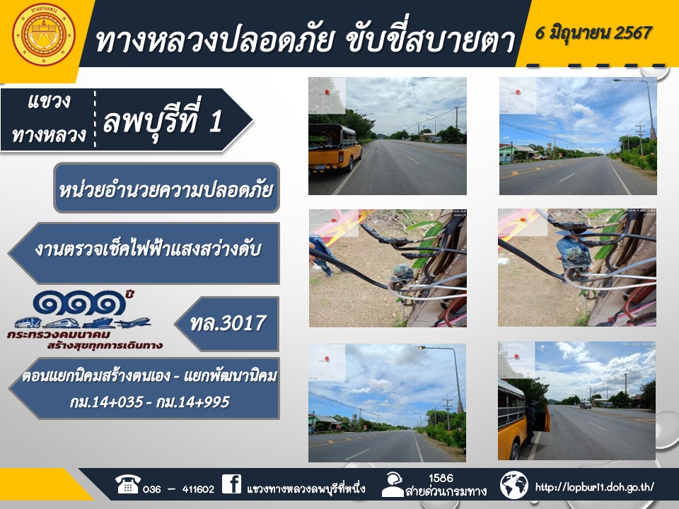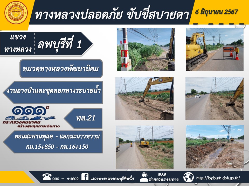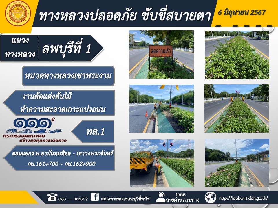 ทางหลวงปลอดภัยขับขี่สบายตา แขวงทางหลวงลพบุรีที่ 1 ประจำวันที่ 6 มิถุนายน 2567