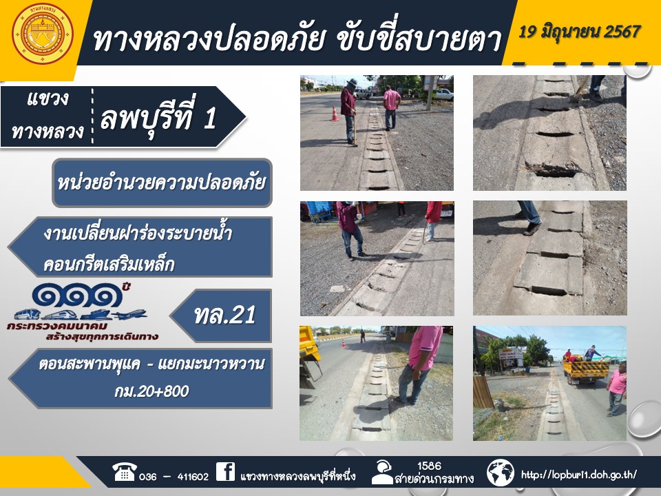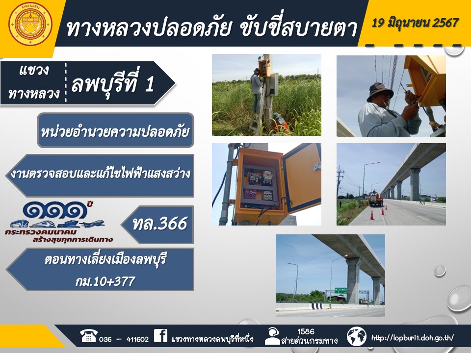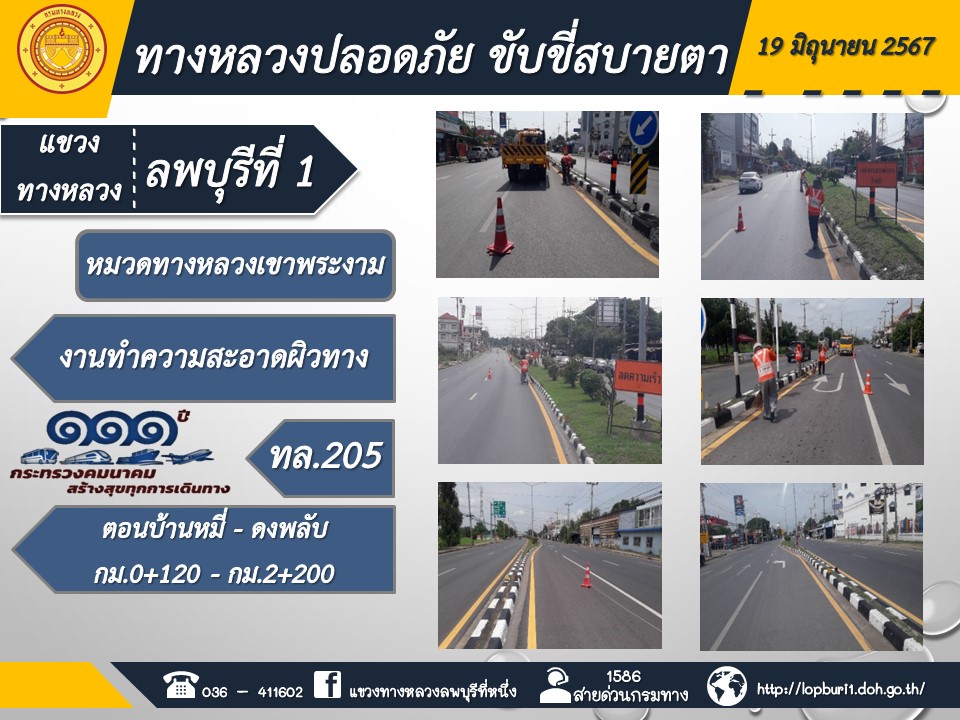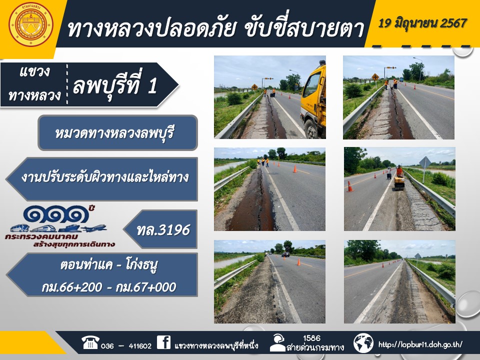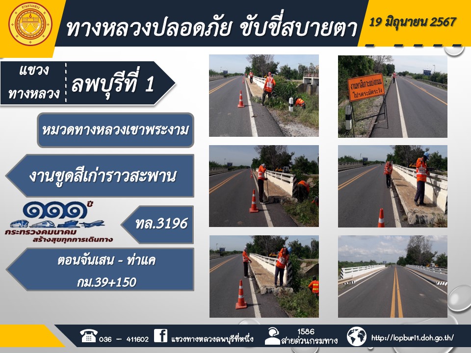 ทางหลวงปลอดภัยขับขี่สบายตา แขวงทางหลวงลพบุรีที่ 1 ประจำวันที่ 19 มิถุนายน 2567