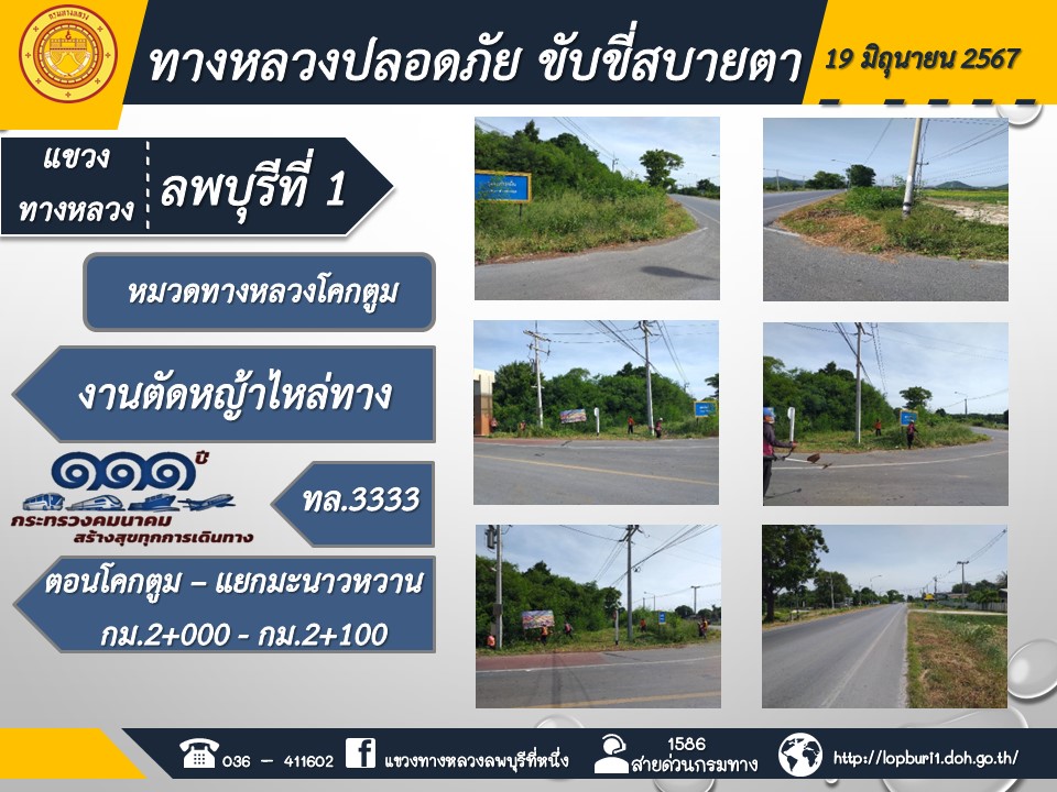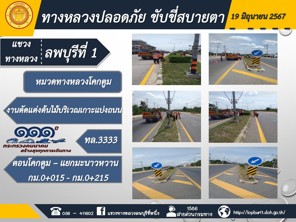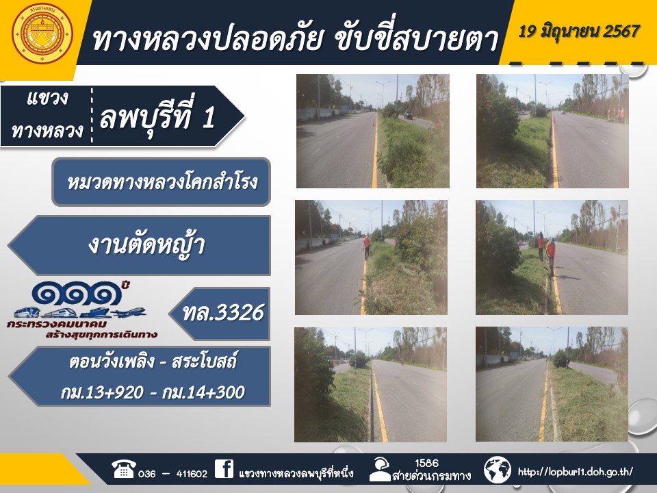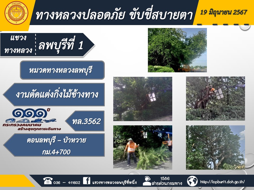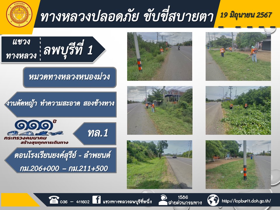 ทางหลวงปลอดภัยขับขี่สบายตา แขวงทางหลวงลพบุรีที่ 1 ประจำวันที่ 19 มิถุนายน 2567