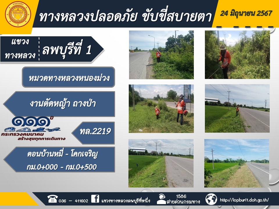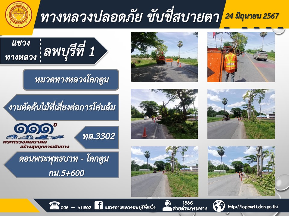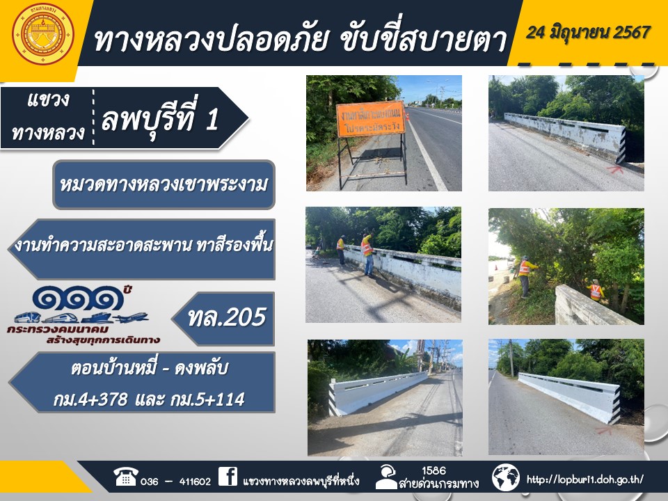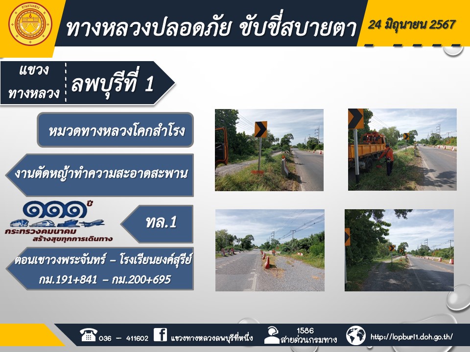 ทางหลวงปลอดภัยขับขี่สบายตา แขวงทางหลวงลพบุรีที่ 1 ประจำวันที่ 25 มิถุนายน 2567